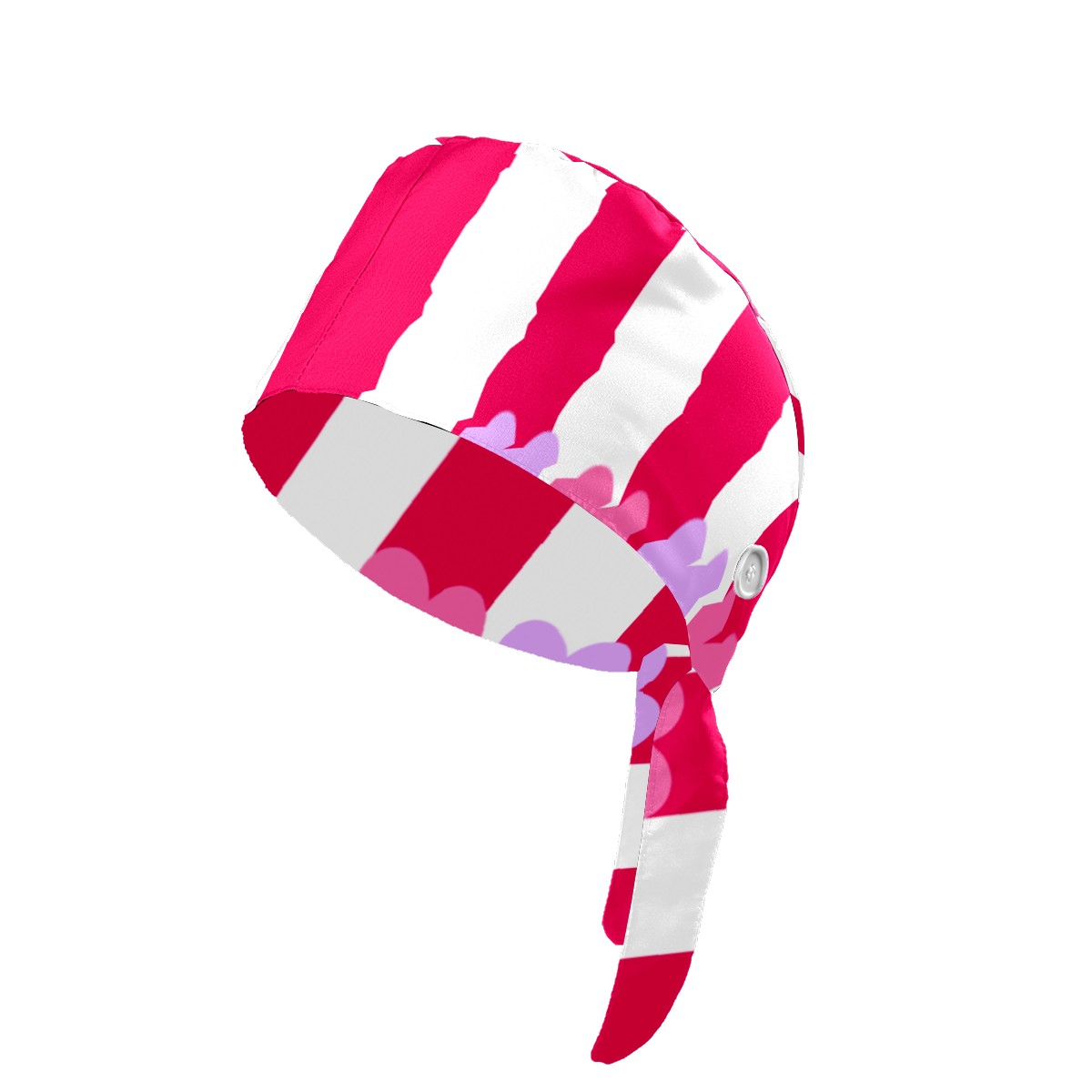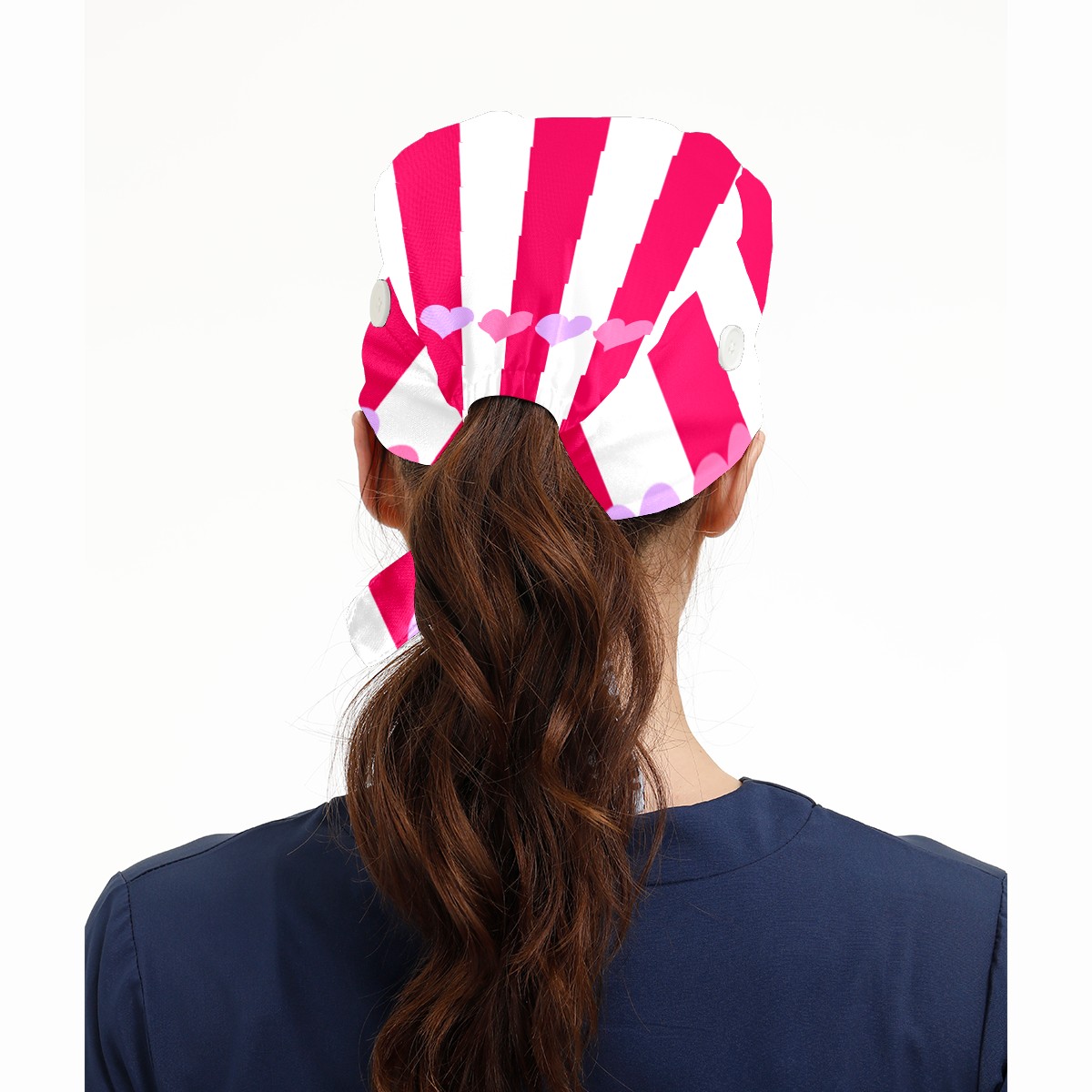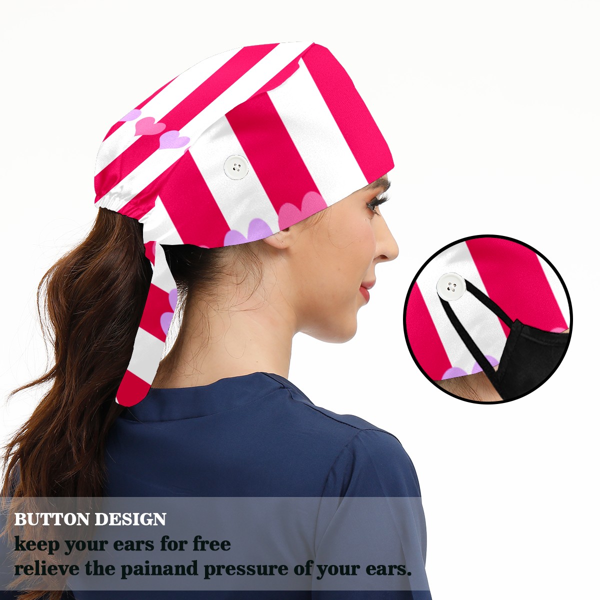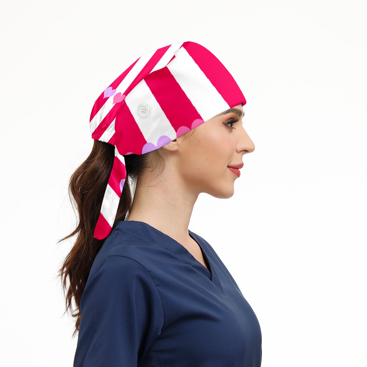 Working Caps with Button & Sweatband Satin Lined Cotton Adjustable Nurse Hats Elastic Band Scrub Cap Surgeon Hat Stripes