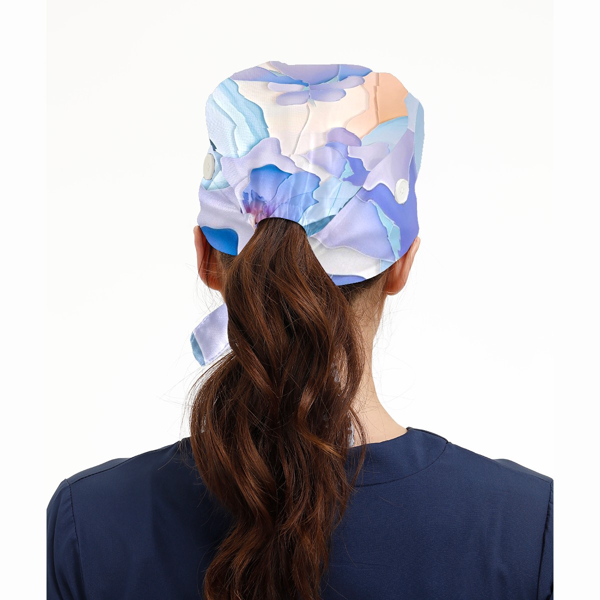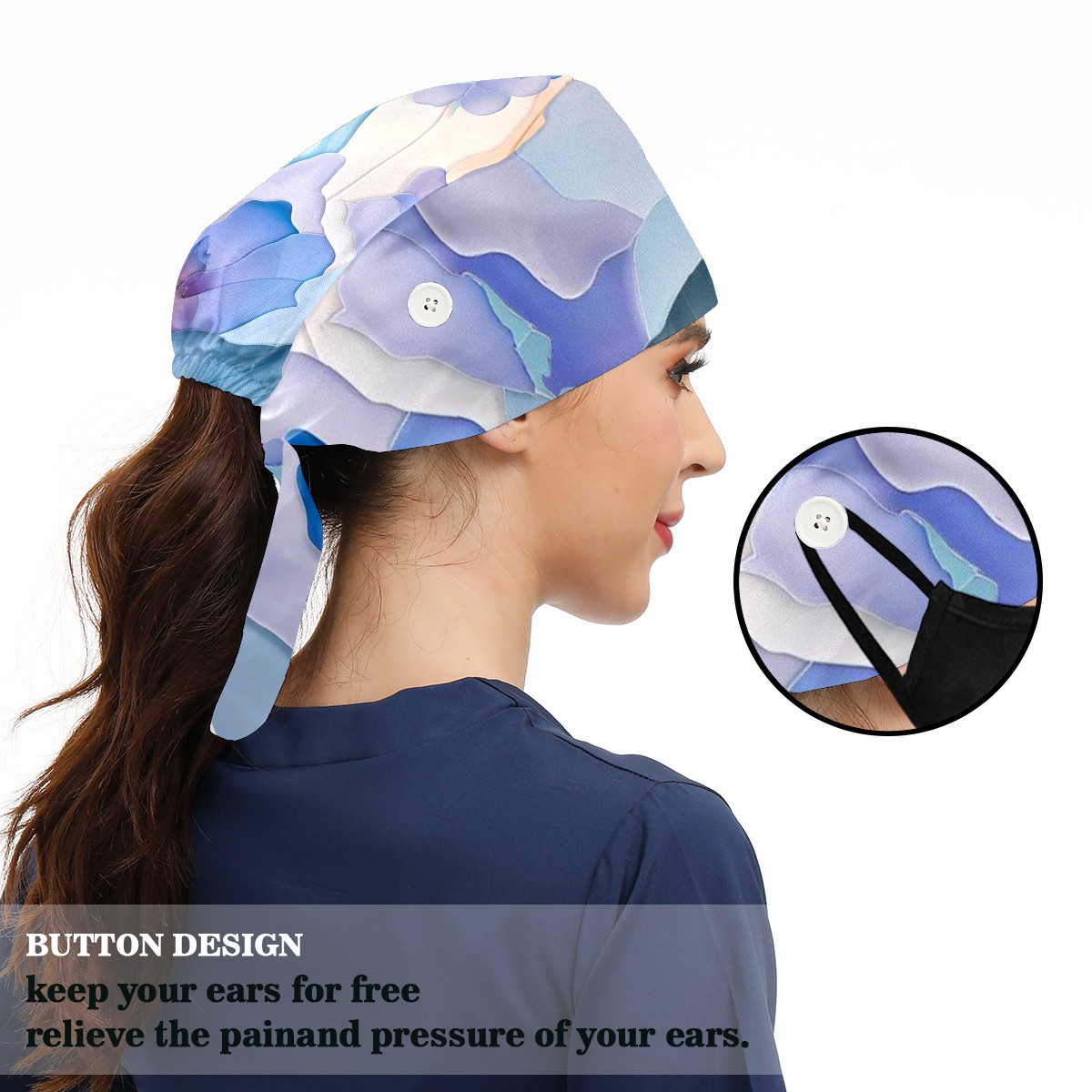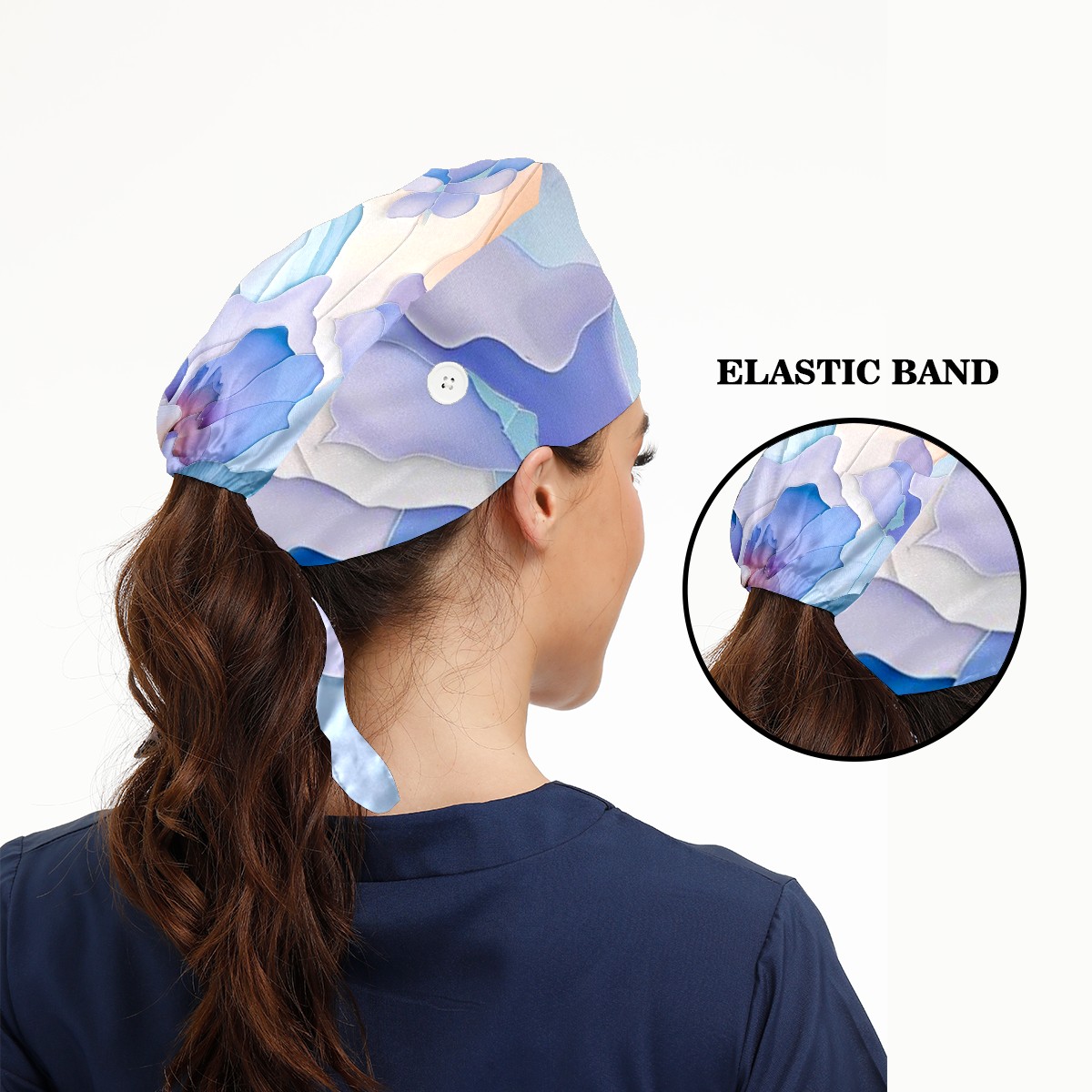 Working Caps with Button & Sweatband Satin Lined Cotton Adjustable Nurse Hats Elastic Band Scrub Cap Surgeon Hat Watercolor Flower