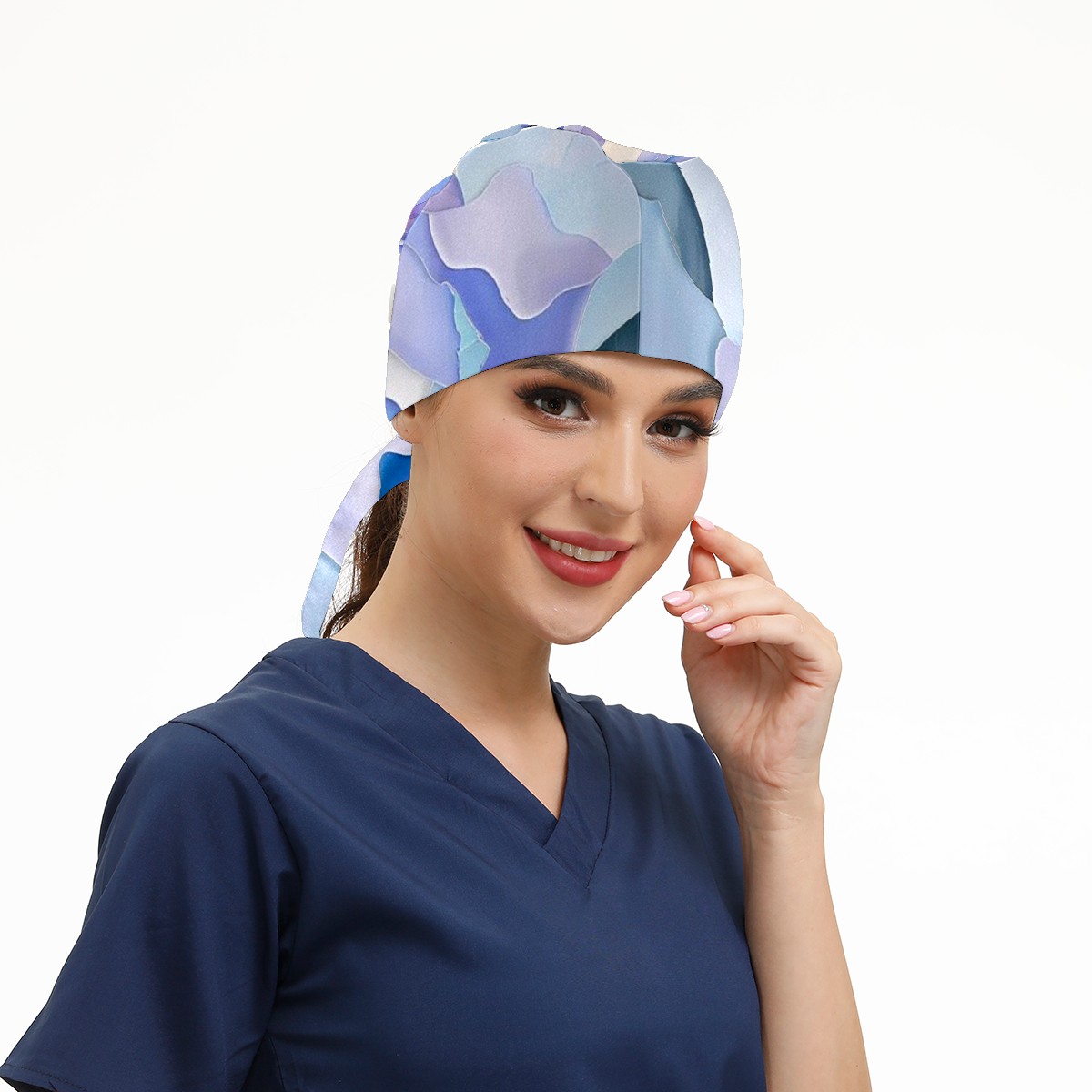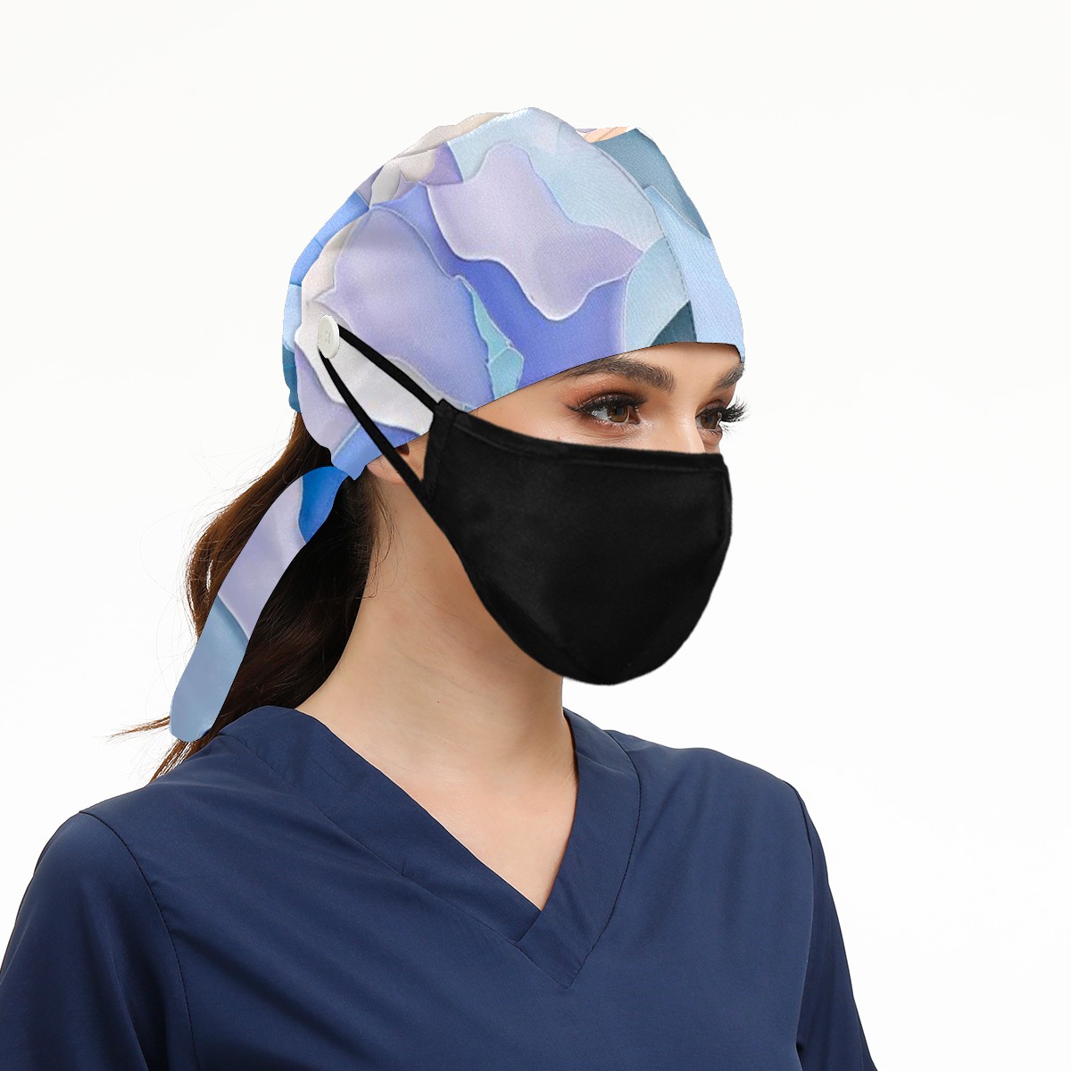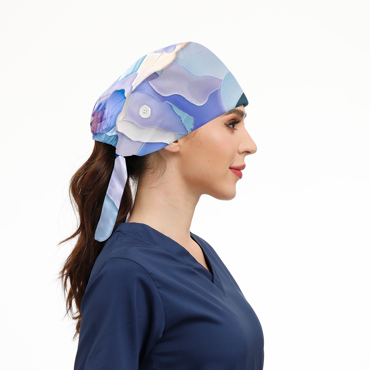 Working Caps with Button & Sweatband Satin Lined Cotton Adjustable Nurse Hats Elastic Band Scrub Cap Surgeon Hat Watercolor Flower