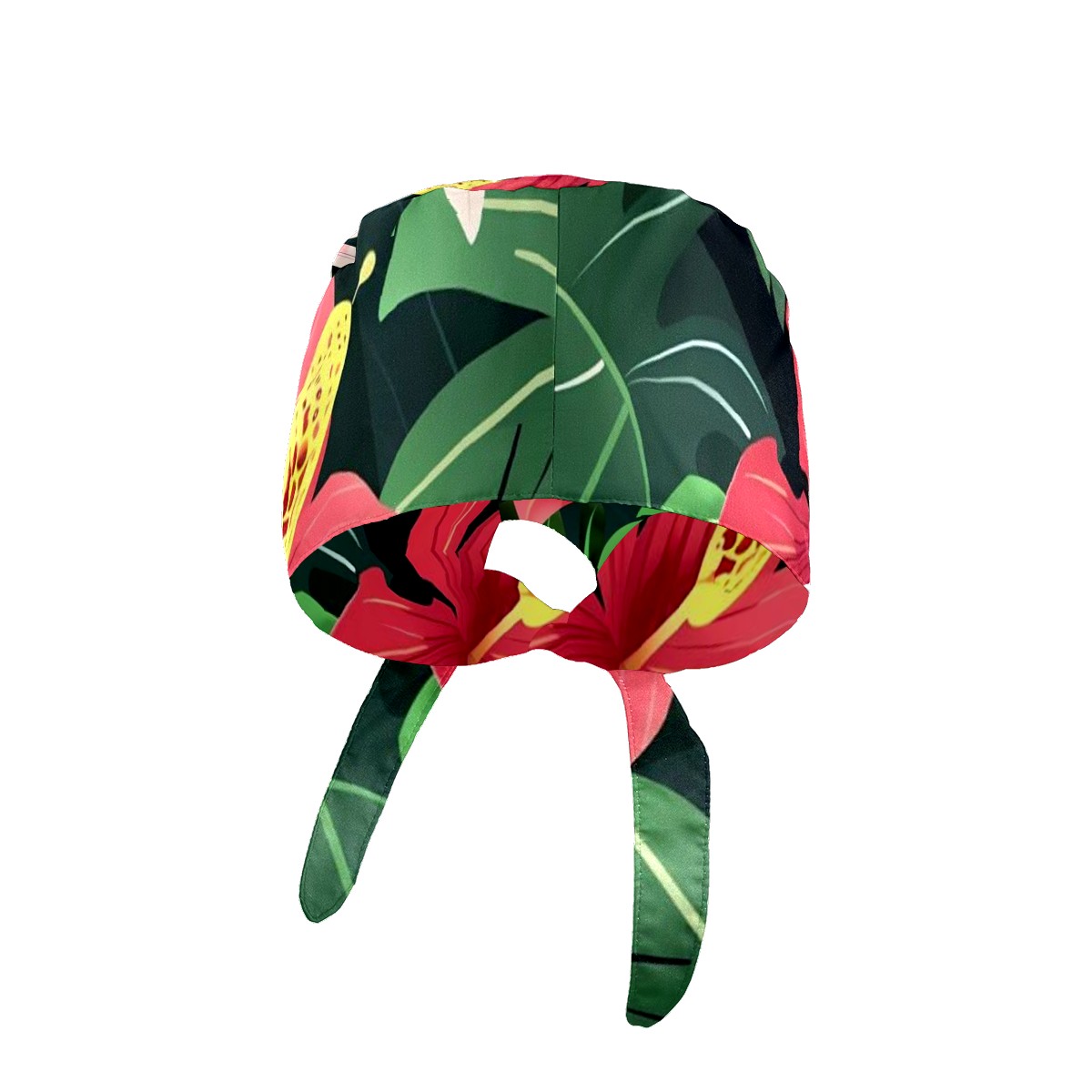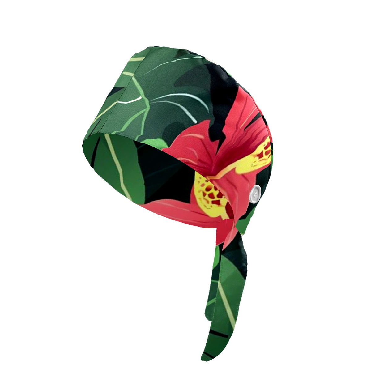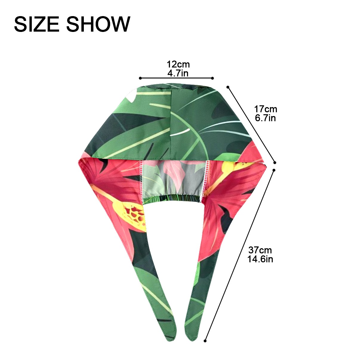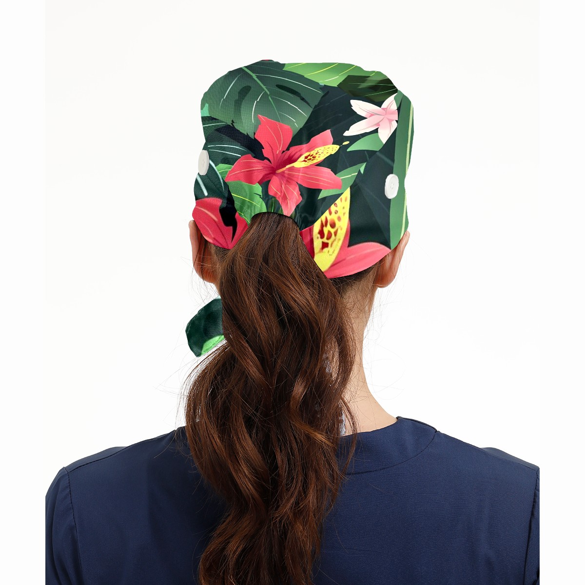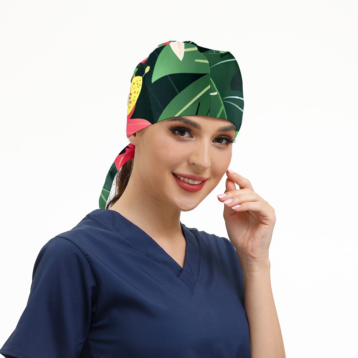 Working Caps with Button & Sweatband Satin Lined Cotton Adjustable Nurse Hats Elastic Band Scrub Cap Surgeon Hat Flower Leaves