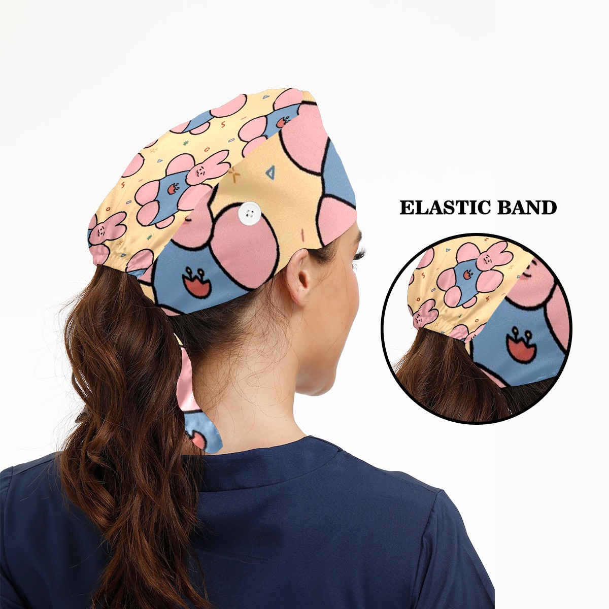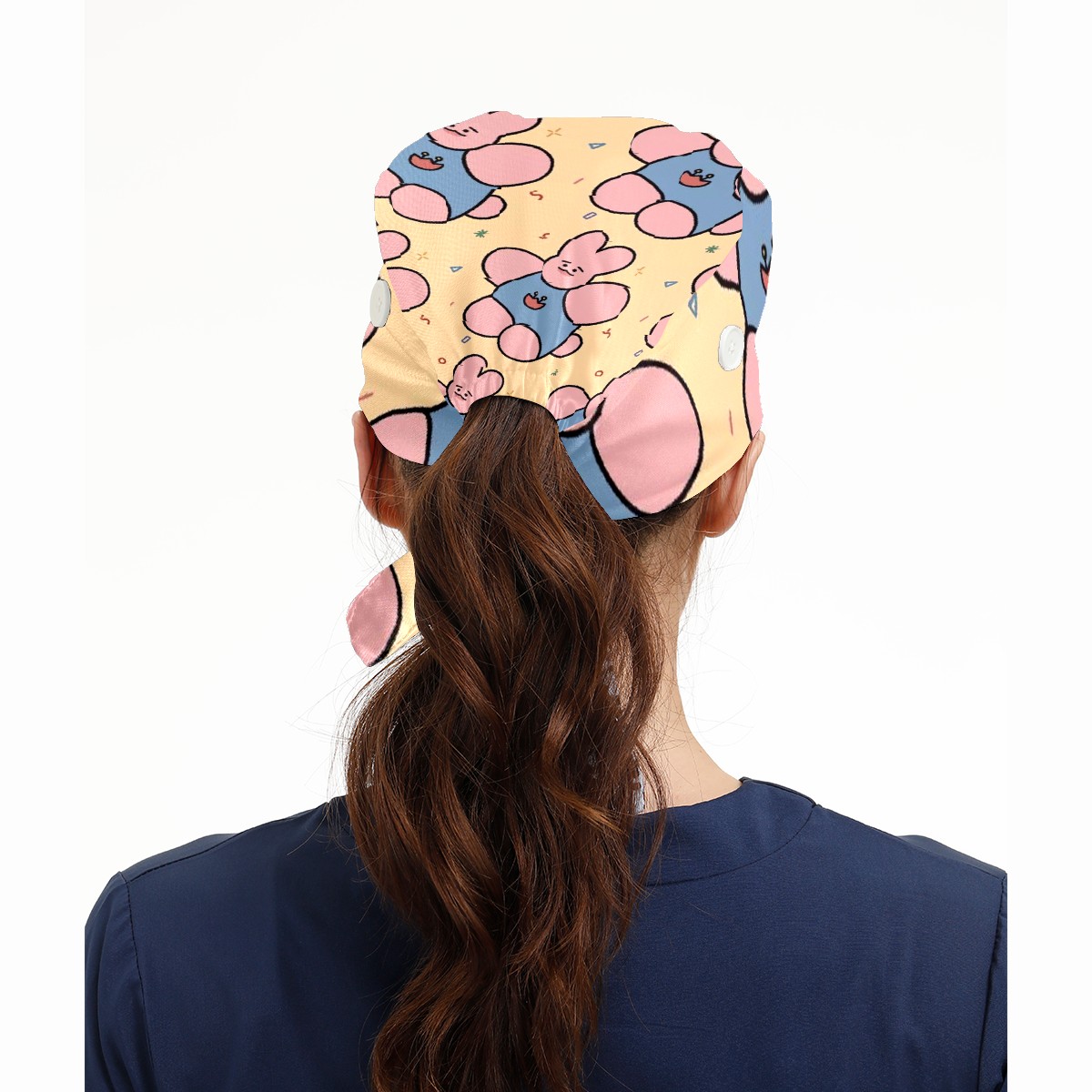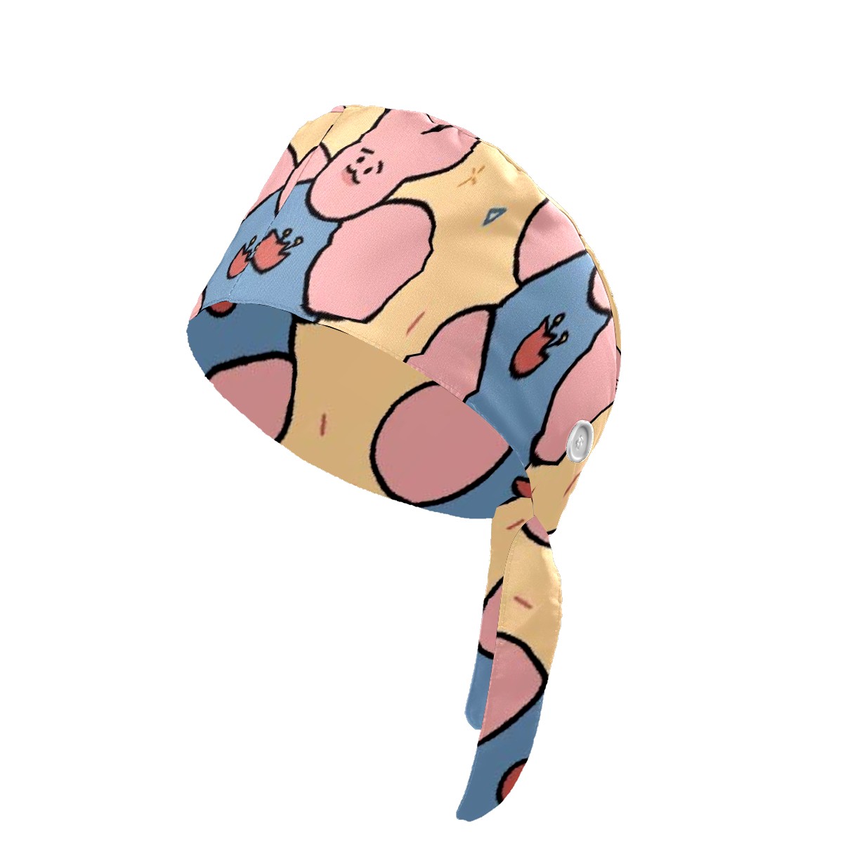 Working Caps with Button & Sweatband Satin Lined Cotton Adjustable Nurse Hats Elastic Band Scrub Cap Surgeon Hat Cloth Doll