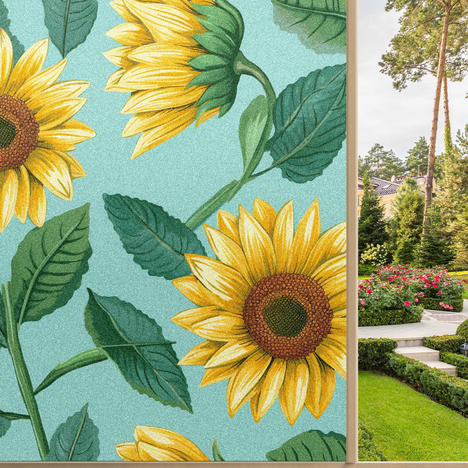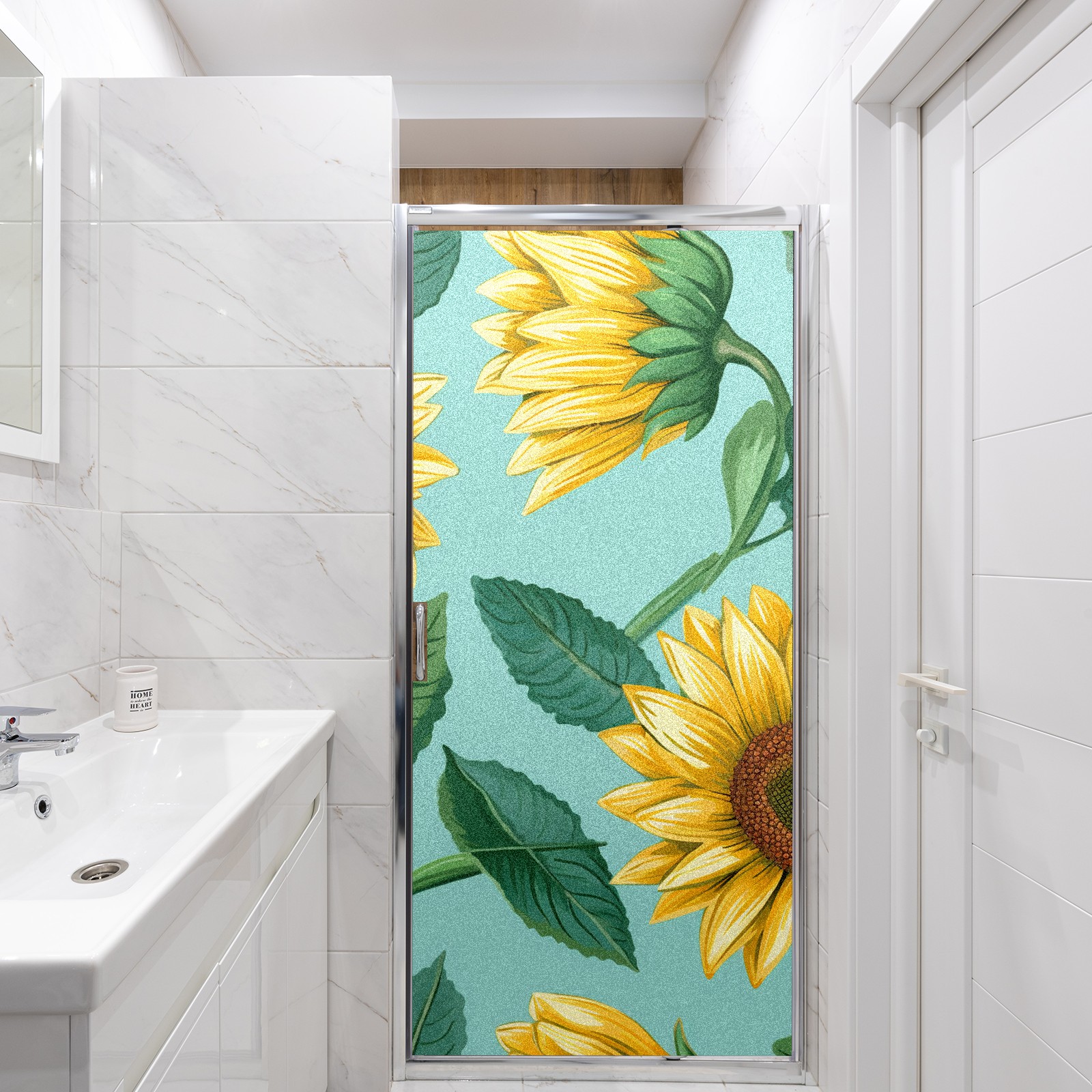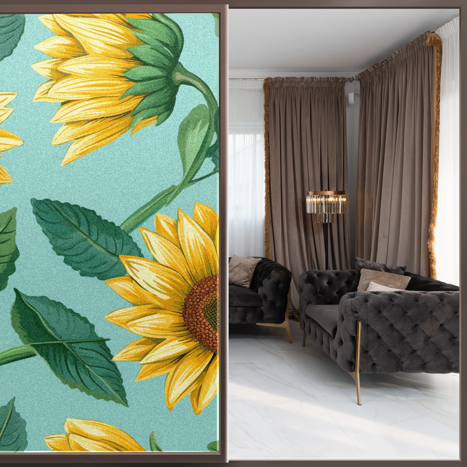 Static Cling Decorative Window Film Frosted Privacy Film Window Clings for Glass Windows No Glue Window Sticker for Bathroom Bedroom Office Daisy