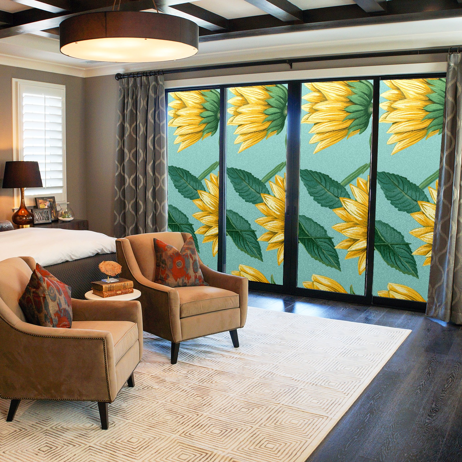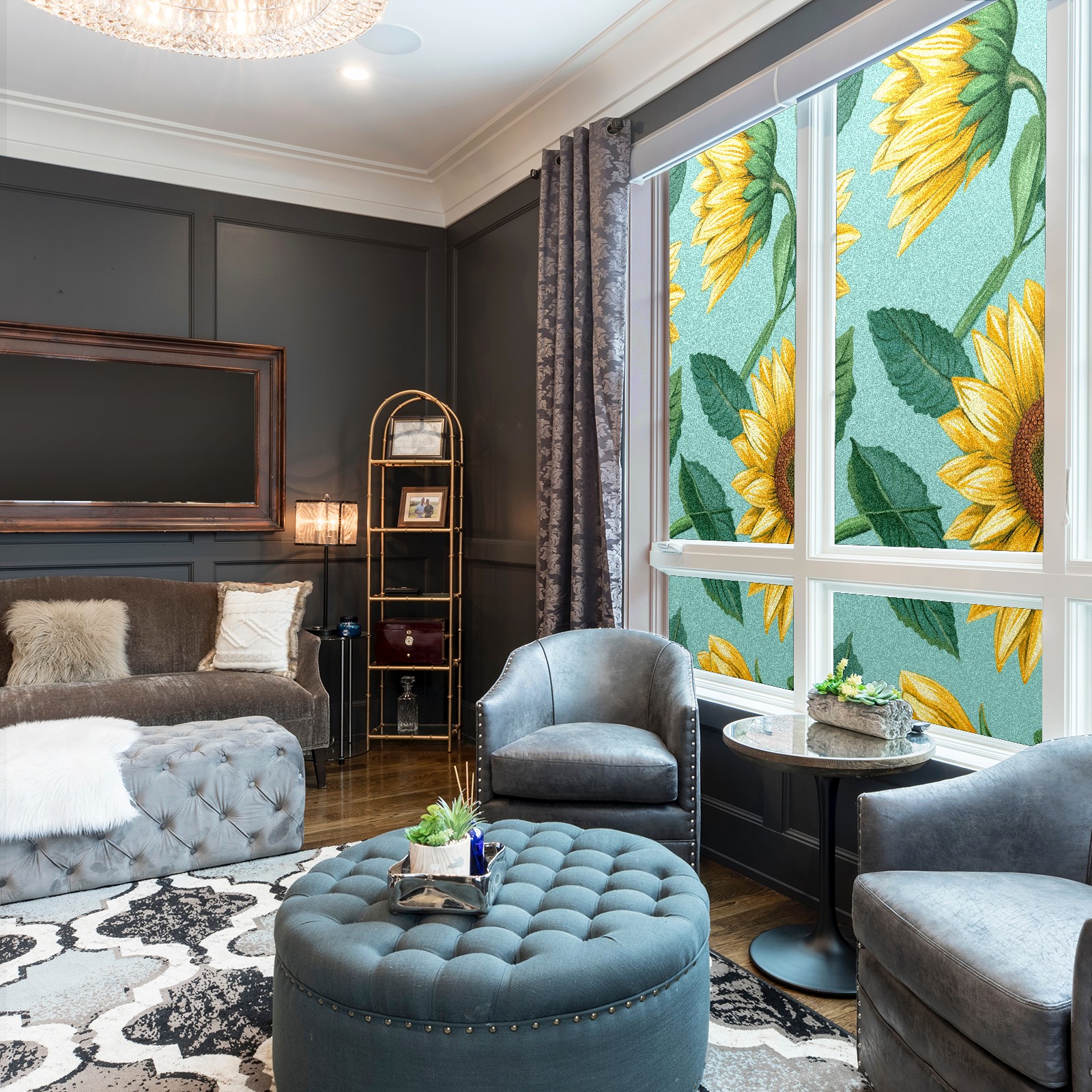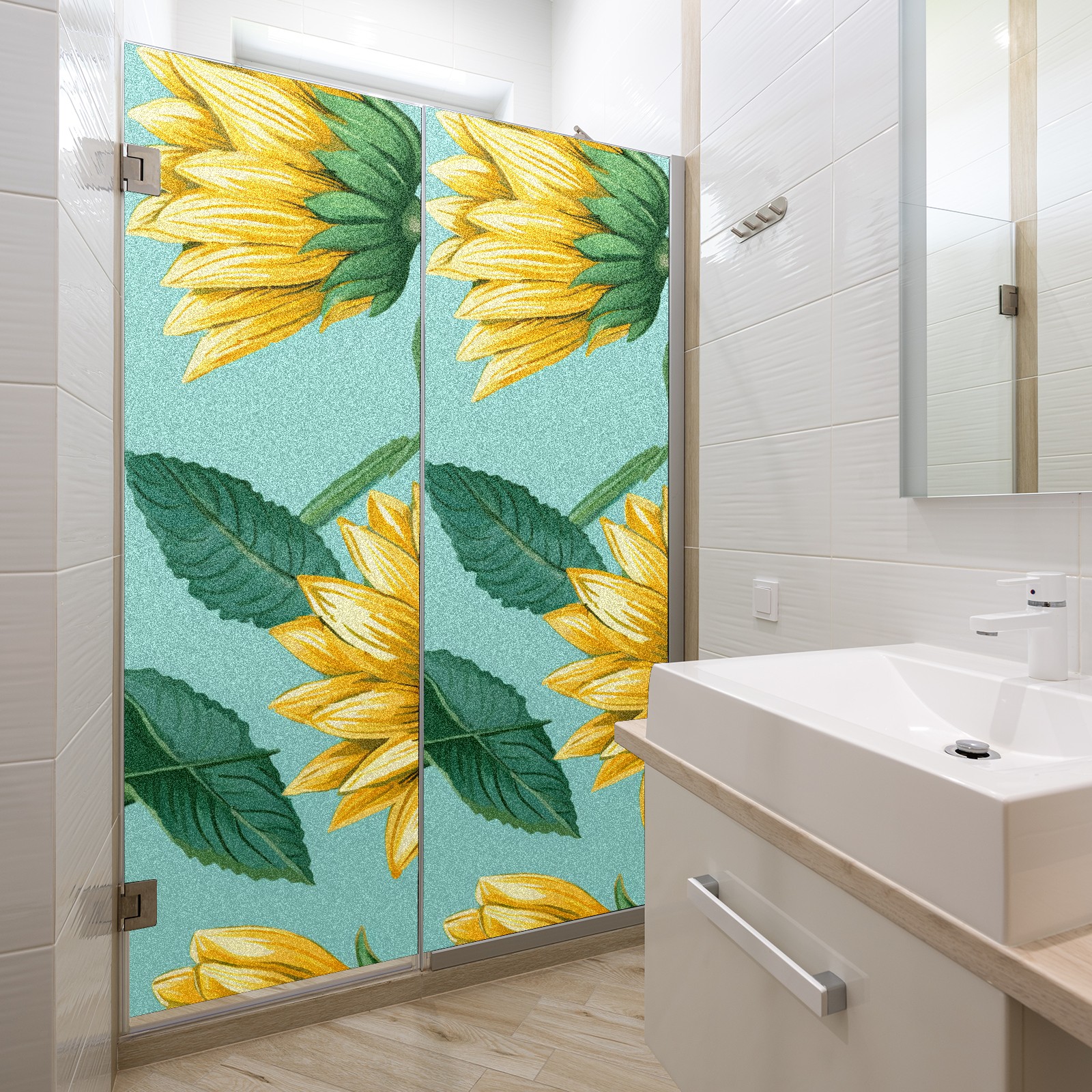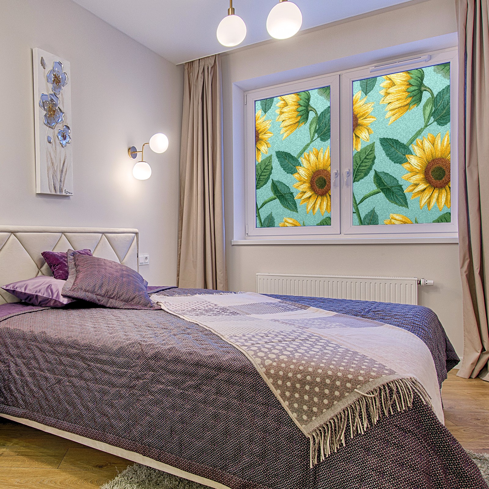 Static Cling Decorative Window Film Frosted Privacy Film Window Clings for Glass Windows No Glue Window Sticker for Bathroom Bedroom Office Daisy