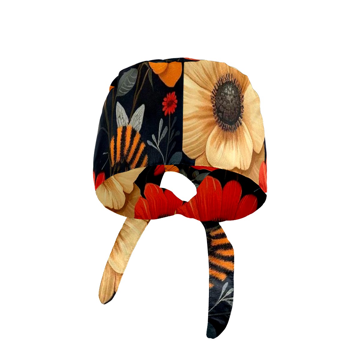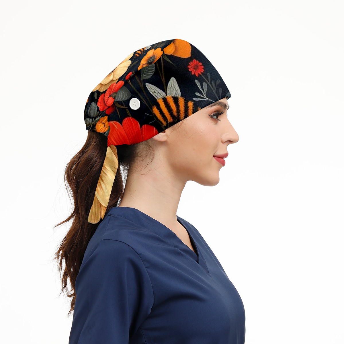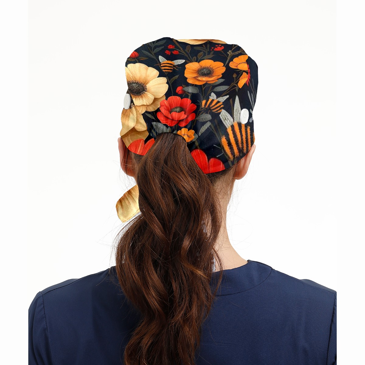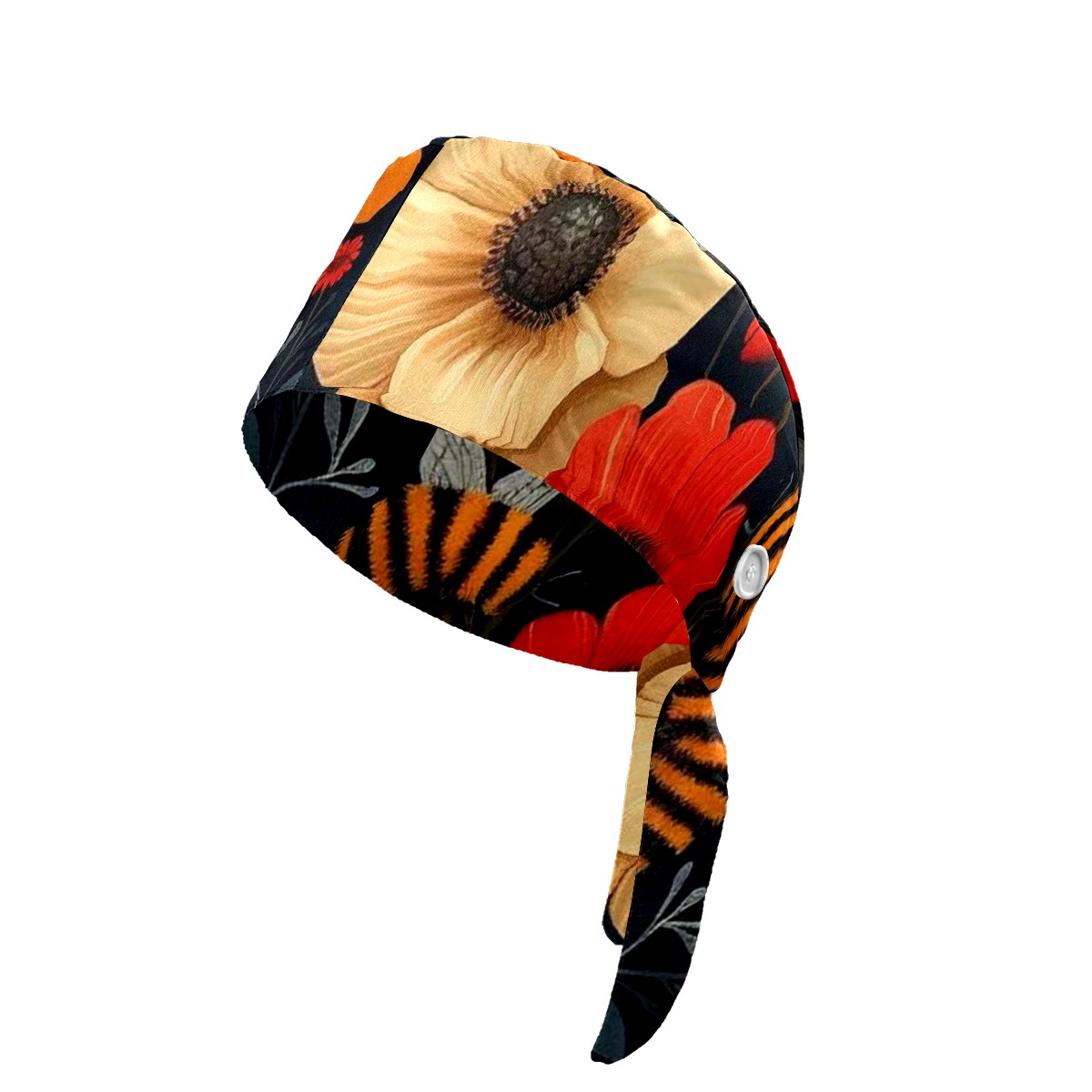 Working Caps with Button & Sweatband Satin Lined Cotton Adjustable Nurse Hats Elastic Band Scrub Cap Surgeon Hat Bee Flower