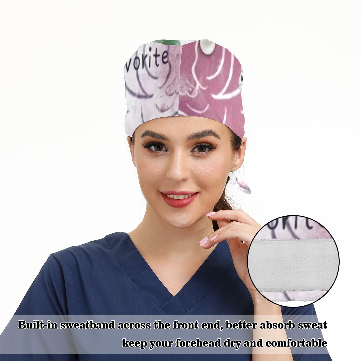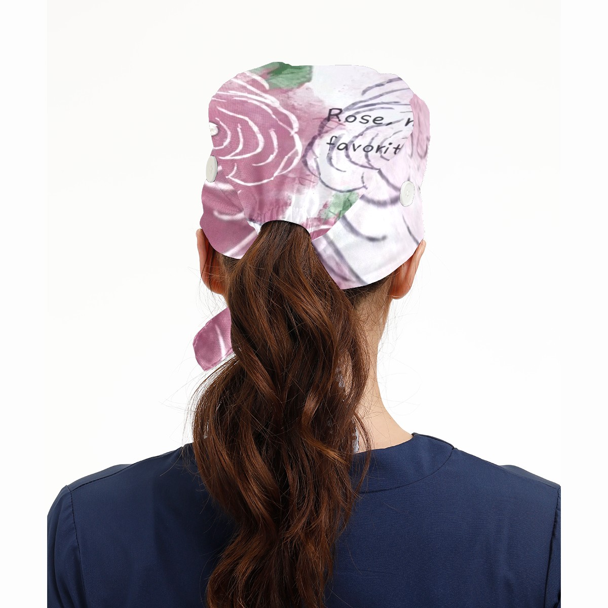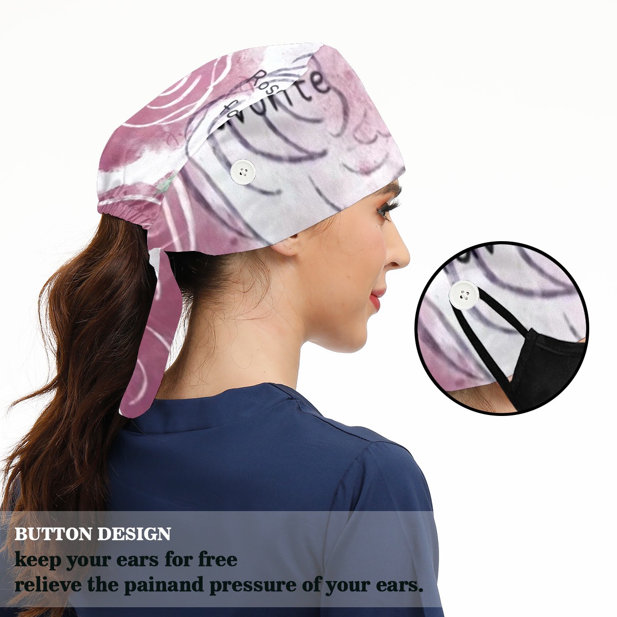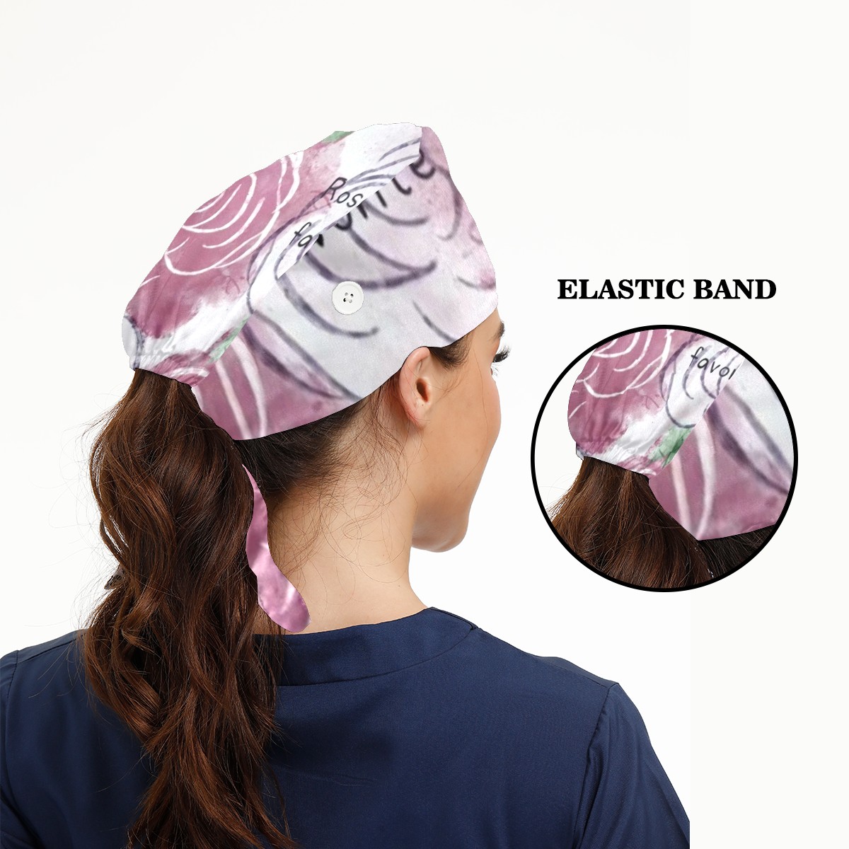 Working Caps with Button & Sweatband Satin Lined Cotton Adjustable Nurse Hats Elastic Band Scrub Cap Surgeon Hat Flower