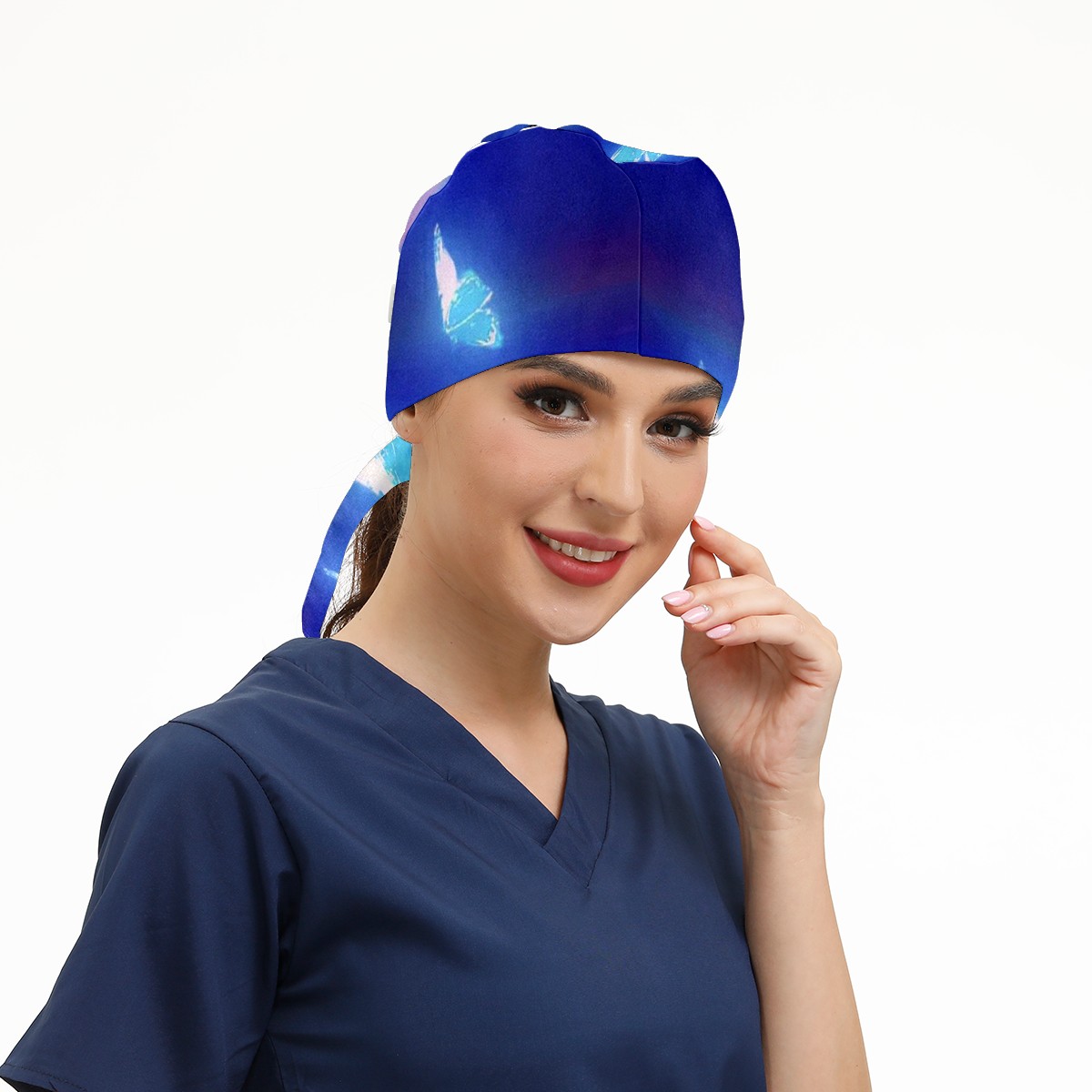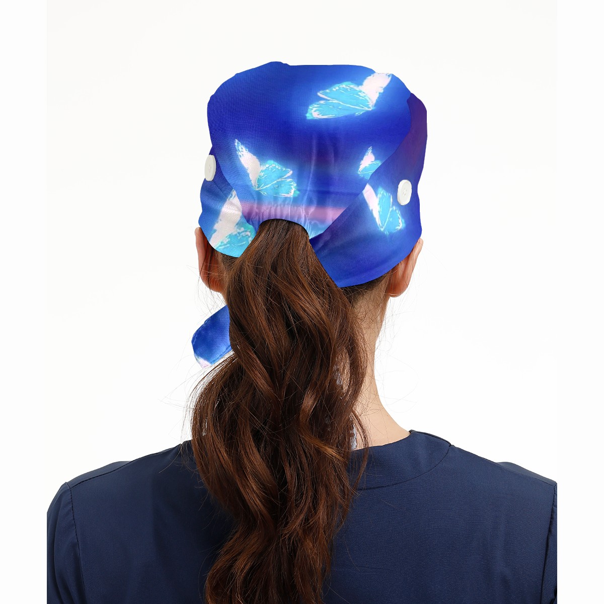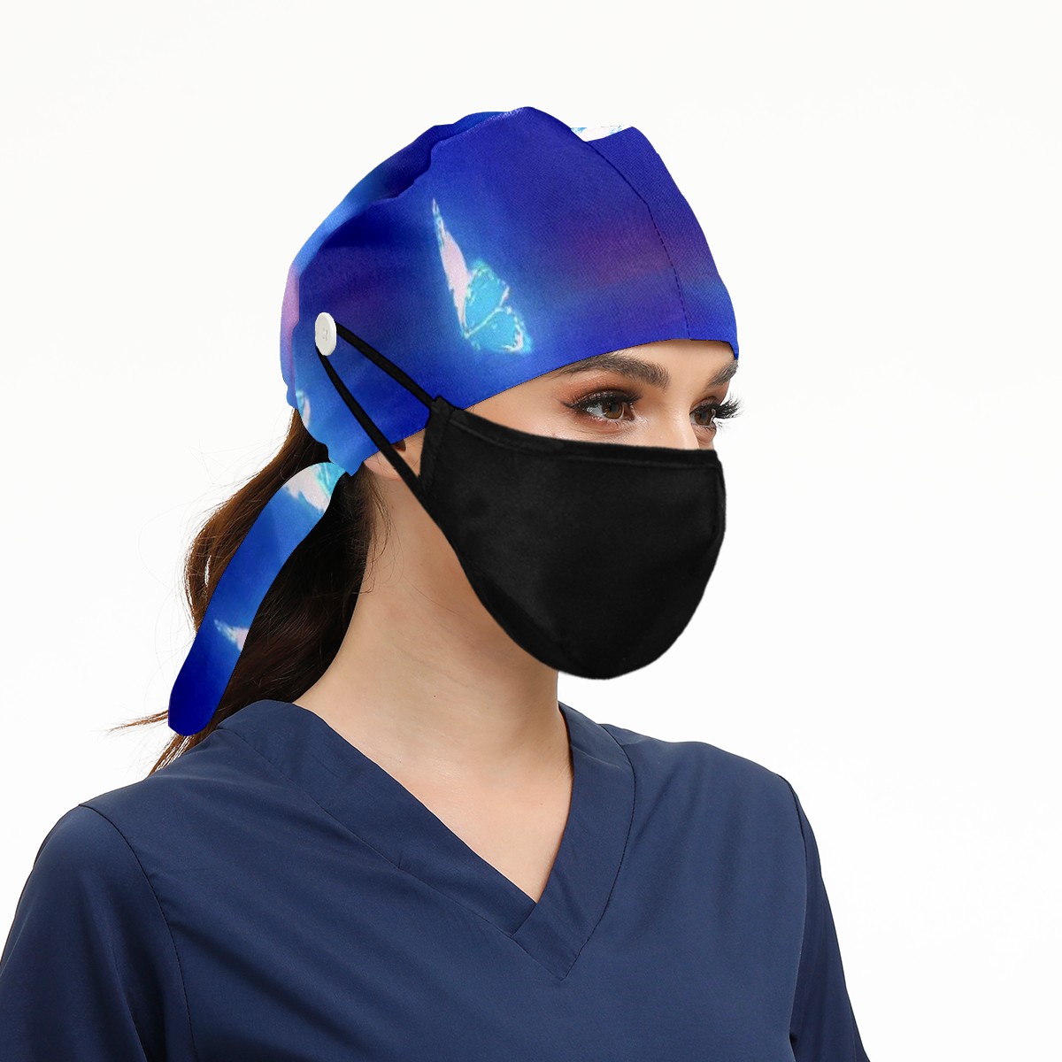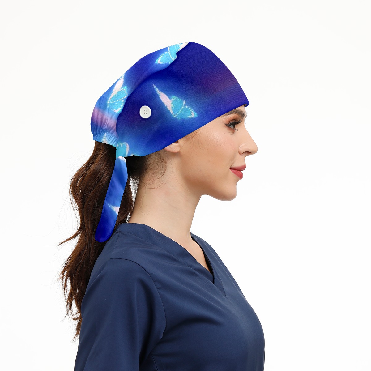Working Caps with Button & Sweatband Satin Lined Cotton Adjustable Nurse Hats Elastic Band Scrub Cap Surgeon Hat Butterfly