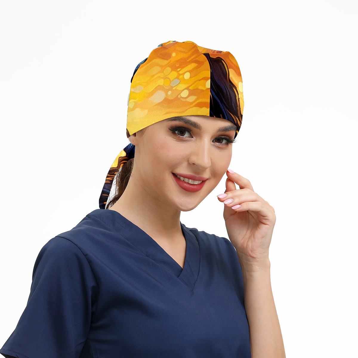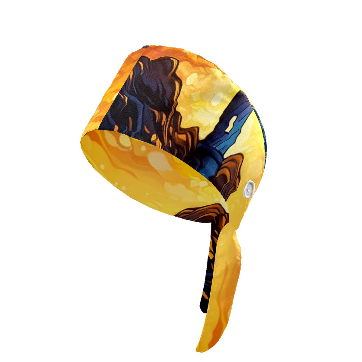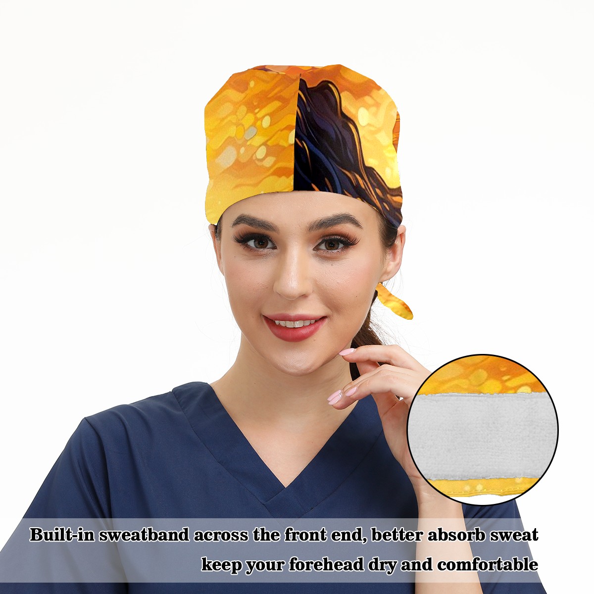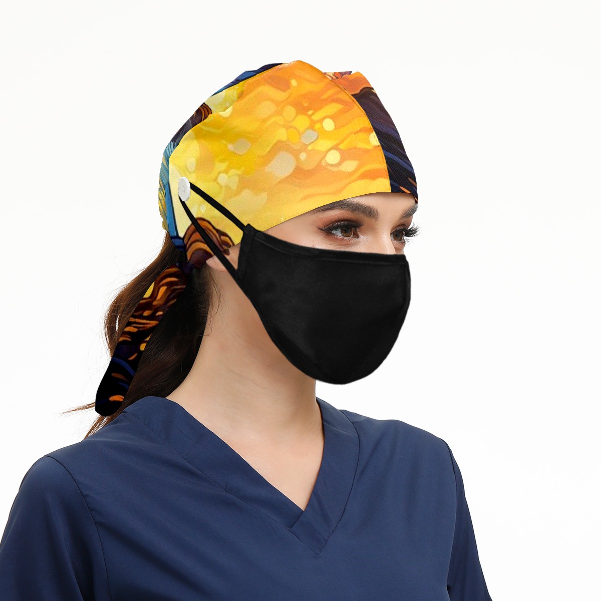 Working Caps with Button & Sweatband Satin Lined Cotton Adjustable Nurse Hats Elastic Band Scrub Cap Surgeon Hat Lighthouse Waves