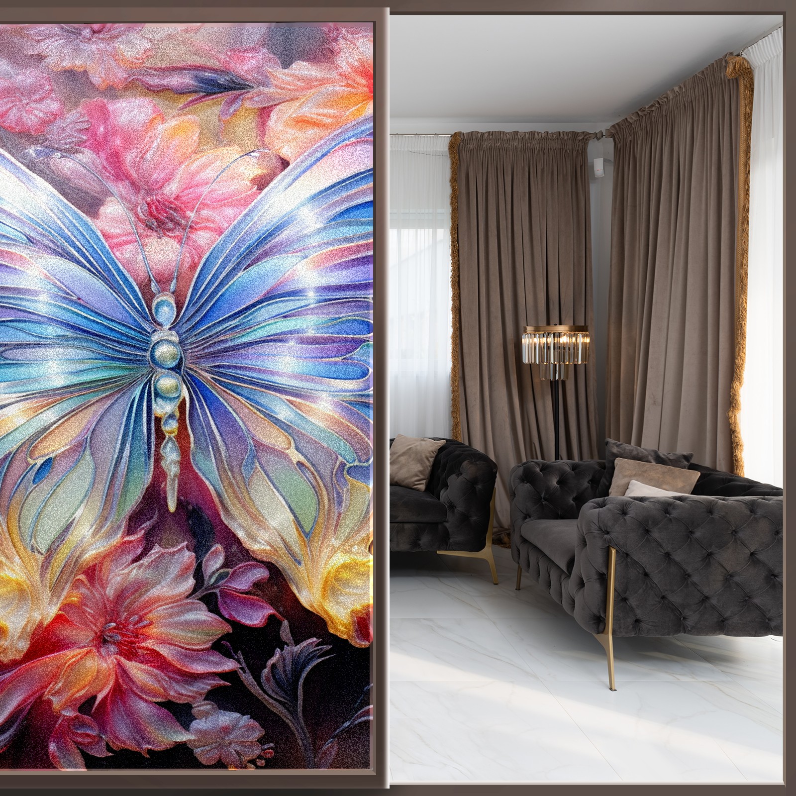 Static Cling Decorative Window Film Frosted Privacy Film Window Clings for Glass Windows No Glue Window Sticker for Bathroom Bedroom Office Butterfly (4)