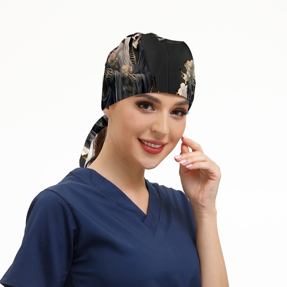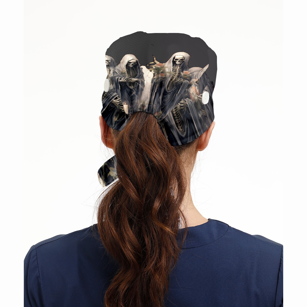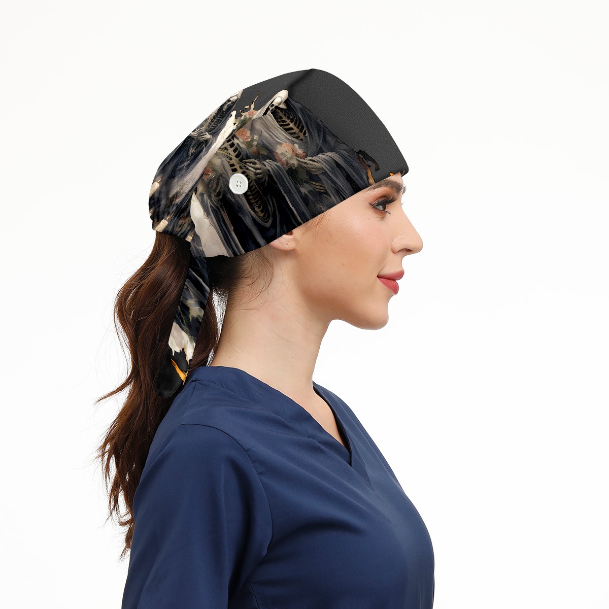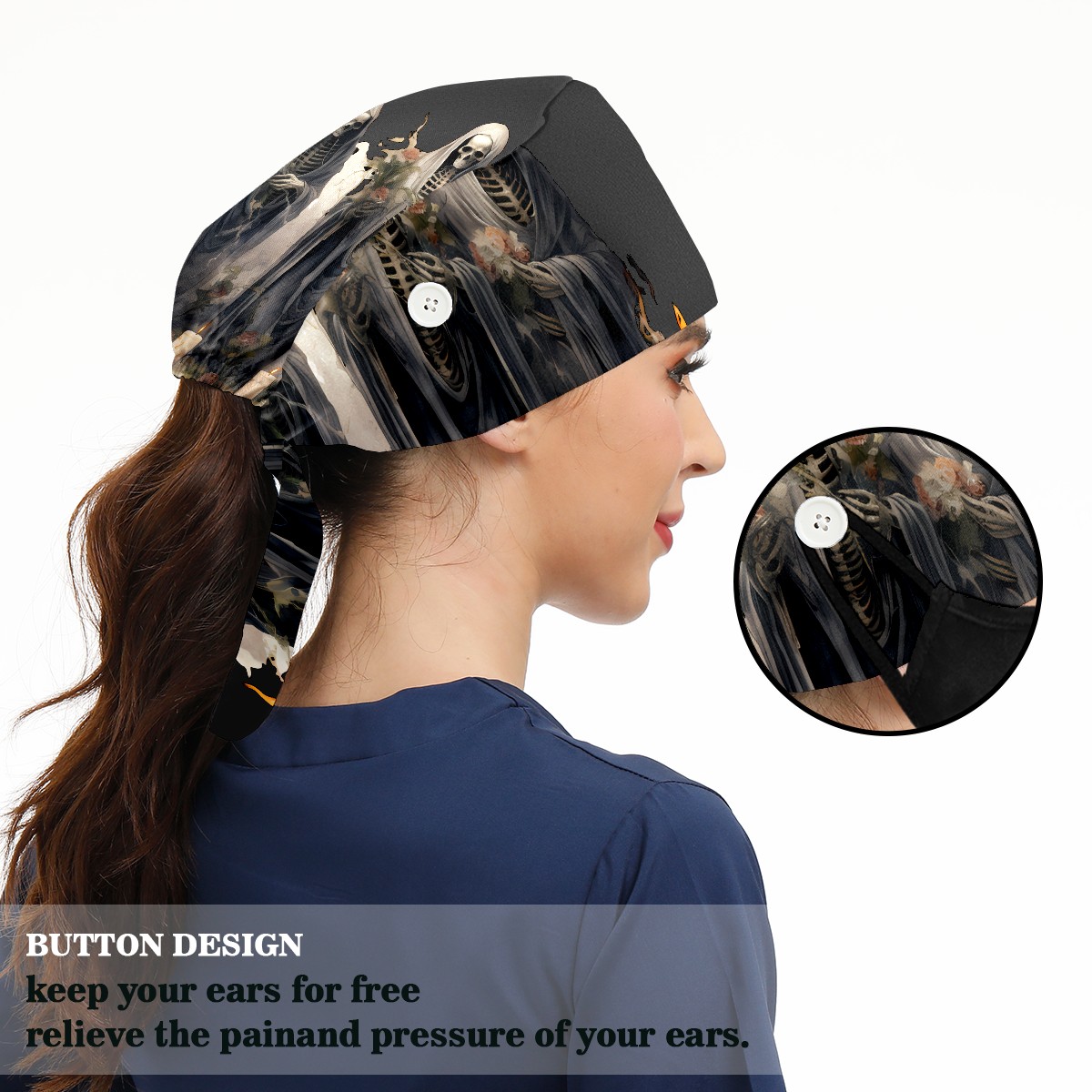 Working Caps with Button & Sweatband Satin Lined Cotton Adjustable Nurse Hats Elastic Band Scrub Cap Surgeon Hat Skull (13)