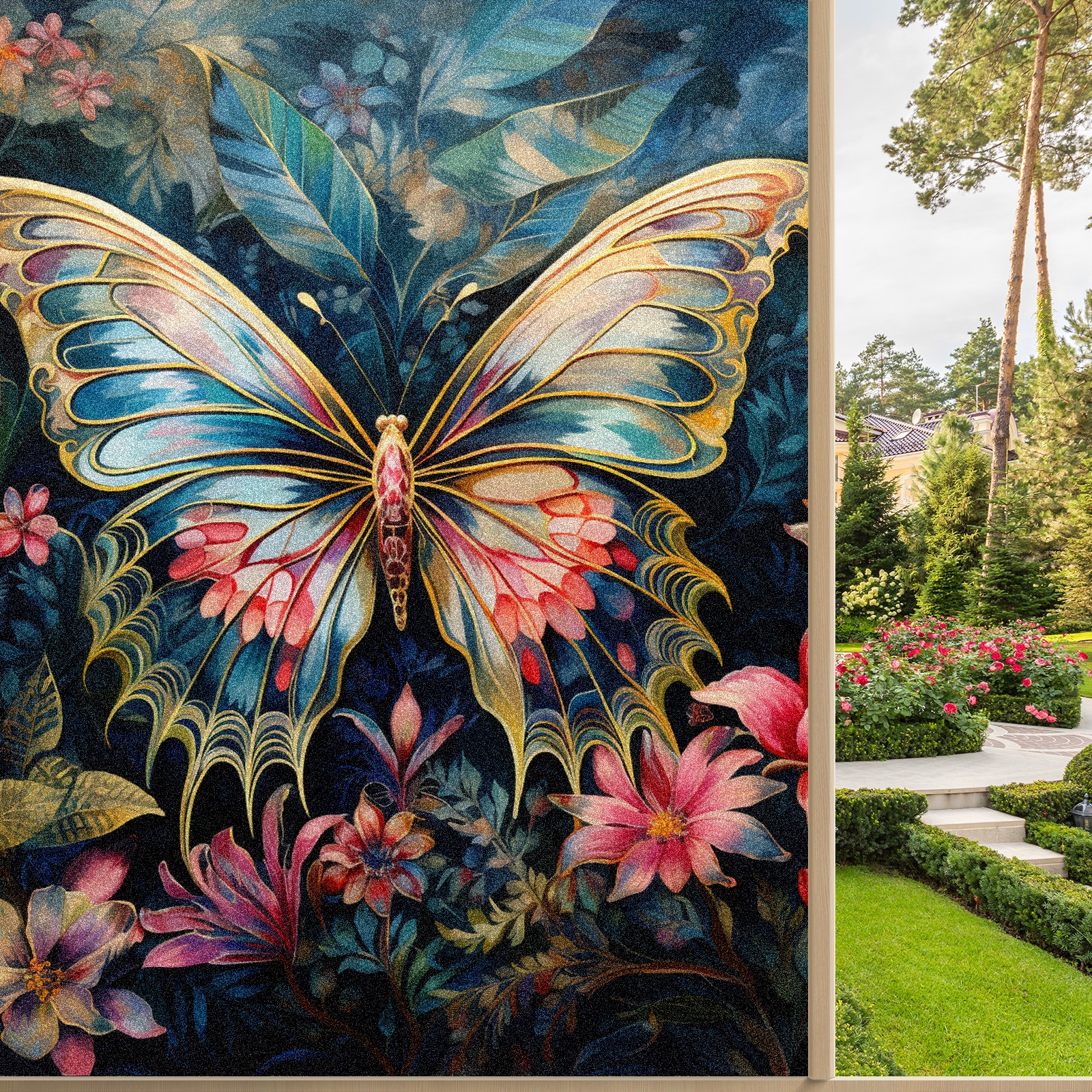 Static Cling Decorative Window Film Frosted Privacy Film Window Clings for Glass Windows No Glue Window Sticker for Bathroom Bedroom Office Butterfly (3)