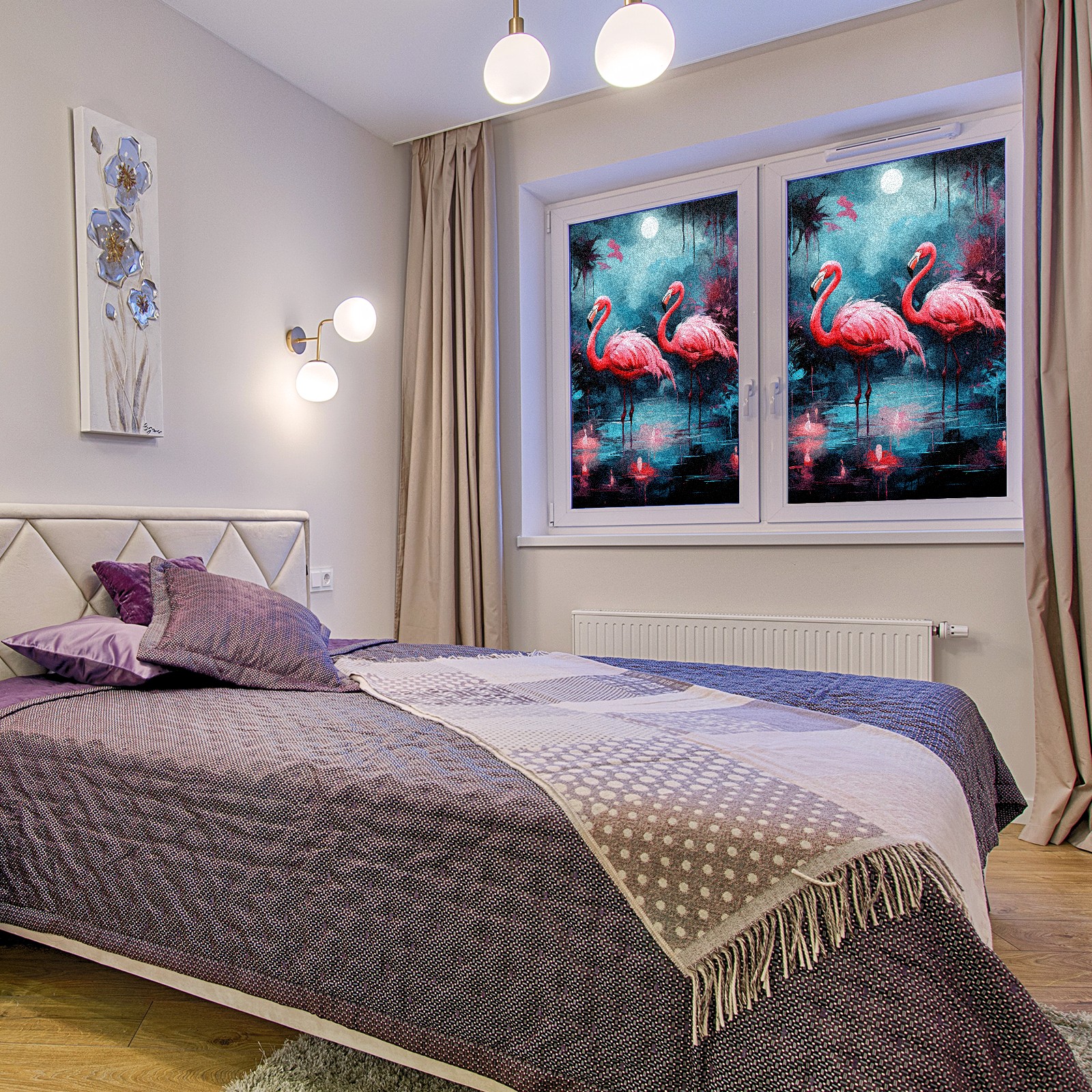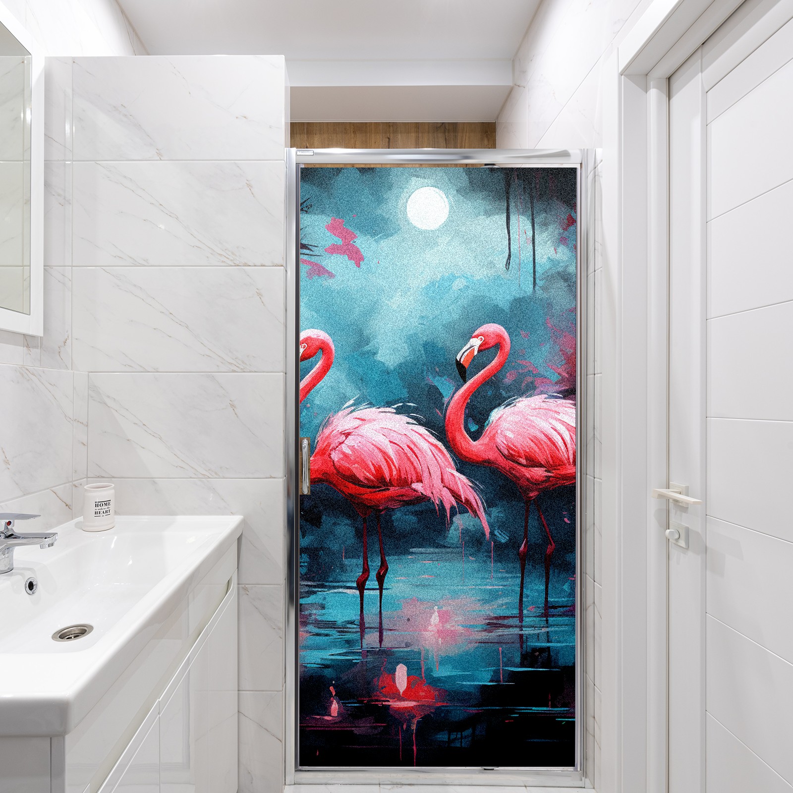 Static Cling Decorative Window Film Frosted Privacy Film Window Clings for Glass Windows No Glue Window Sticker for Bathroom Bedroom Office Flamingo (19)