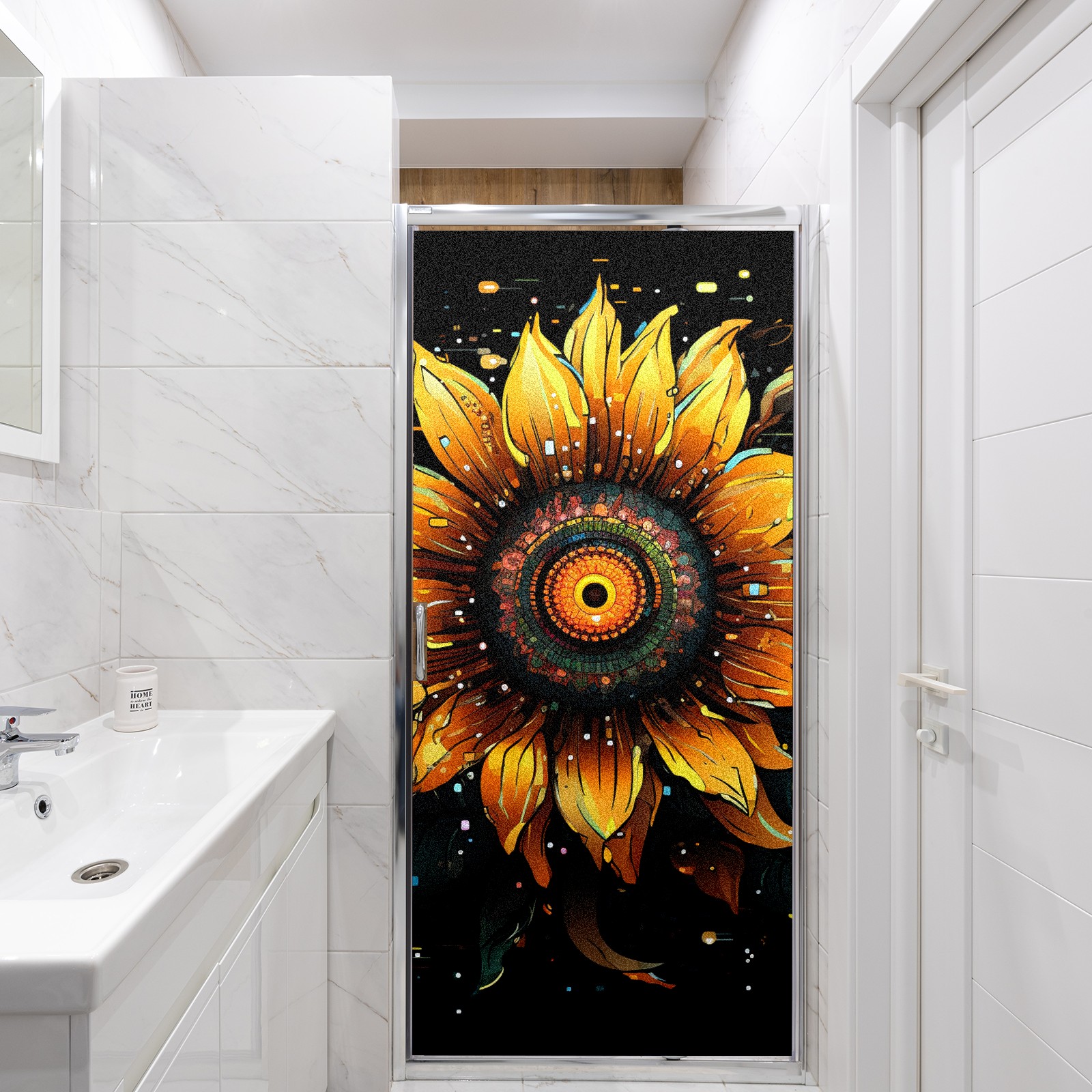 Static Cling Decorative Window Film Frosted Privacy Film Window Clings for Glass Windows No Glue Window Sticker for Bathroom Bedroom Office Sunflower (51)