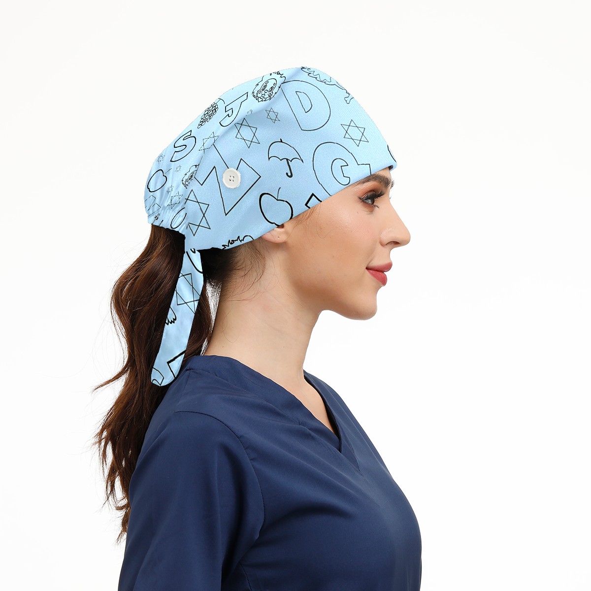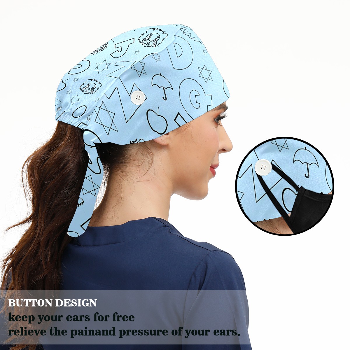 Working Caps with Button & Sweatband Satin Lined Cotton Adjustable Nurse Hats Elastic Band Scrub Cap Surgeon Hat 123