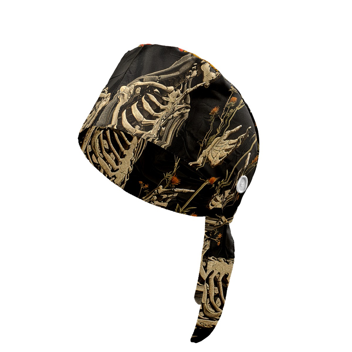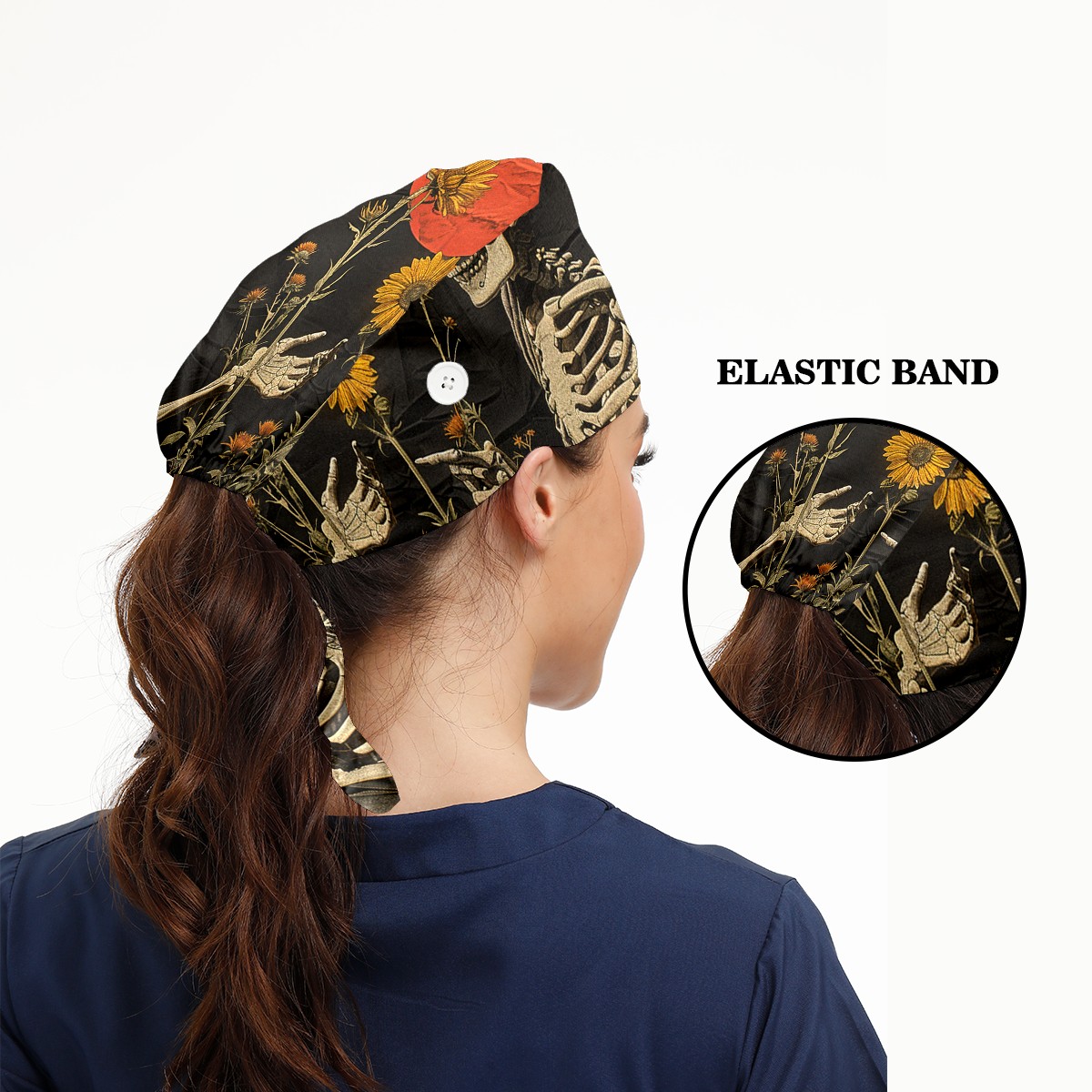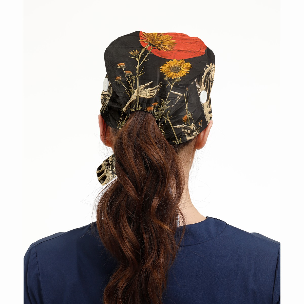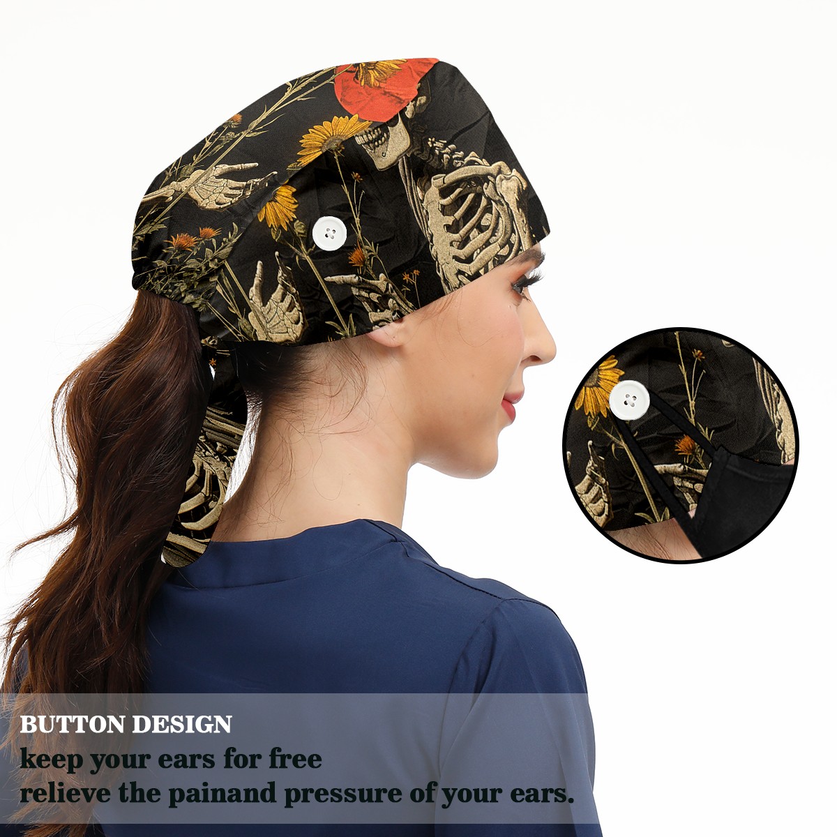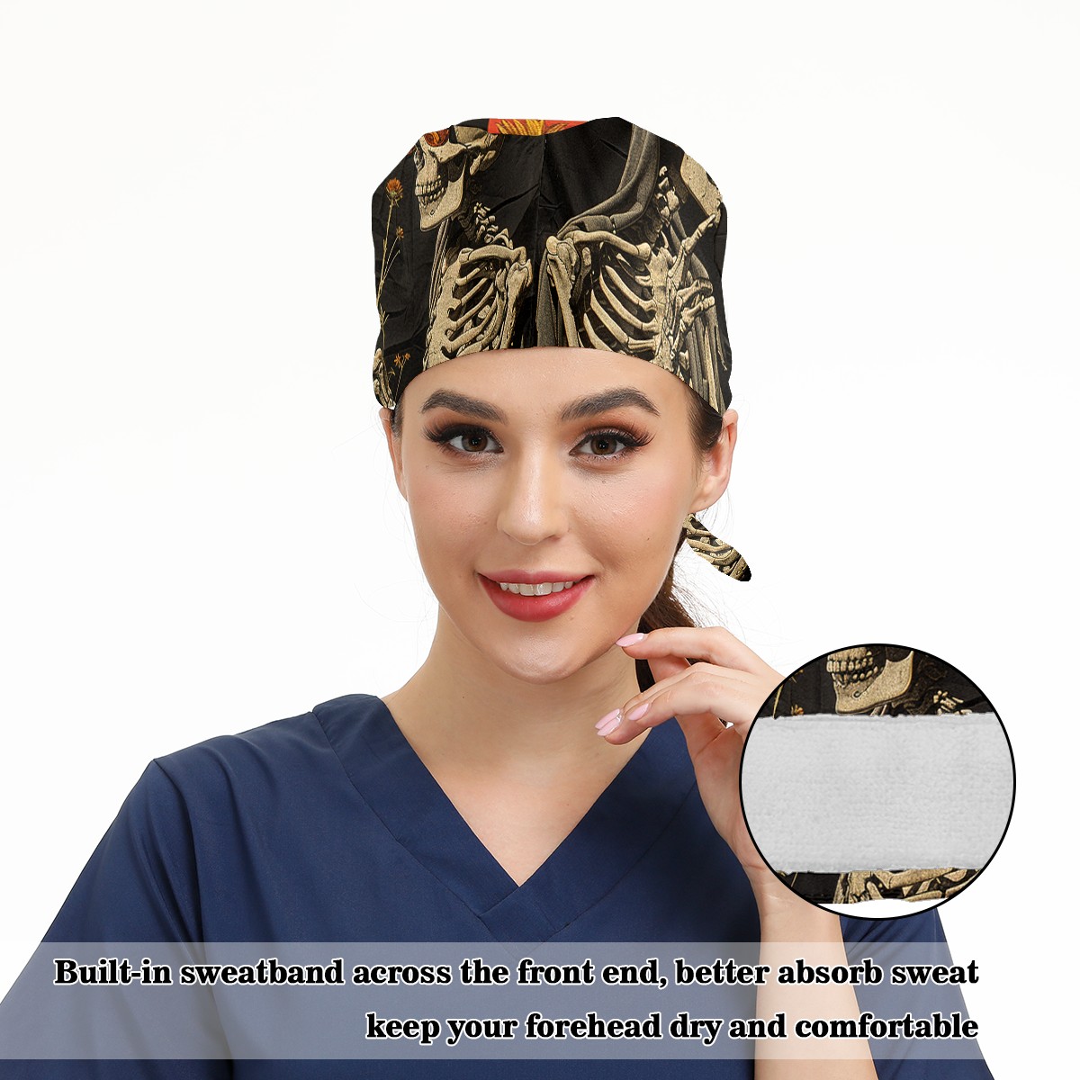 Working Caps with Button & Sweatband Satin Lined Cotton Adjustable Nurse Hats Elastic Band Scrub Cap Surgeon Hat Skull Party