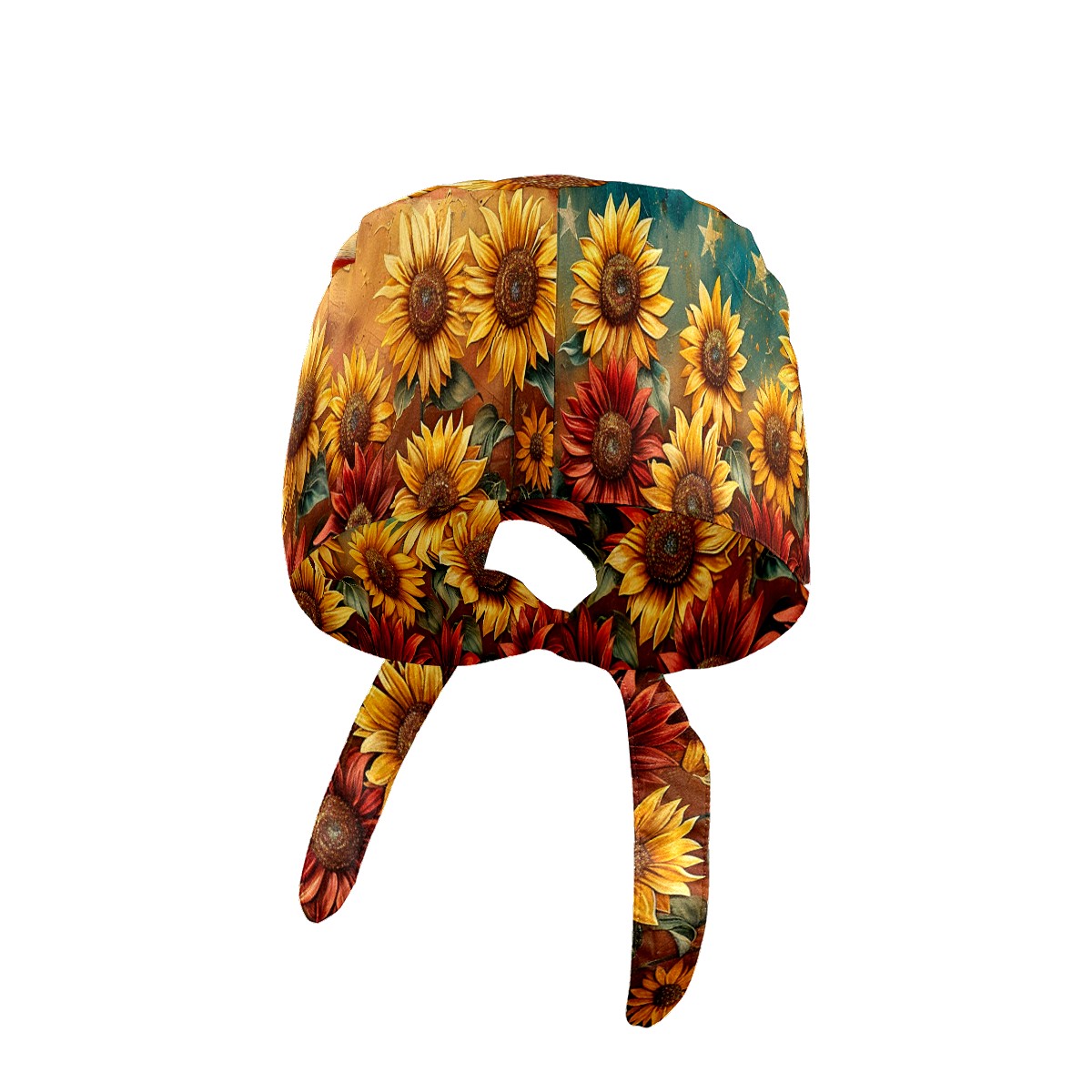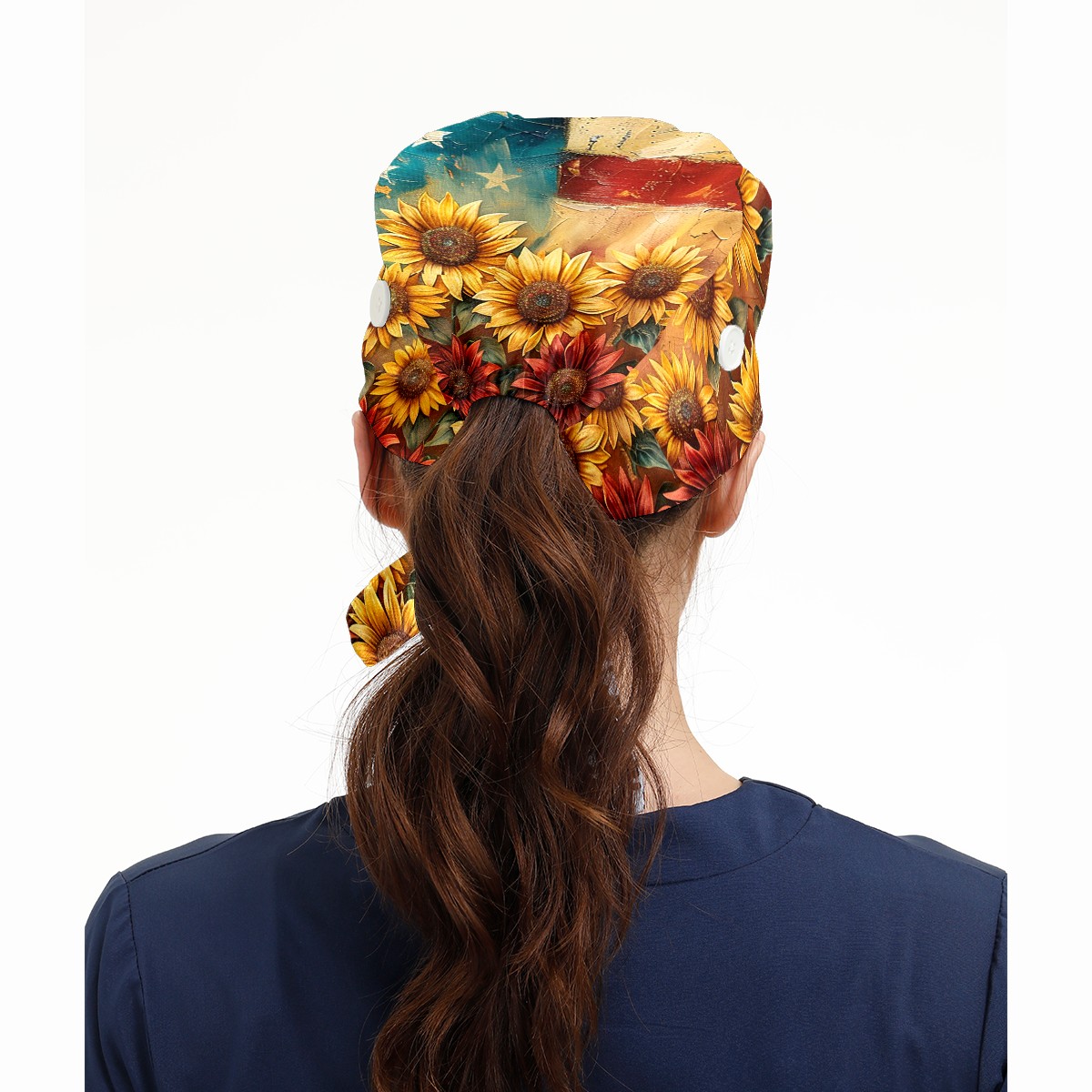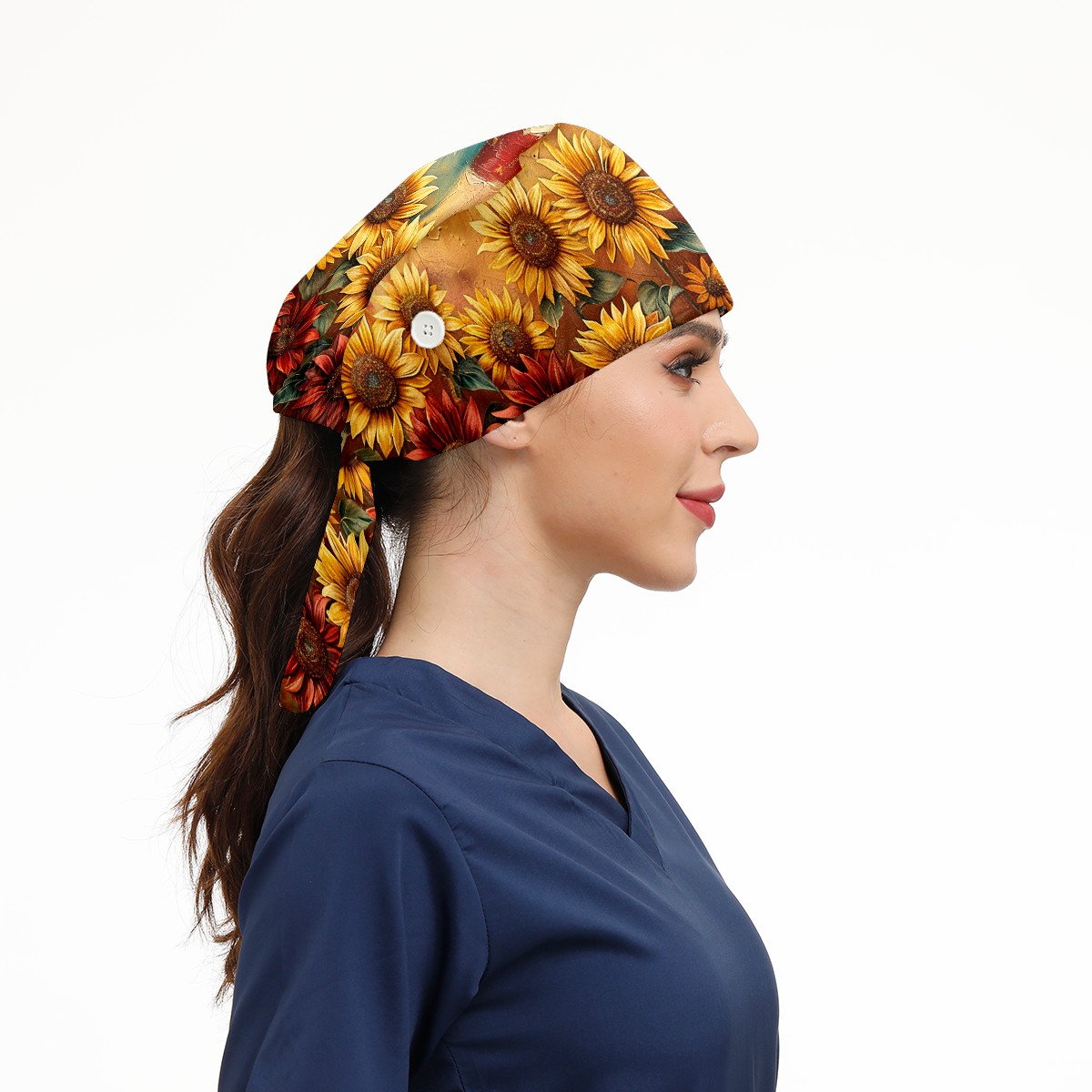Working Caps with Button & Sweatband Satin Lined Cotton Adjustable Nurse Hats Elastic Band Scrub Cap Surgeon Hat Sunflower