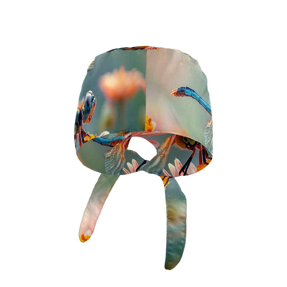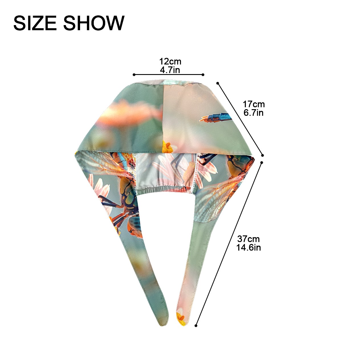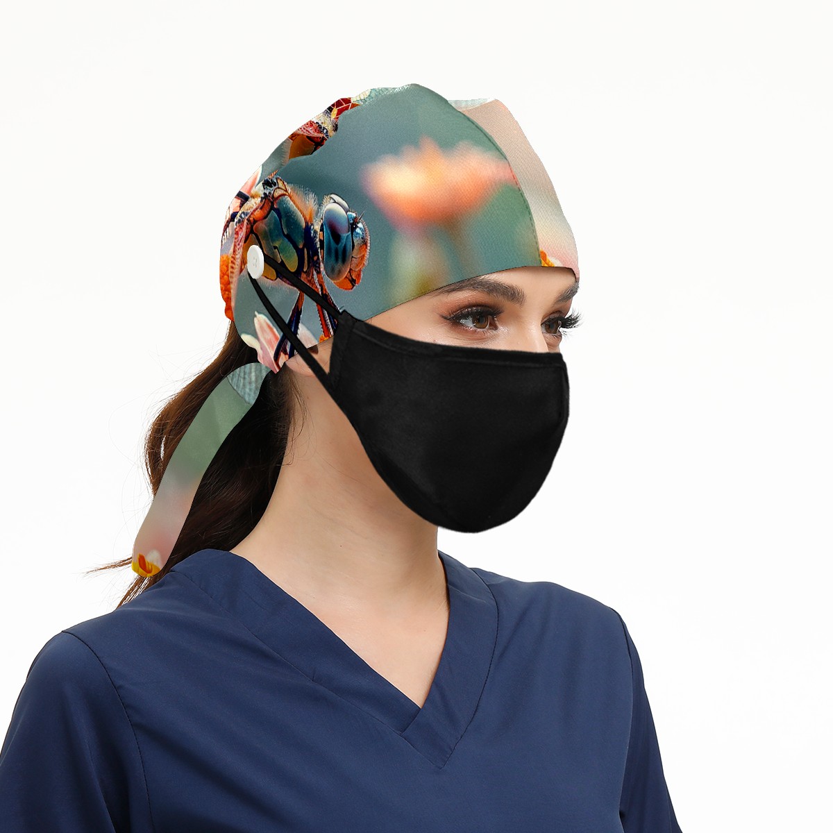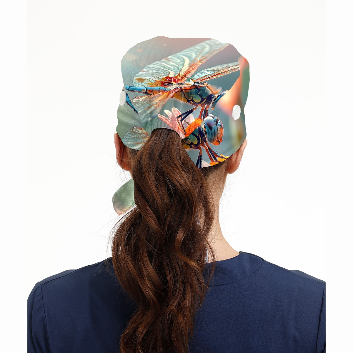 Working Caps with Button & Sweatband Satin Lined Cotton Adjustable Nurse Hats Elastic Band Scrub Cap Surgeon Hat Dragonfly
