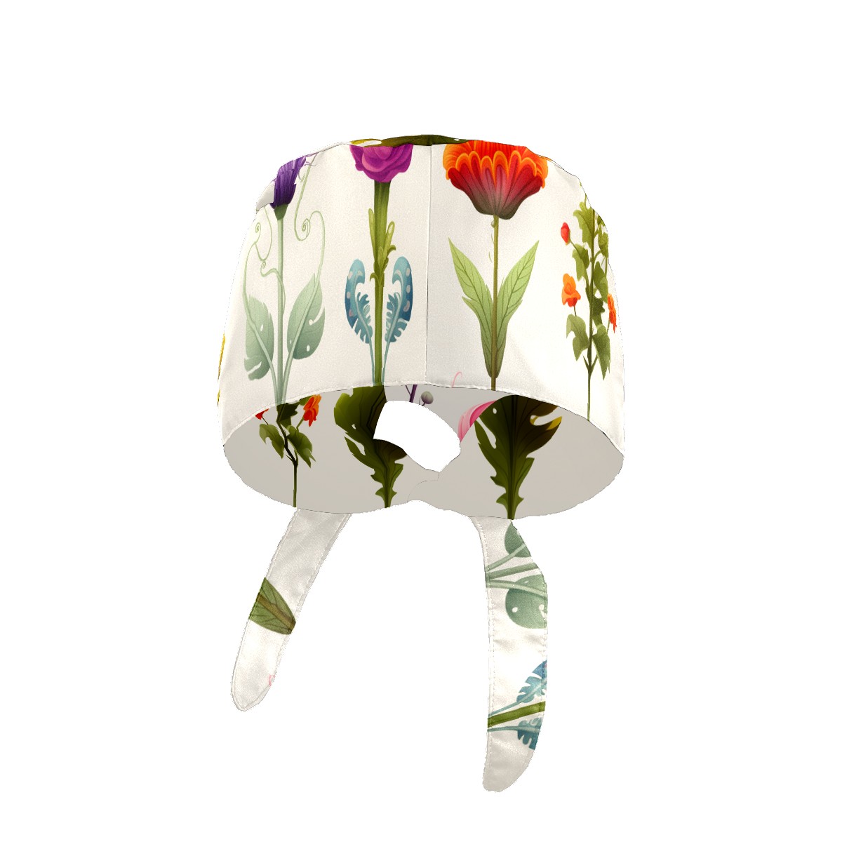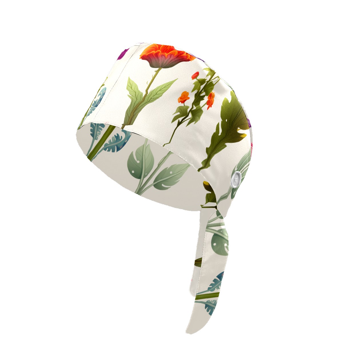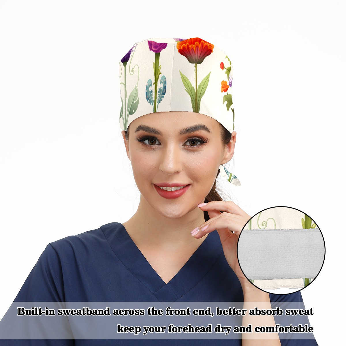 Working Caps with Button & Sweatband Satin Lined Cotton Adjustable Nurse Hats Elastic Band Scrub Cap Surgeon Hat Plants