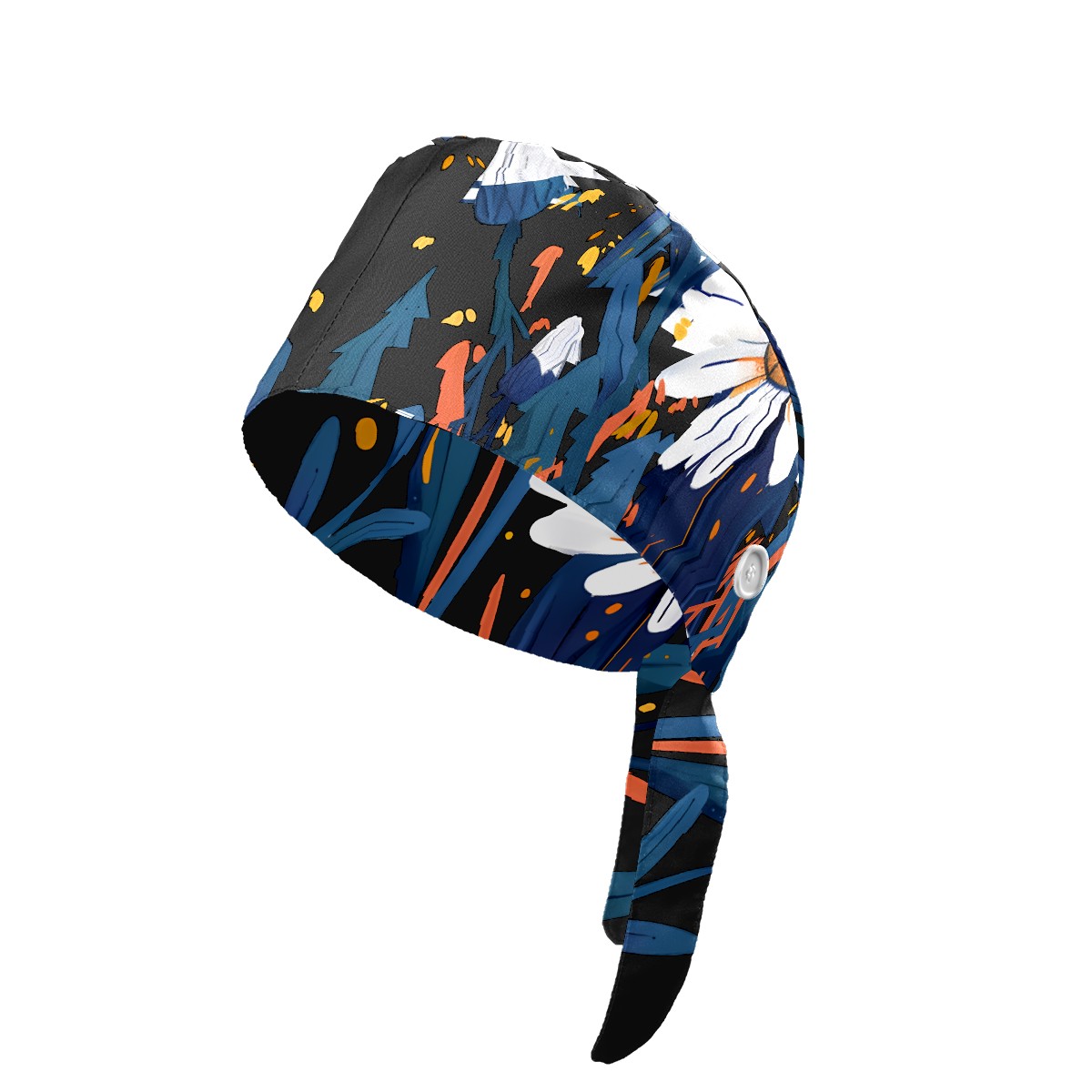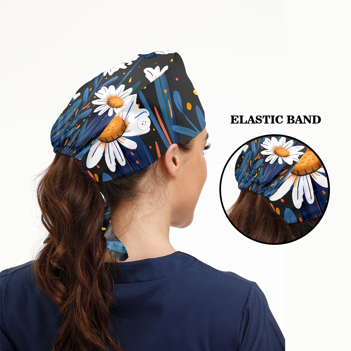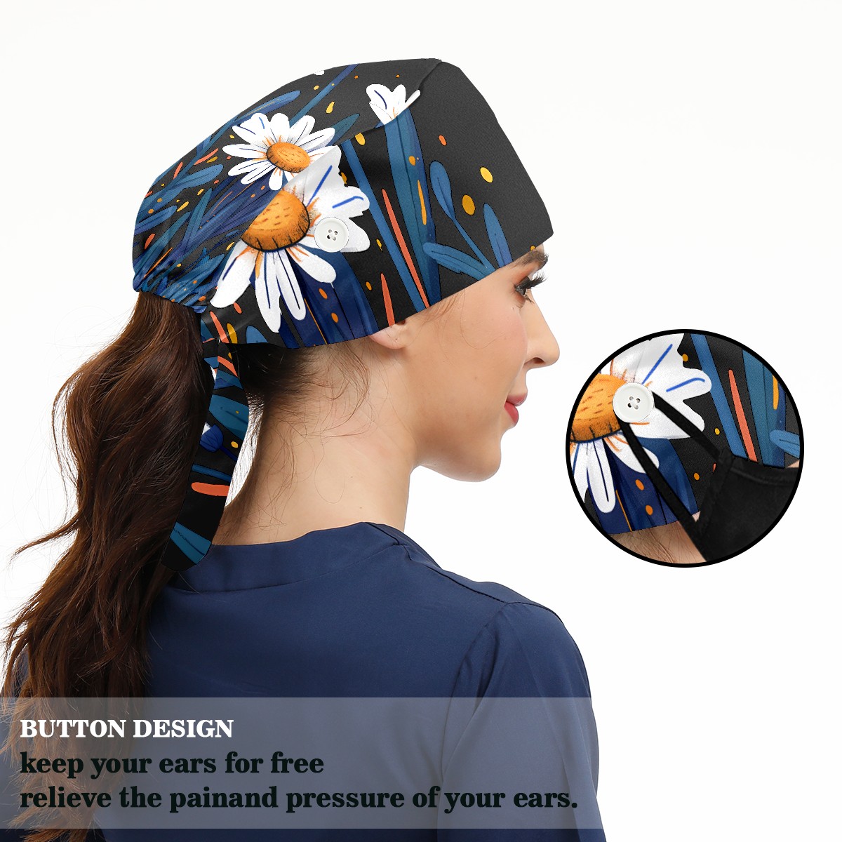 Working Caps with Button & Sweatband Satin Lined Cotton Adjustable Nurse Hats Elastic Band Scrub Cap Surgeon Hat Flowers (7)