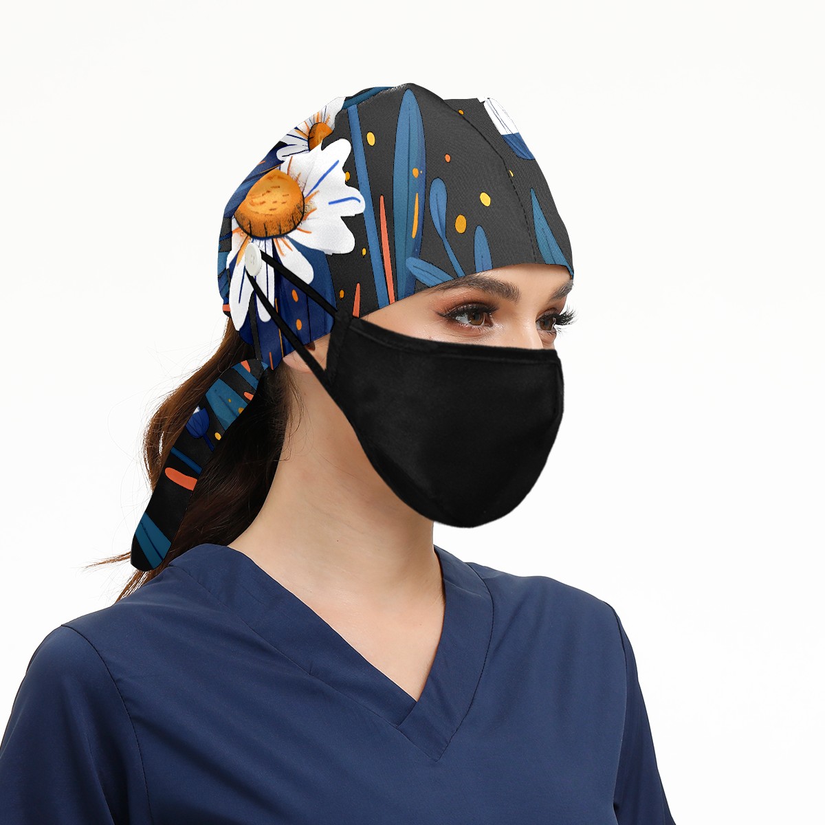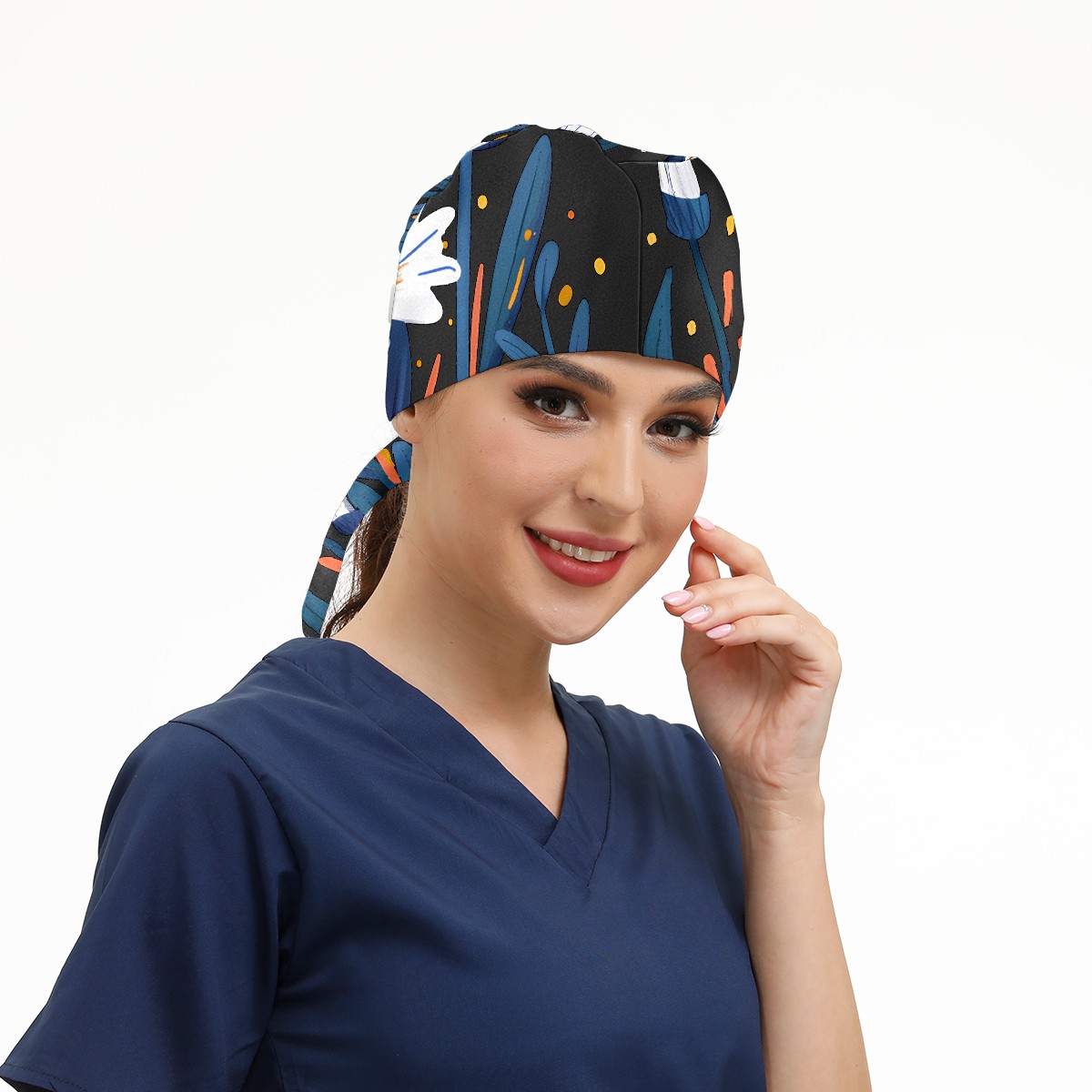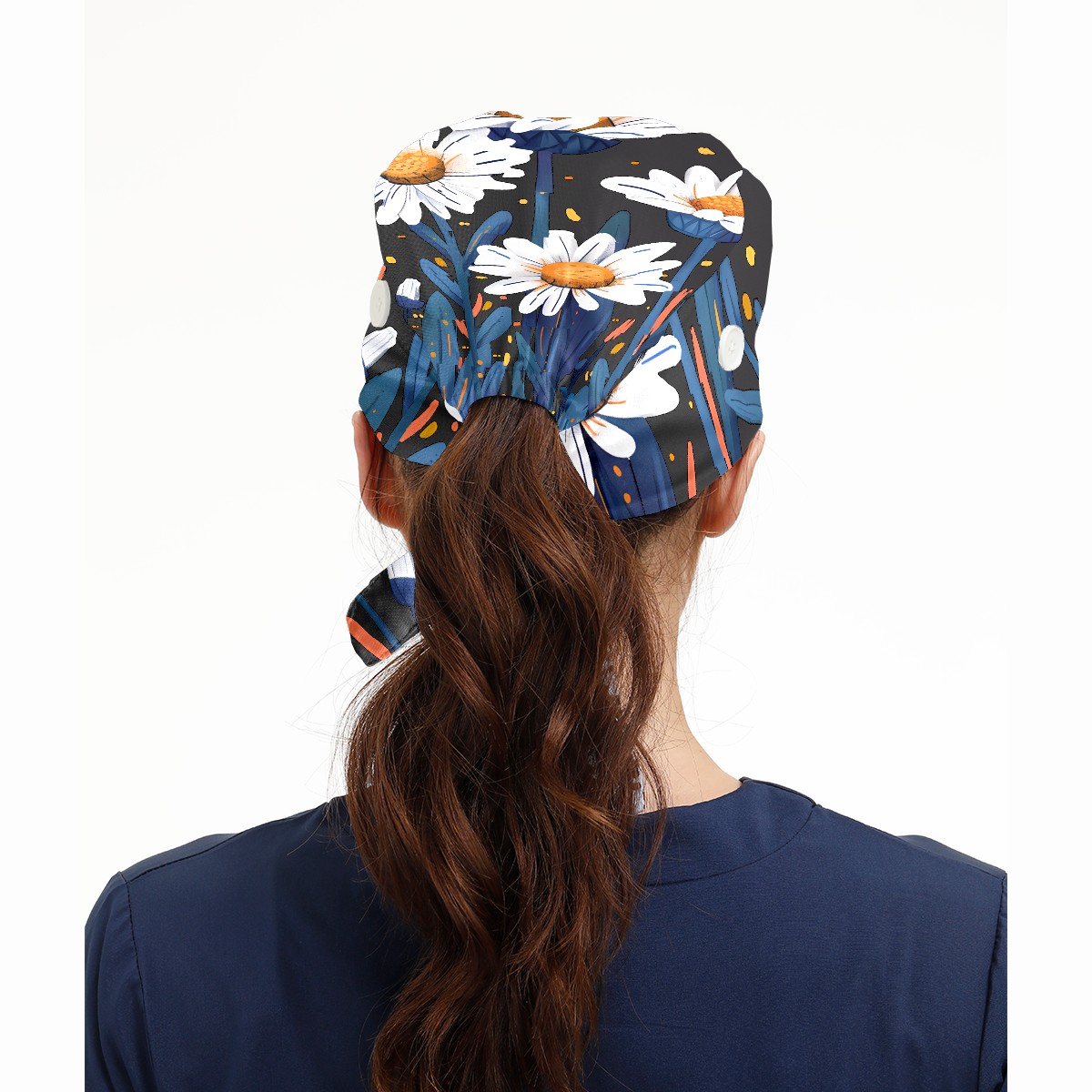 Working Caps with Button & Sweatband Satin Lined Cotton Adjustable Nurse Hats Elastic Band Scrub Cap Surgeon Hat Flowers (7)