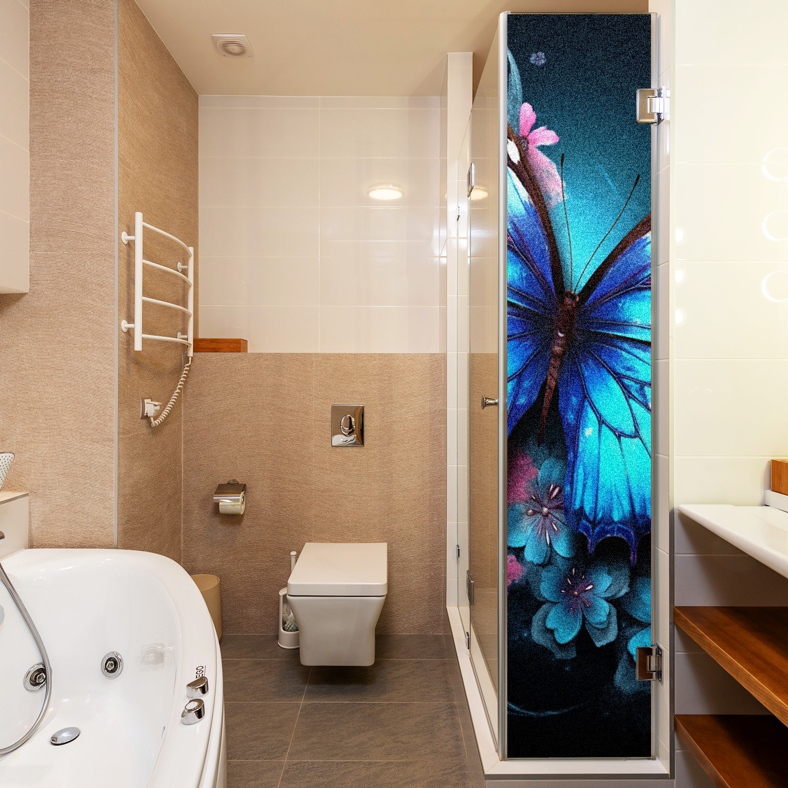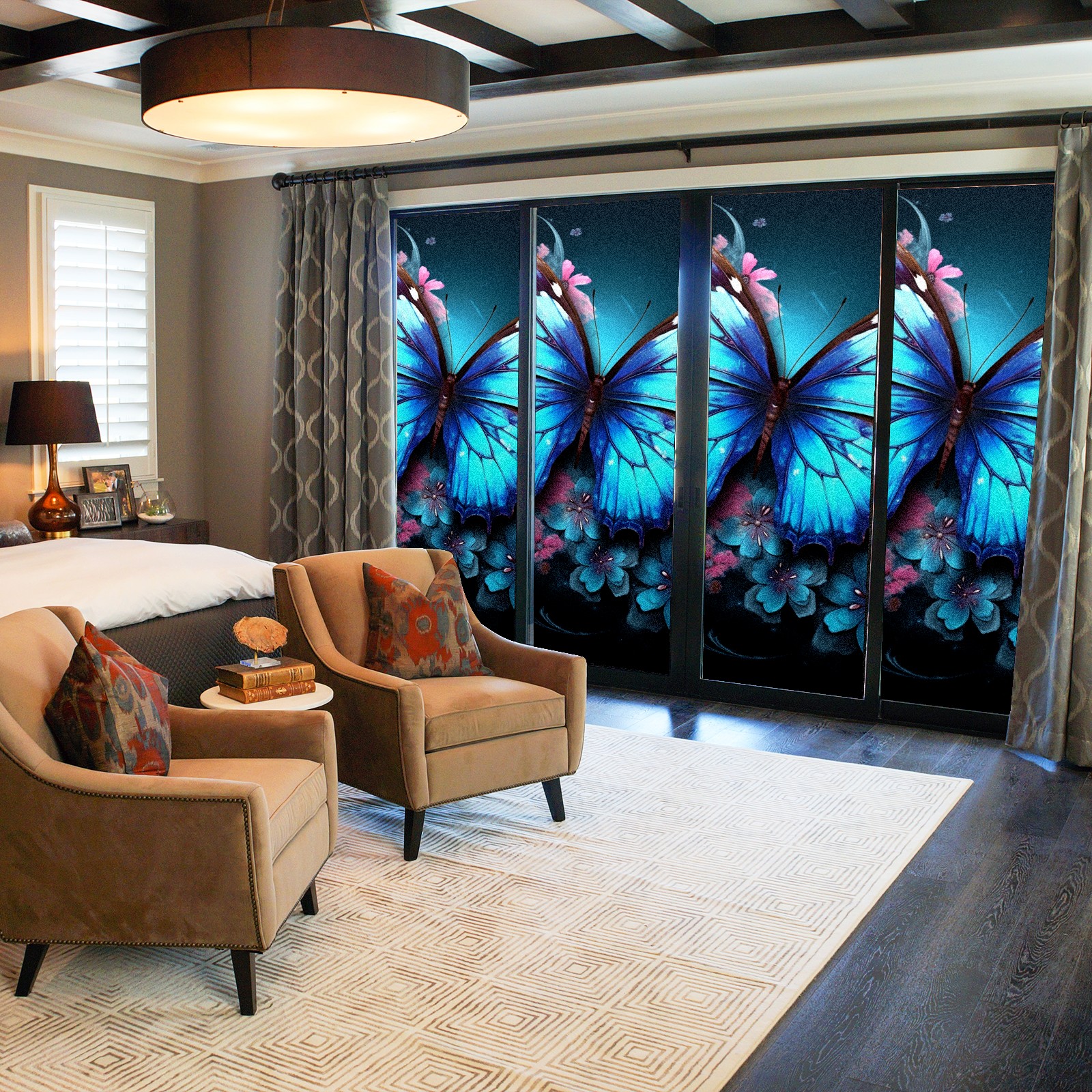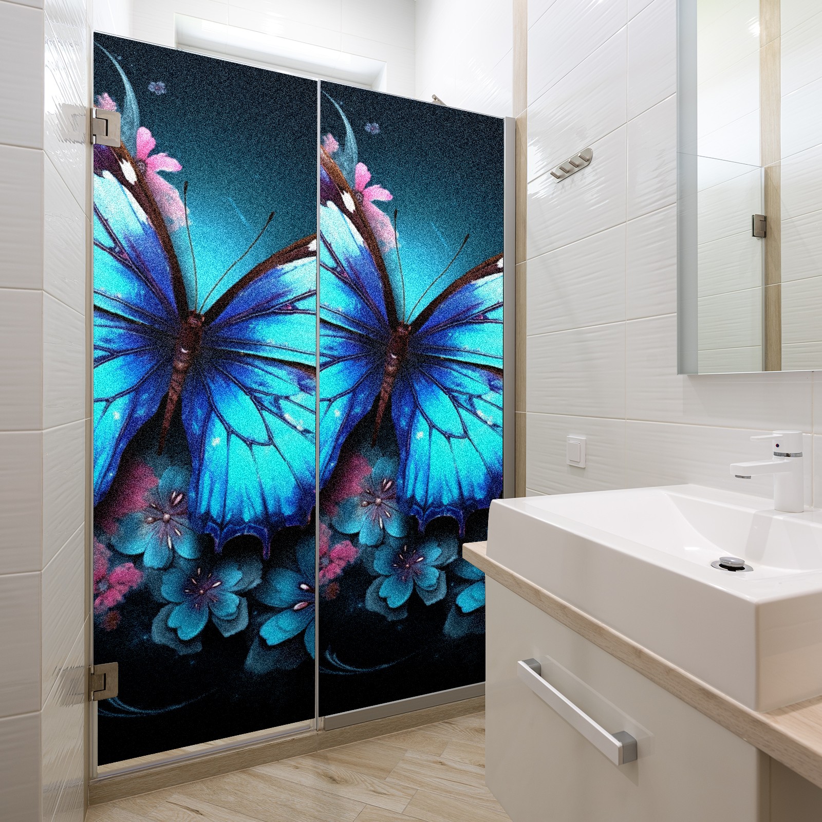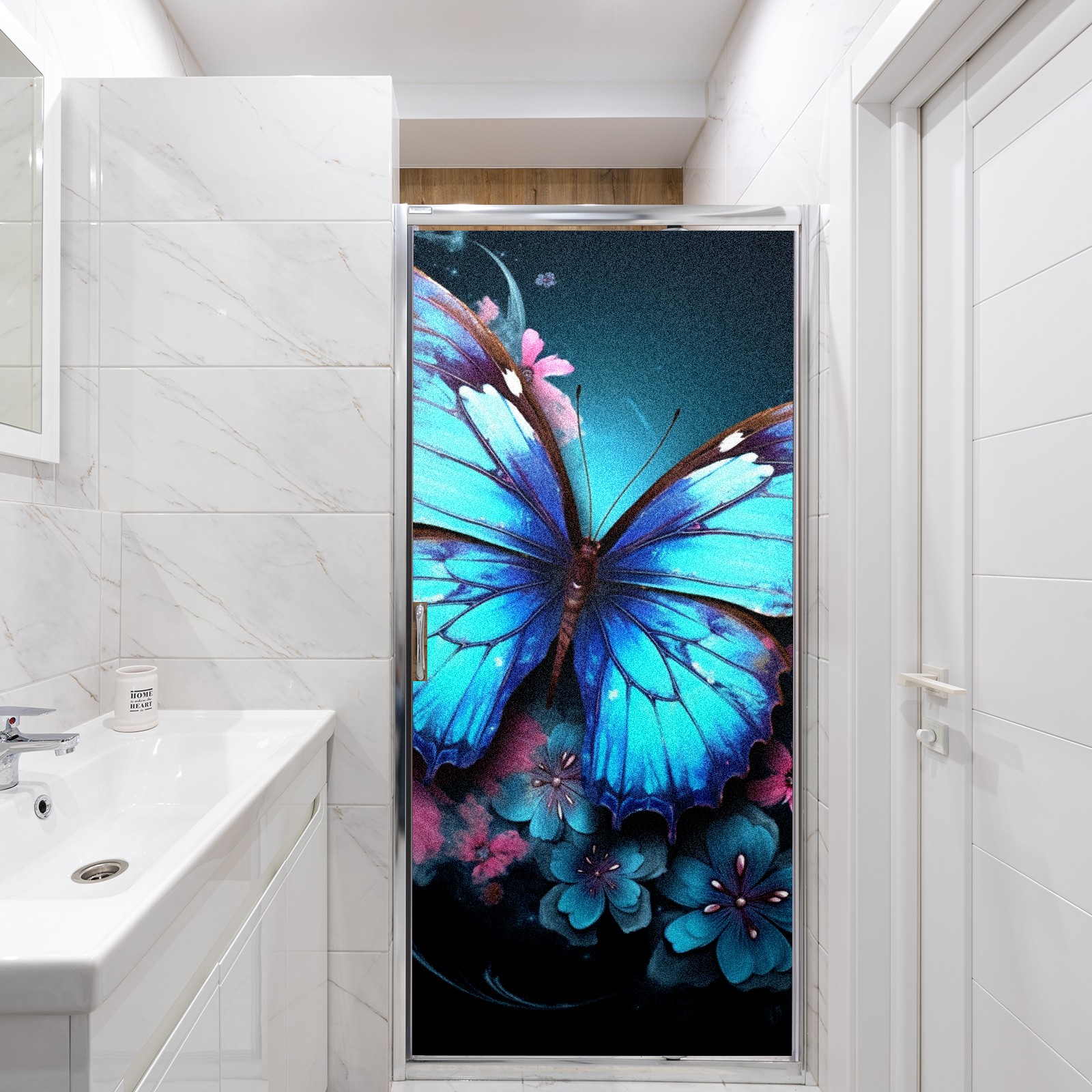 Static Cling Decorative Window Film Frosted Privacy Film Window Clings for Glass Windows No Glue Window Sticker for Bathroom Bedroom Office Blue ButterfliesFlower (5)
