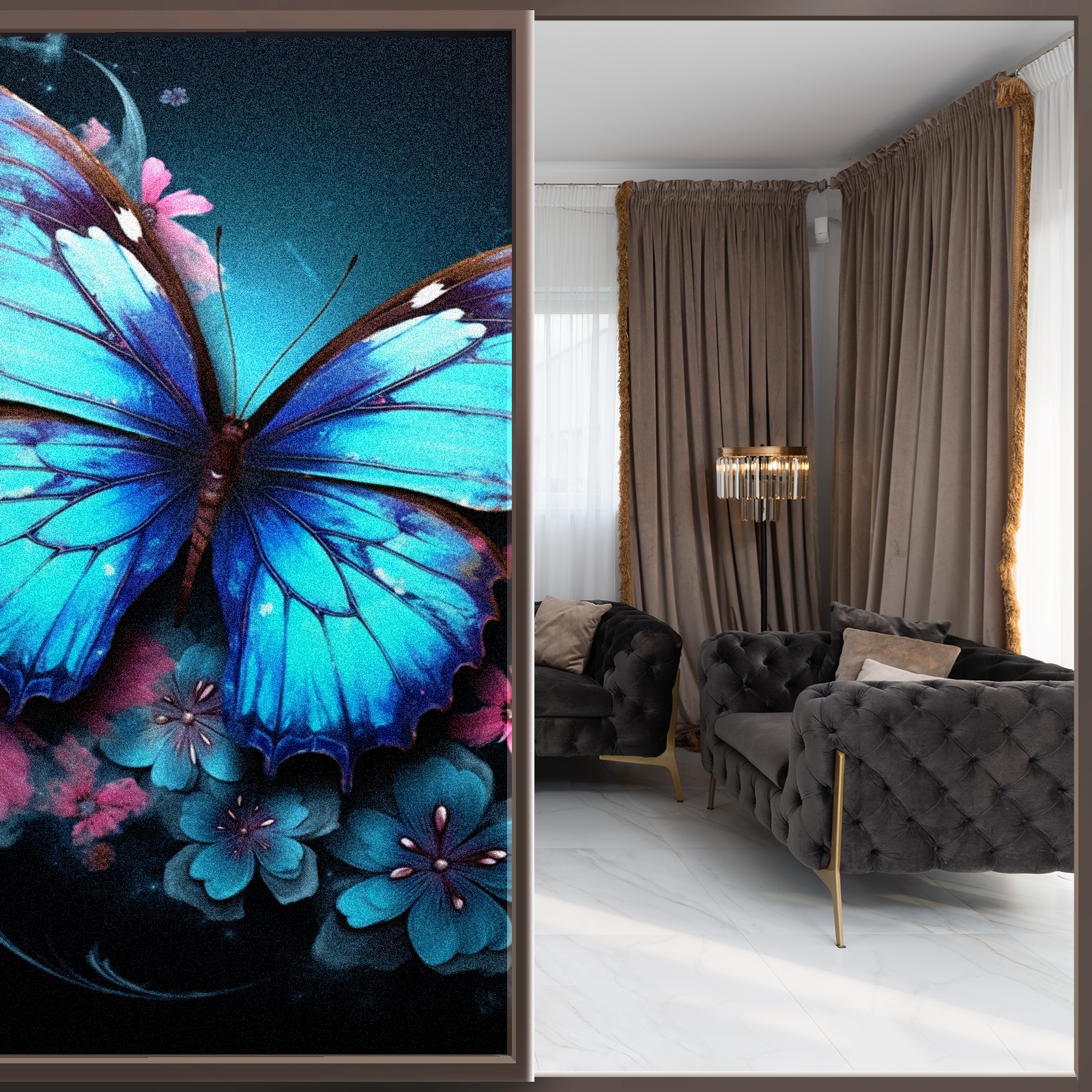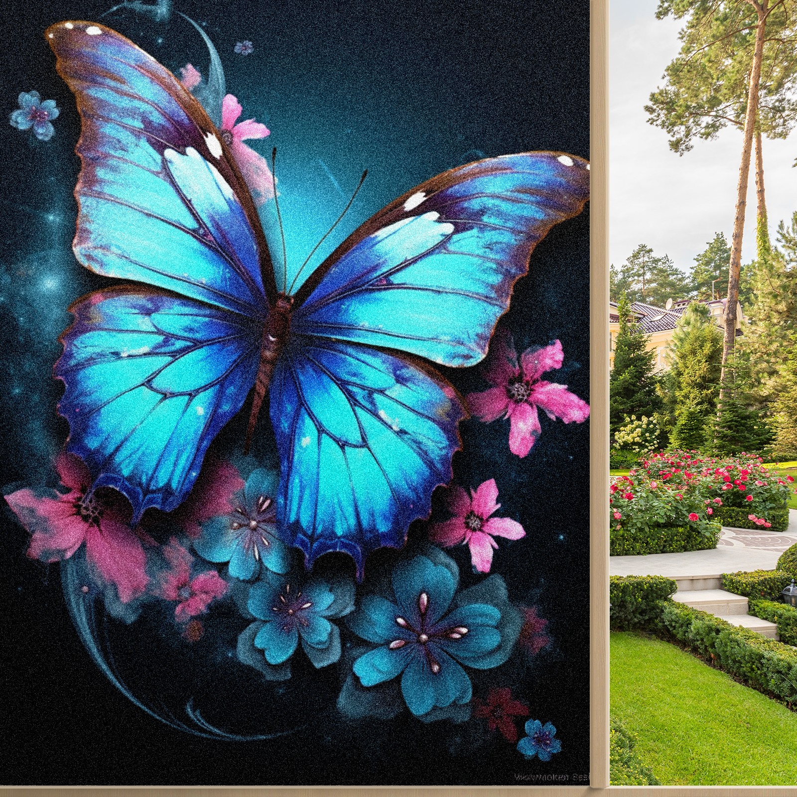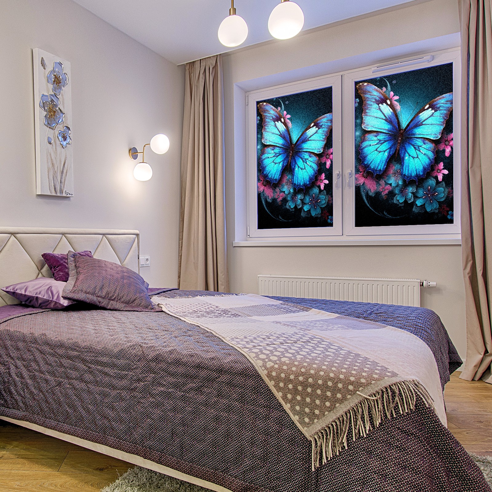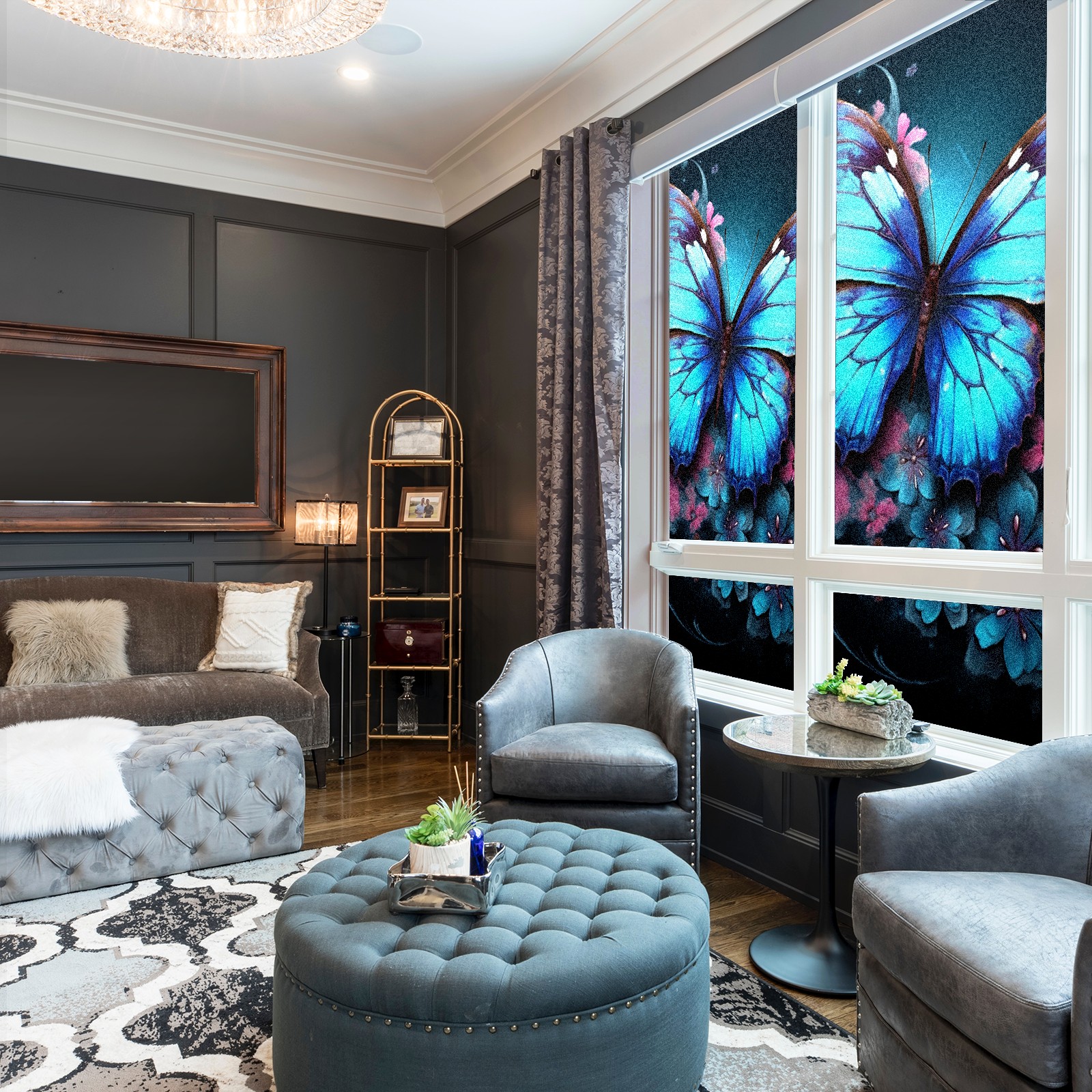 Static Cling Decorative Window Film Frosted Privacy Film Window Clings for Glass Windows No Glue Window Sticker for Bathroom Bedroom Office Blue ButterfliesFlower (5)