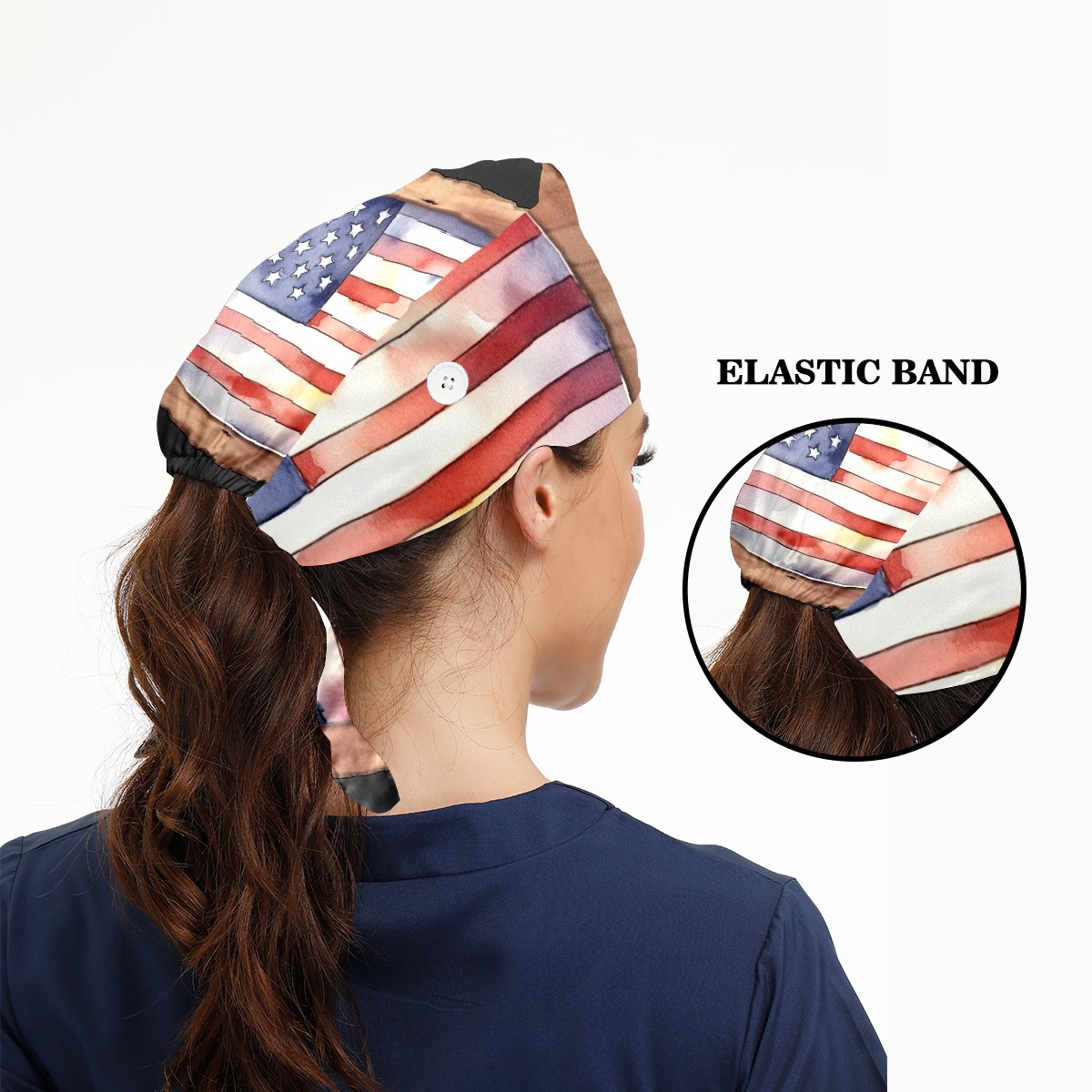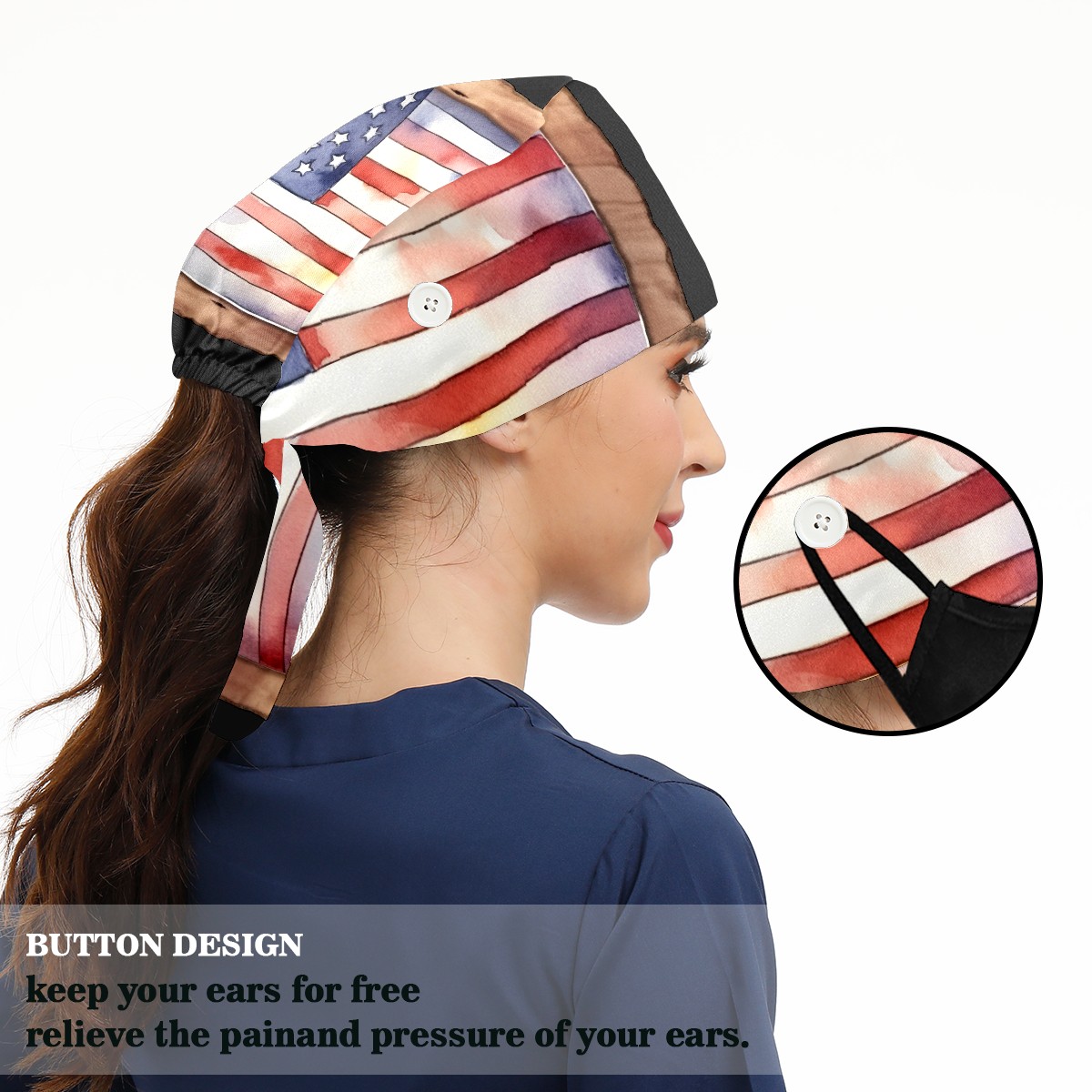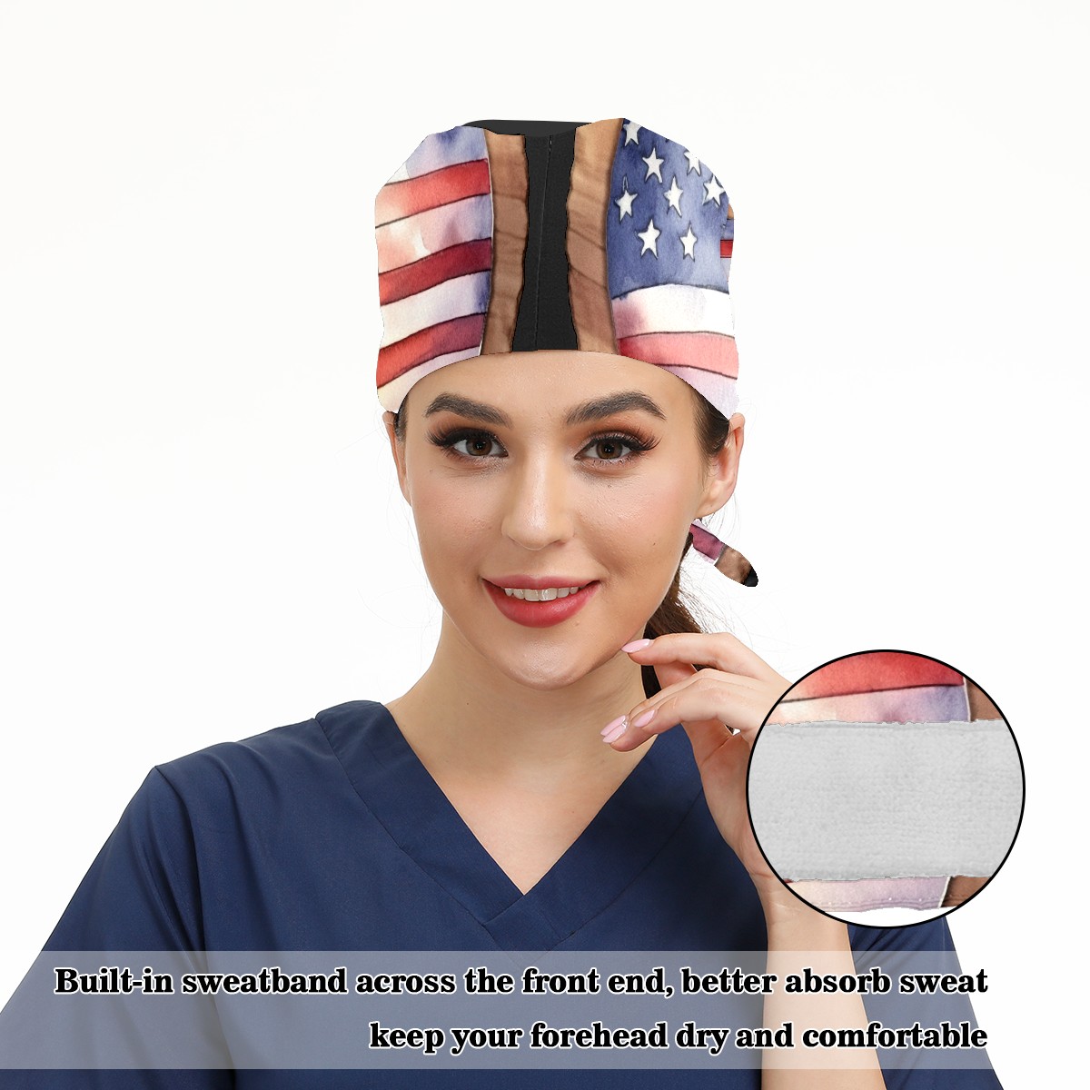 Working Caps with Button & Sweatband Satin Lined Cotton Adjustable Nurse Hats Elastic Band Scrub Cap Surgeon Hat Flag