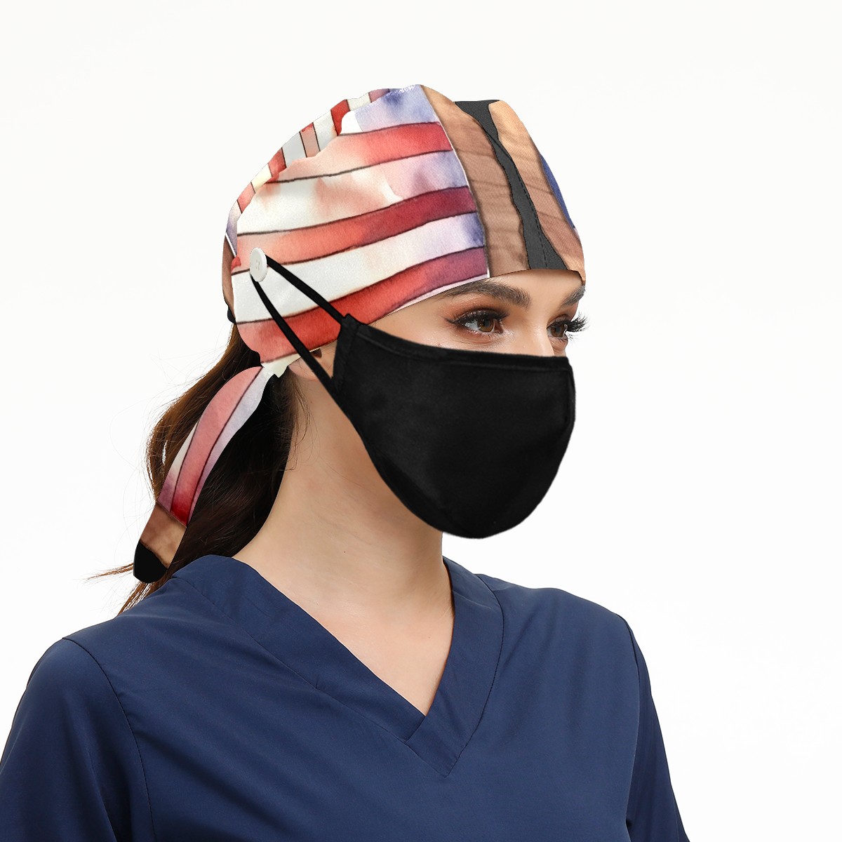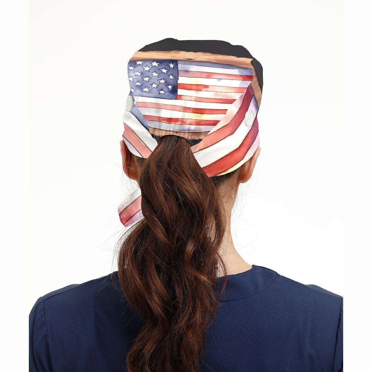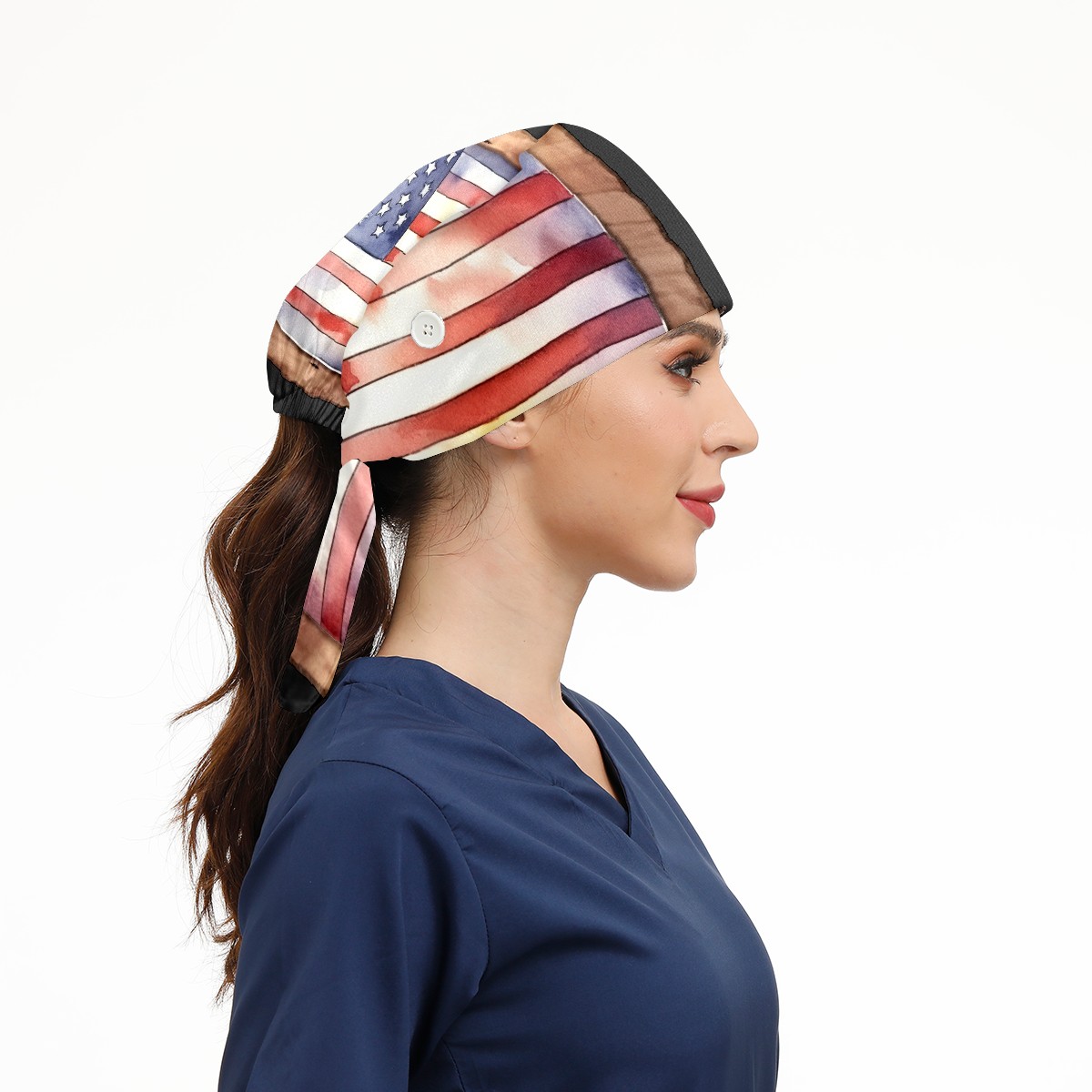 Working Caps with Button & Sweatband Satin Lined Cotton Adjustable Nurse Hats Elastic Band Scrub Cap Surgeon Hat Flag