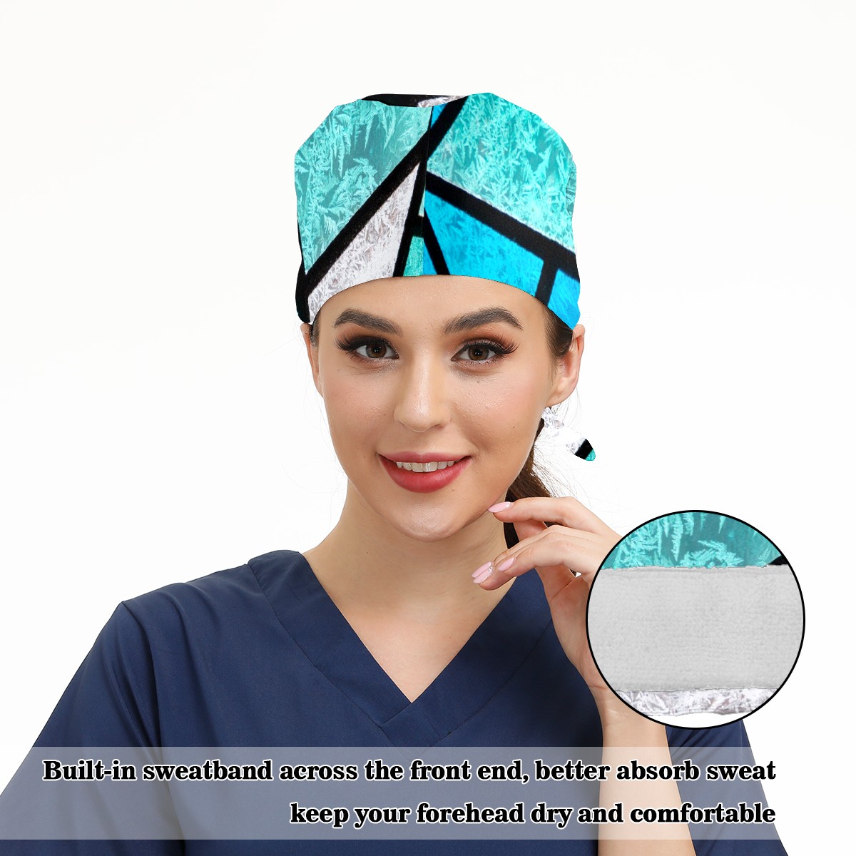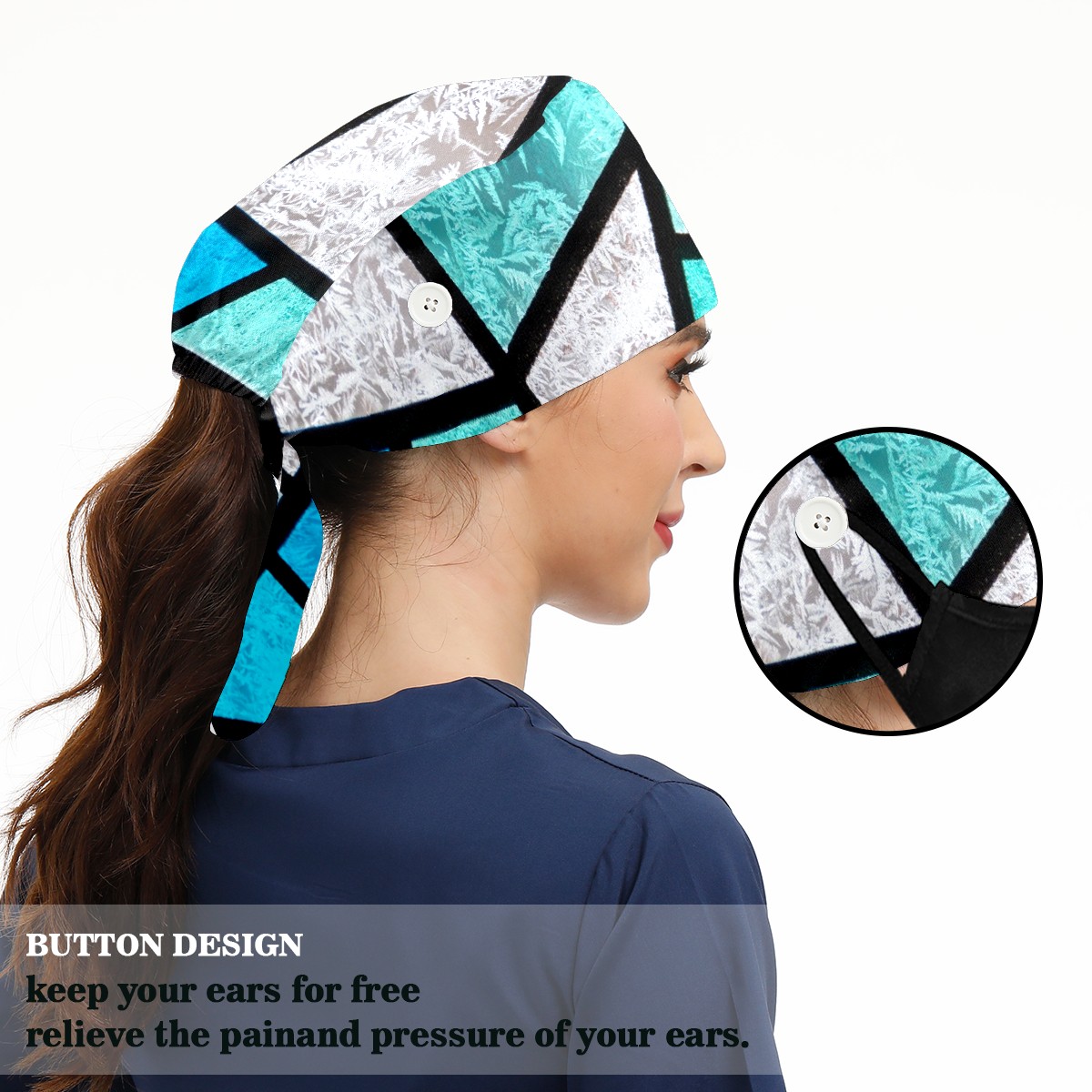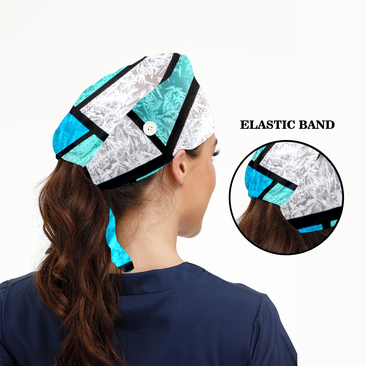 Working Caps with Button & Sweatband Satin Lined Cotton Adjustable Nurse Hats Elastic Band Scrub Cap Surgeon Hat Stained Glass