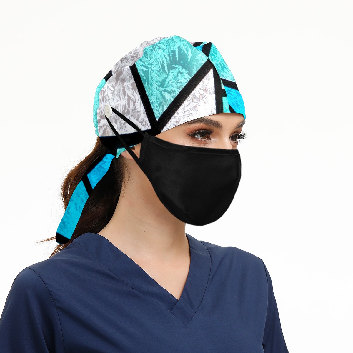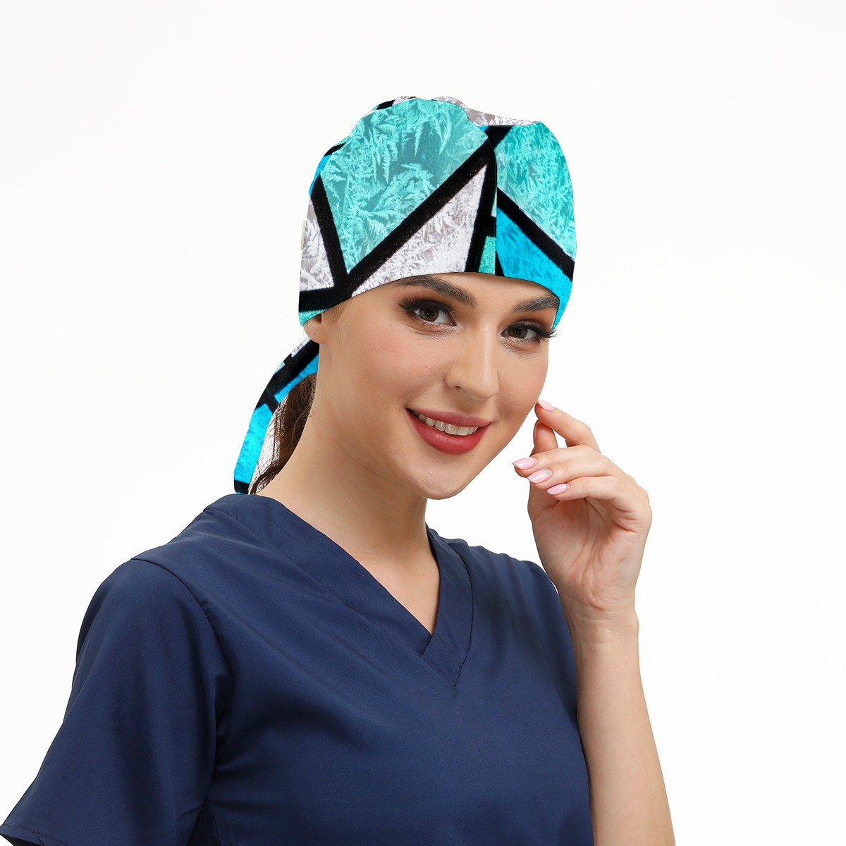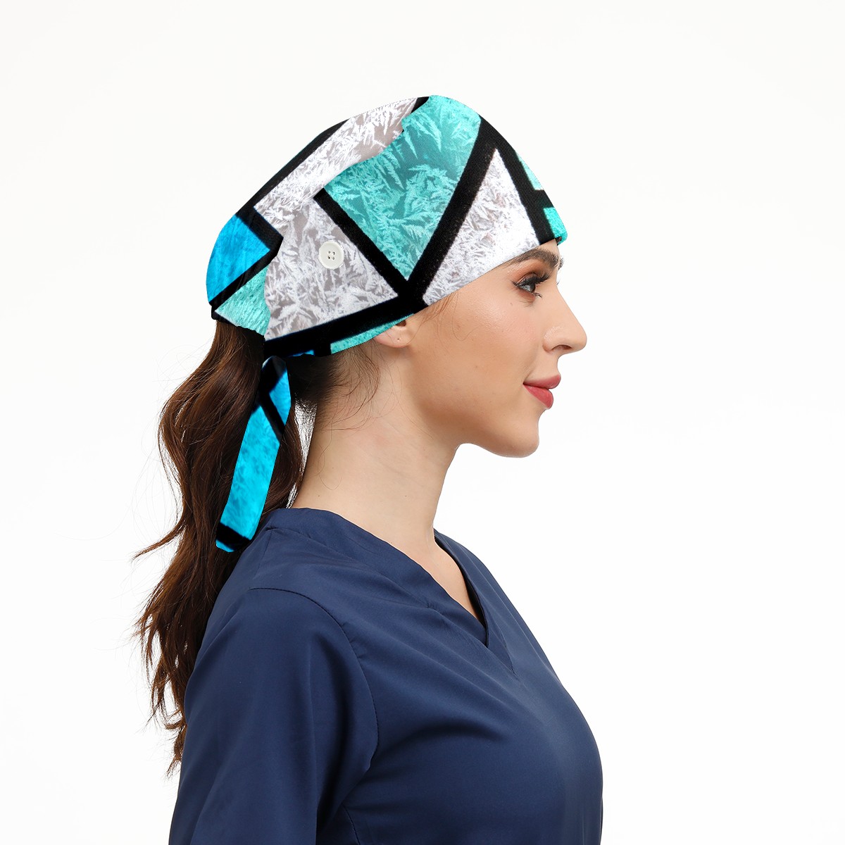 Working Caps with Button & Sweatband Satin Lined Cotton Adjustable Nurse Hats Elastic Band Scrub Cap Surgeon Hat Stained Glass