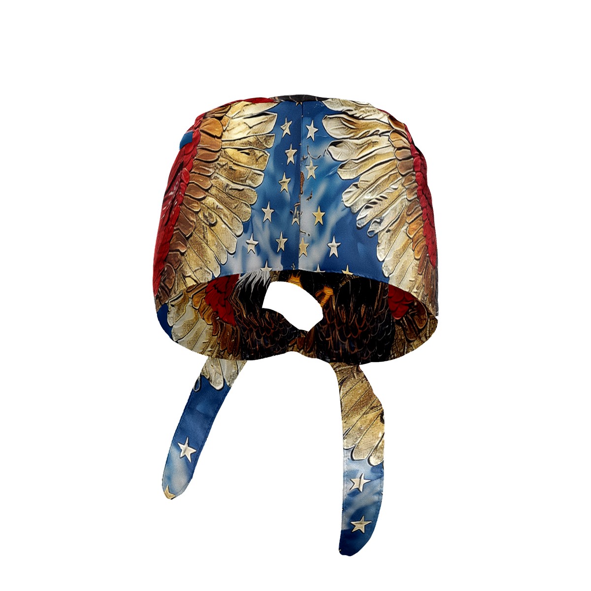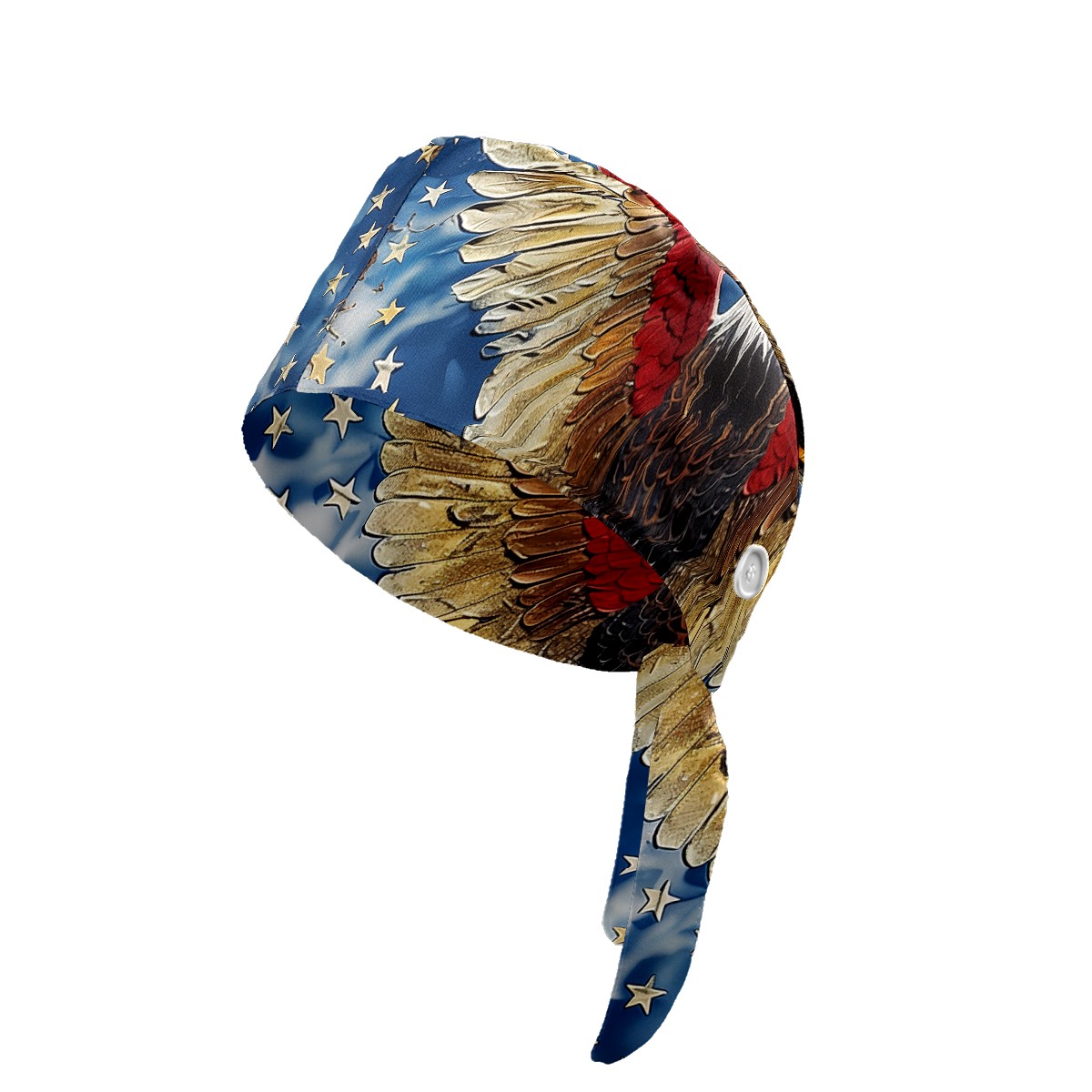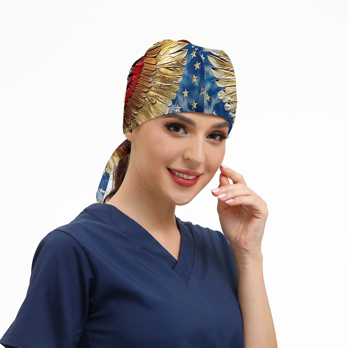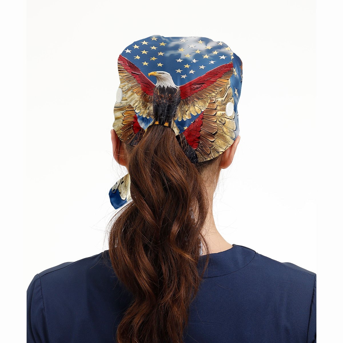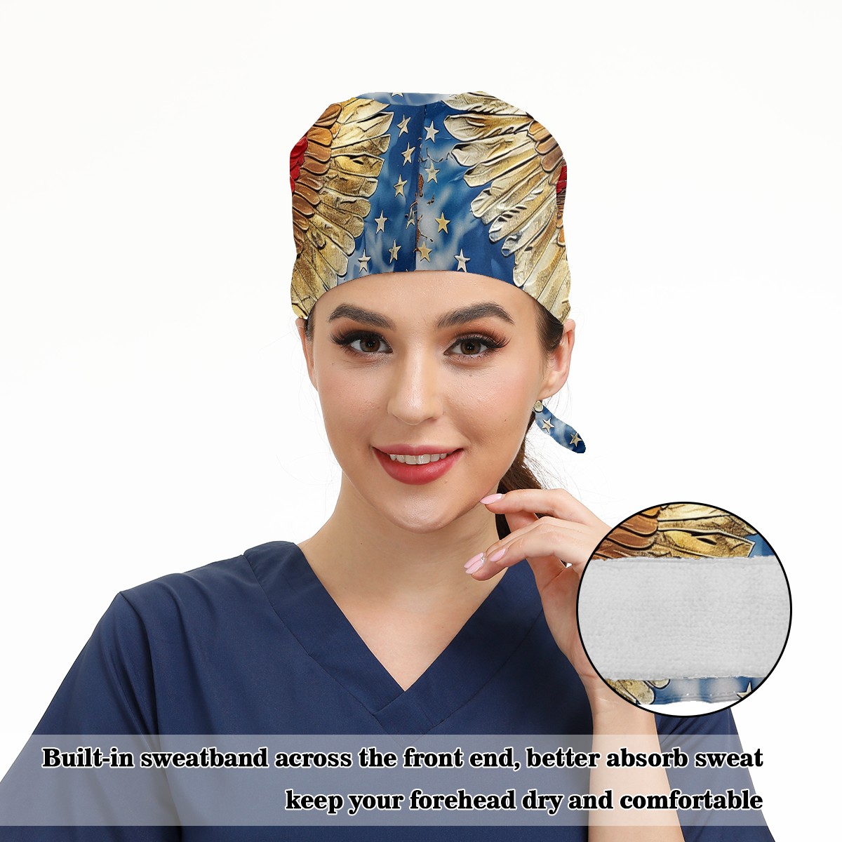 Working Caps with Button & Sweatband Satin Lined Cotton Adjustable Nurse Hats Elastic Band Scrub Cap Surgeon Hat American Flag Eagle