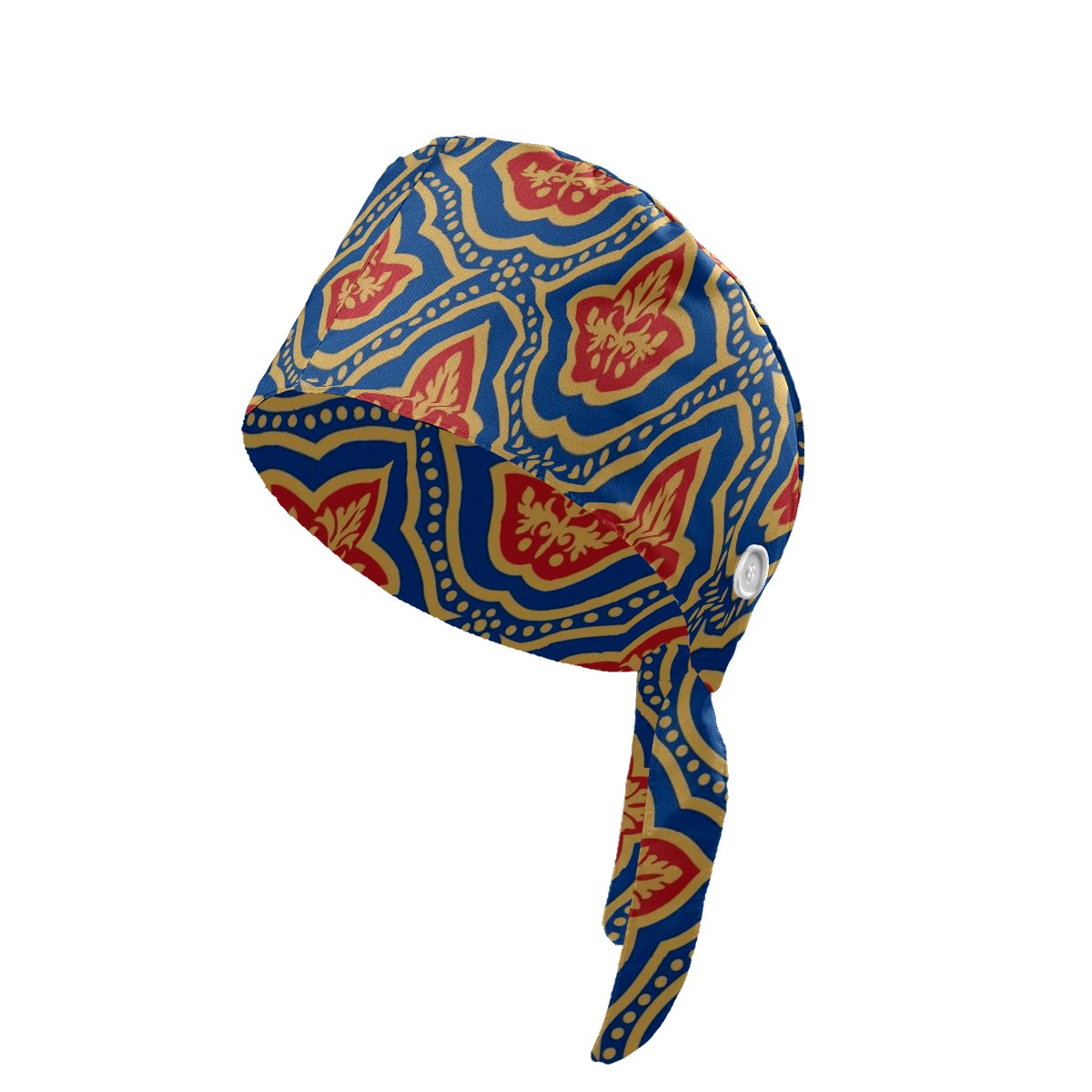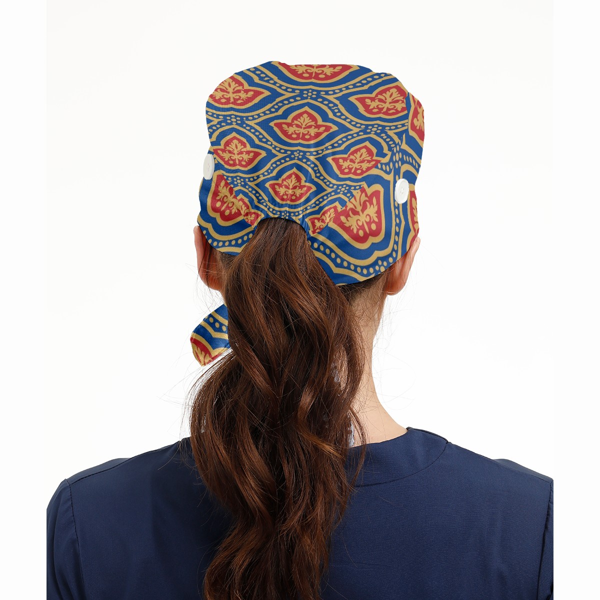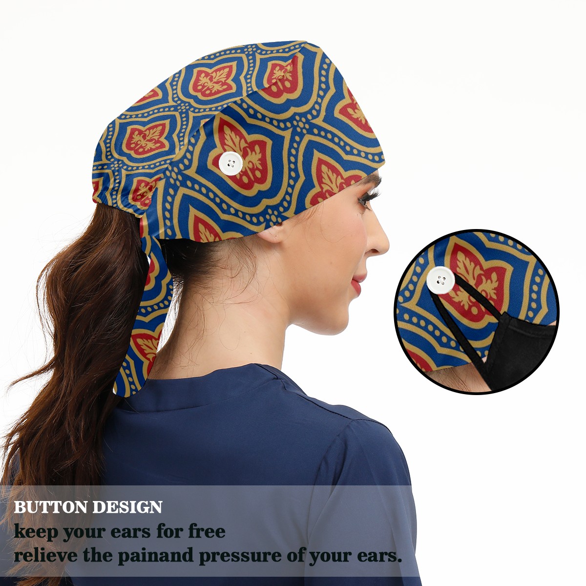 Working Caps with Button & Sweatband Satin Lined Cotton Adjustable Nurse Hats Elastic Band Scrub Cap Surgeon Hat Blue Bohemia