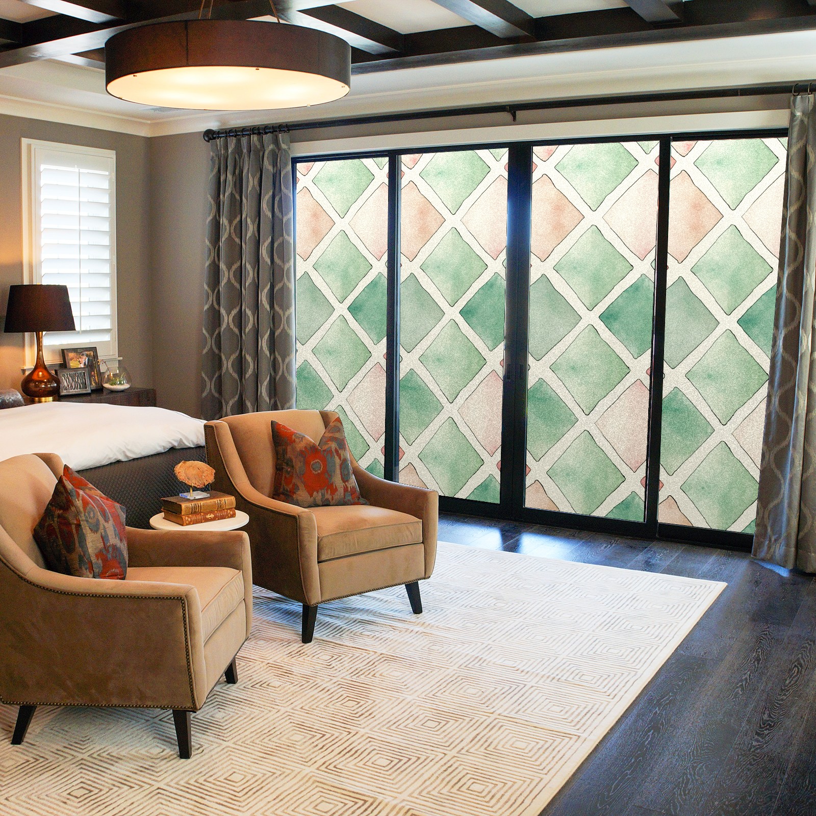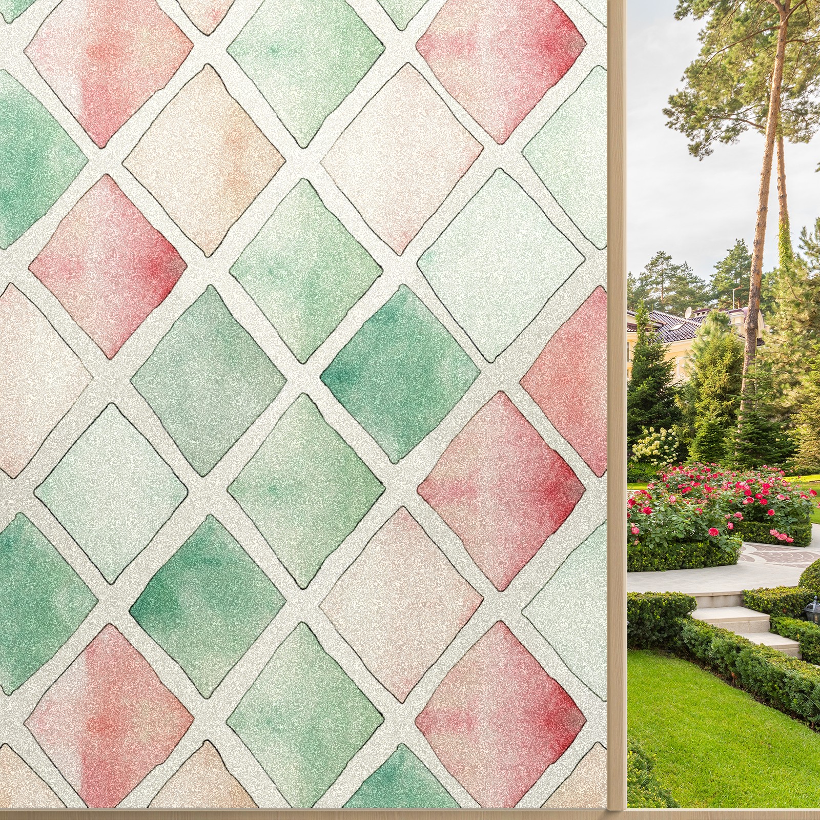 Static Cling Decorative Window Film Frosted Privacy Film Window Clings for Glass Windows No Glue Window Sticker for Bathroom Bedroom Office Lattice Pattern 3