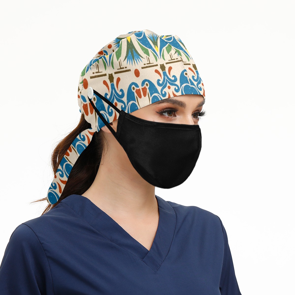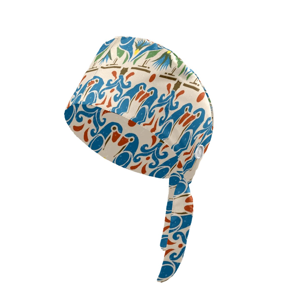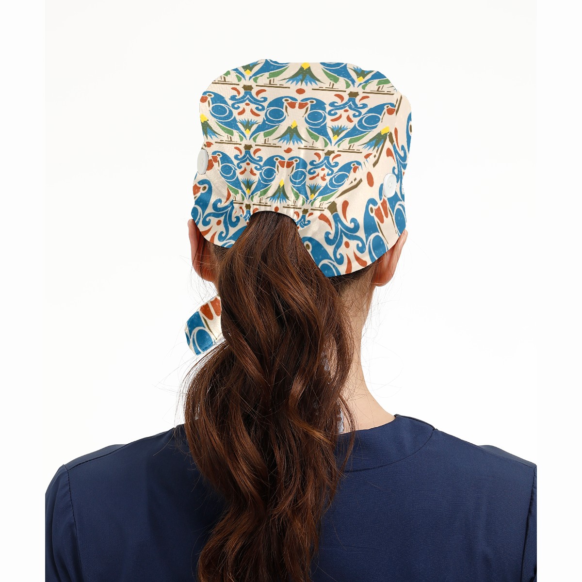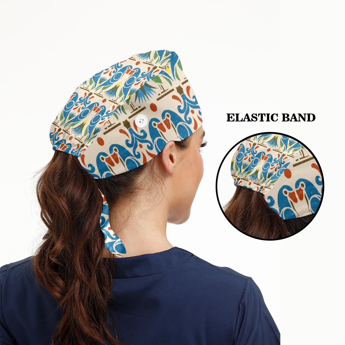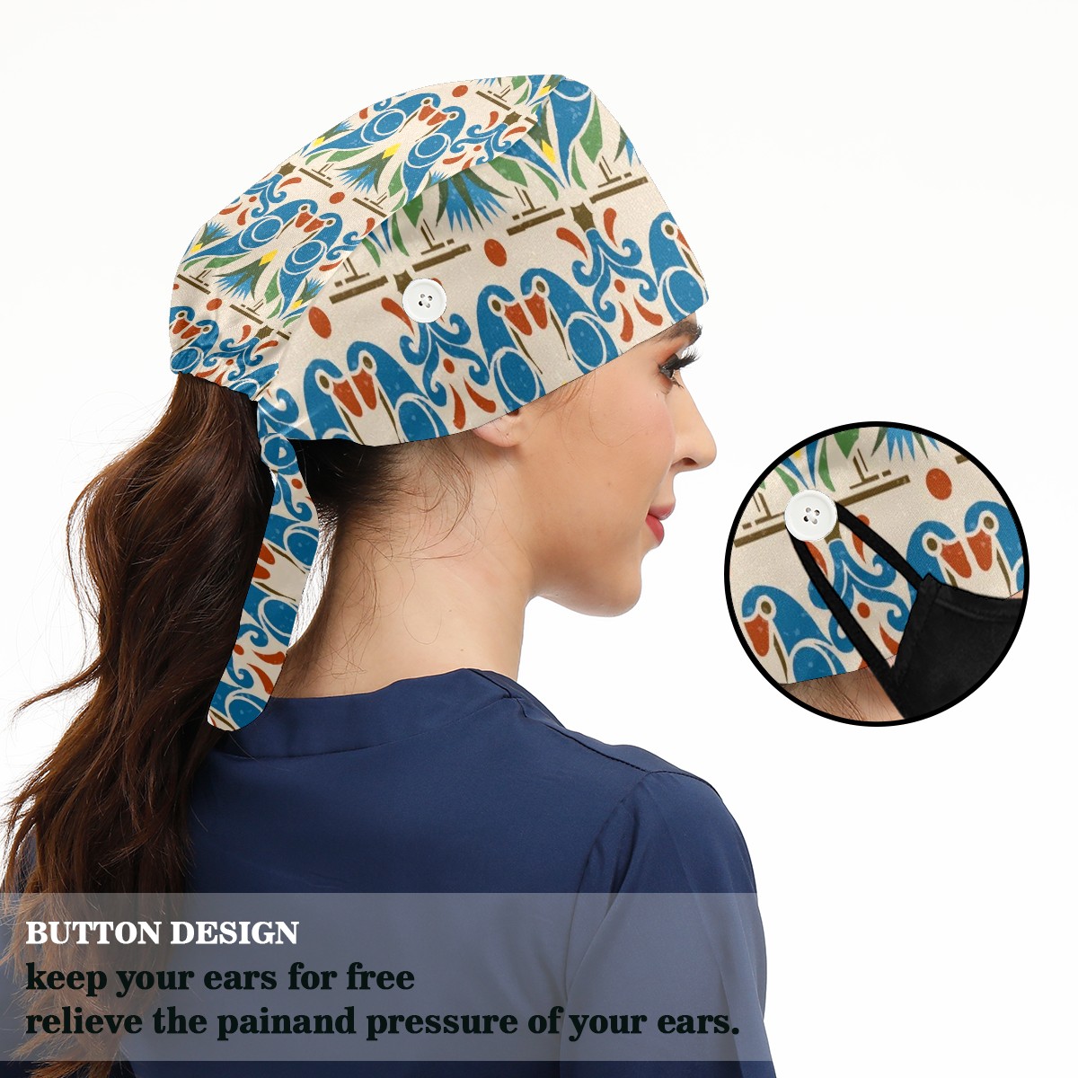 Working Caps with Button & Sweatband Satin Lined Cotton Adjustable Nurse Hats Elastic Band Scrub Cap Surgeon Hat Bird Bohemia