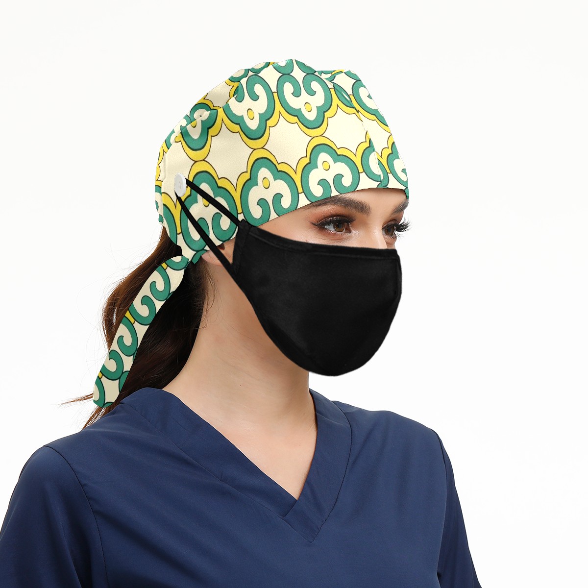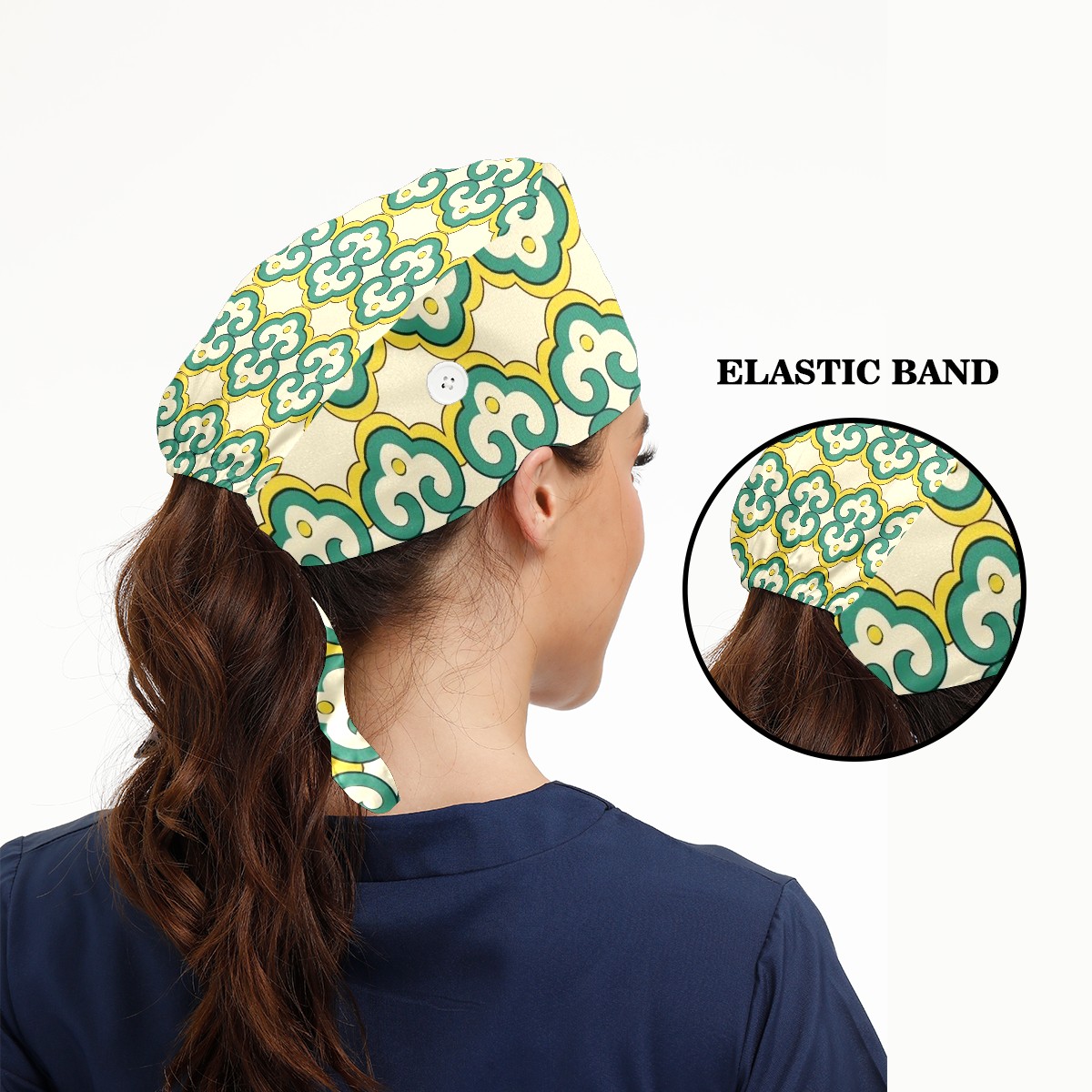 Working Caps with Button & Sweatband Satin Lined Cotton Adjustable Nurse Hats Elastic Band Scrub Cap Surgeon Hat Green Bohemia