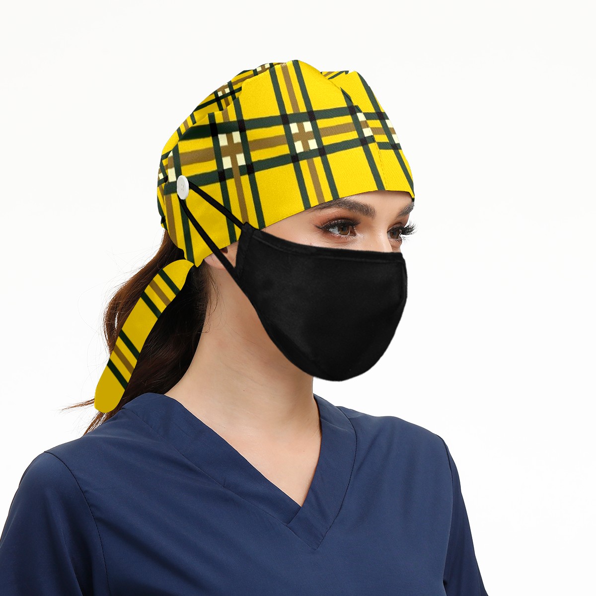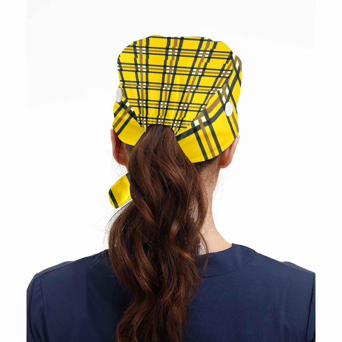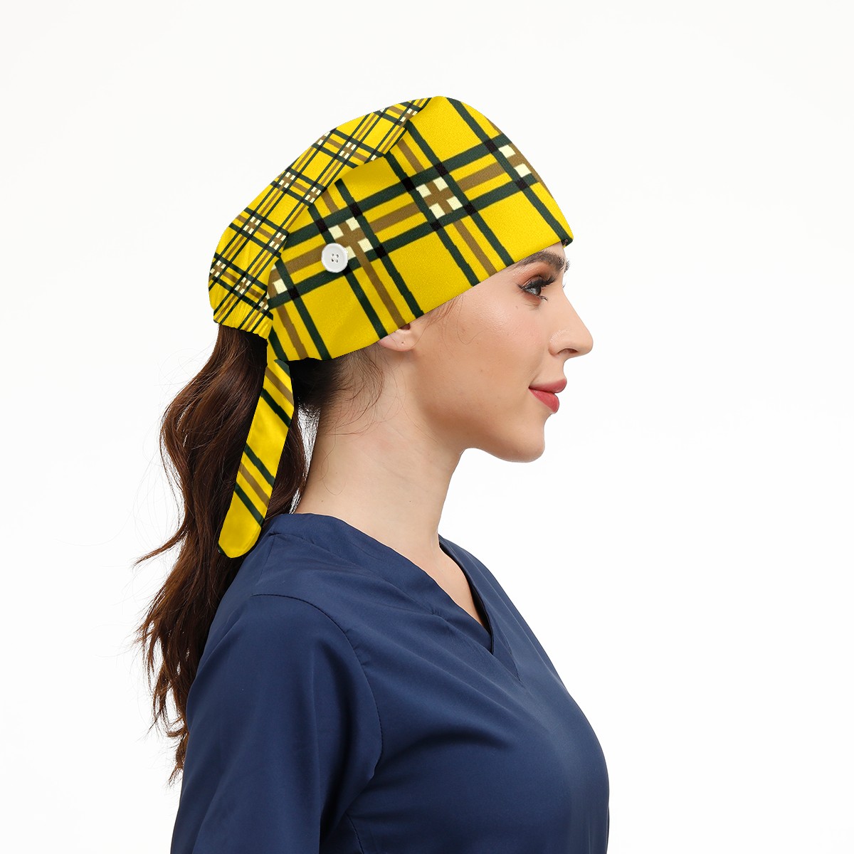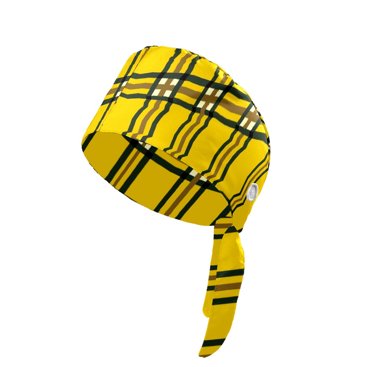 Working Caps with Button & Sweatband Satin Lined Cotton Adjustable Nurse Hats Elastic Band Scrub Cap Surgeon Hat Yellow Lattice
