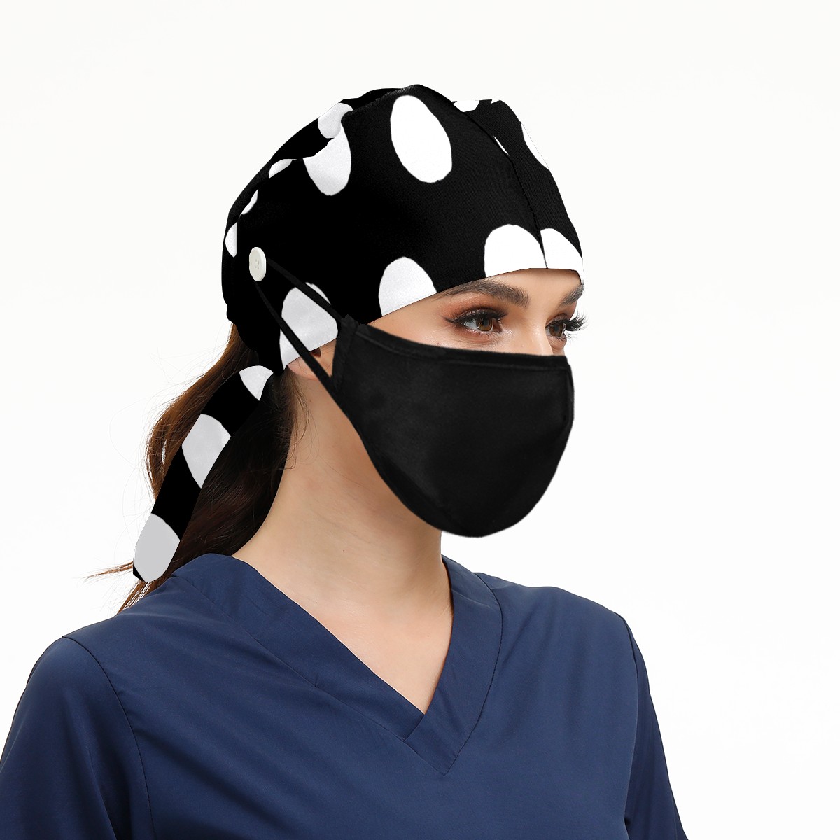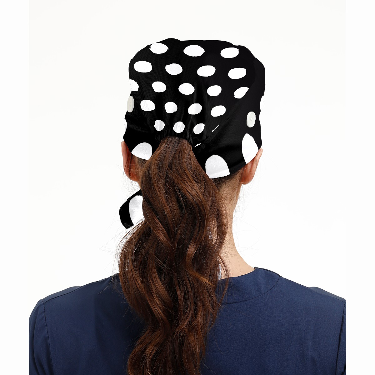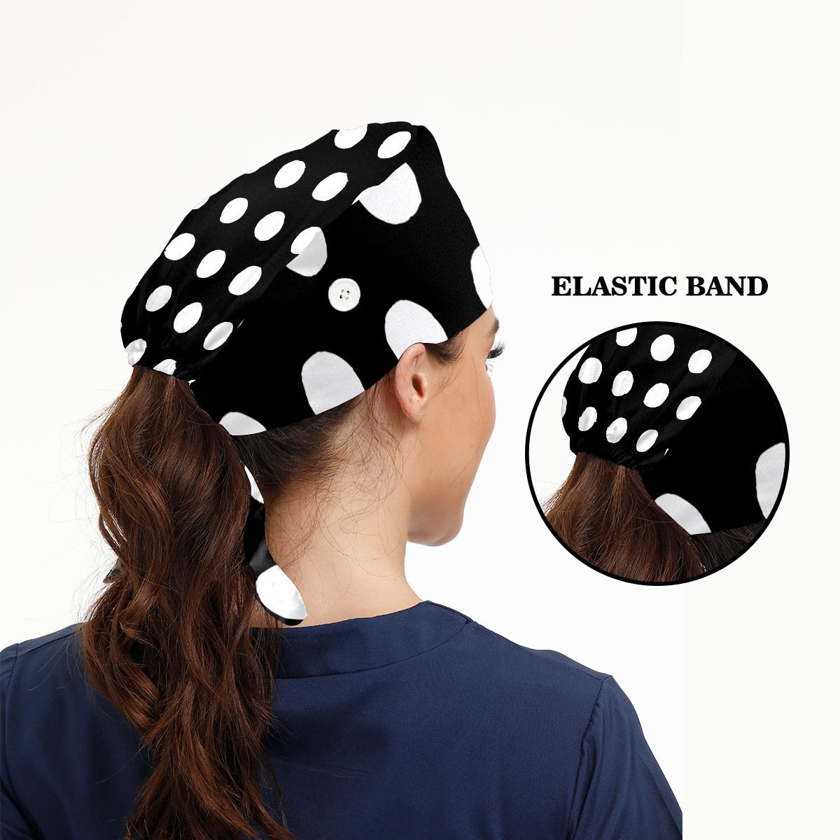 Working Caps with Button & Sweatband Satin Lined Cotton Adjustable Nurse Hats Elastic Band Scrub Cap Surgeon Hat Black White Speckle
