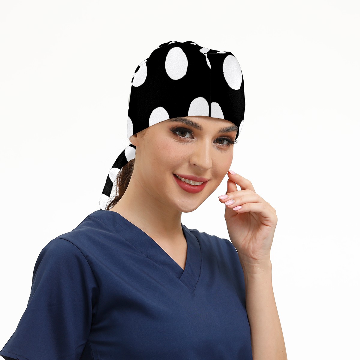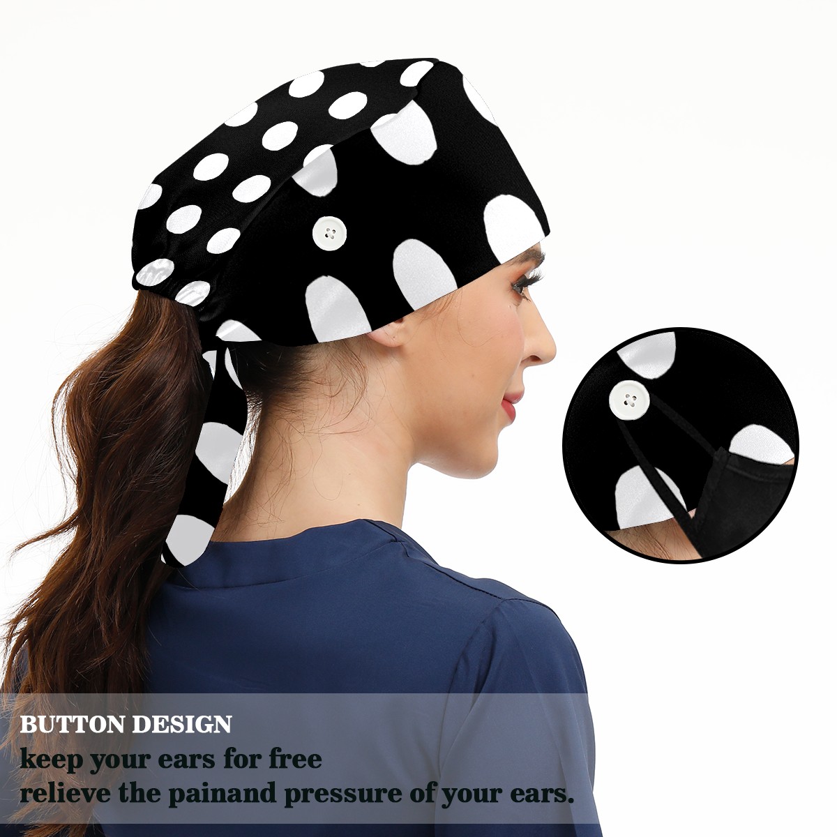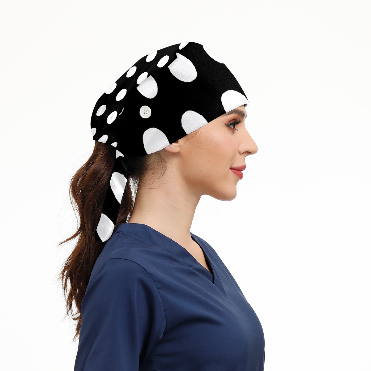 Working Caps with Button & Sweatband Satin Lined Cotton Adjustable Nurse Hats Elastic Band Scrub Cap Surgeon Hat Black White Speckle