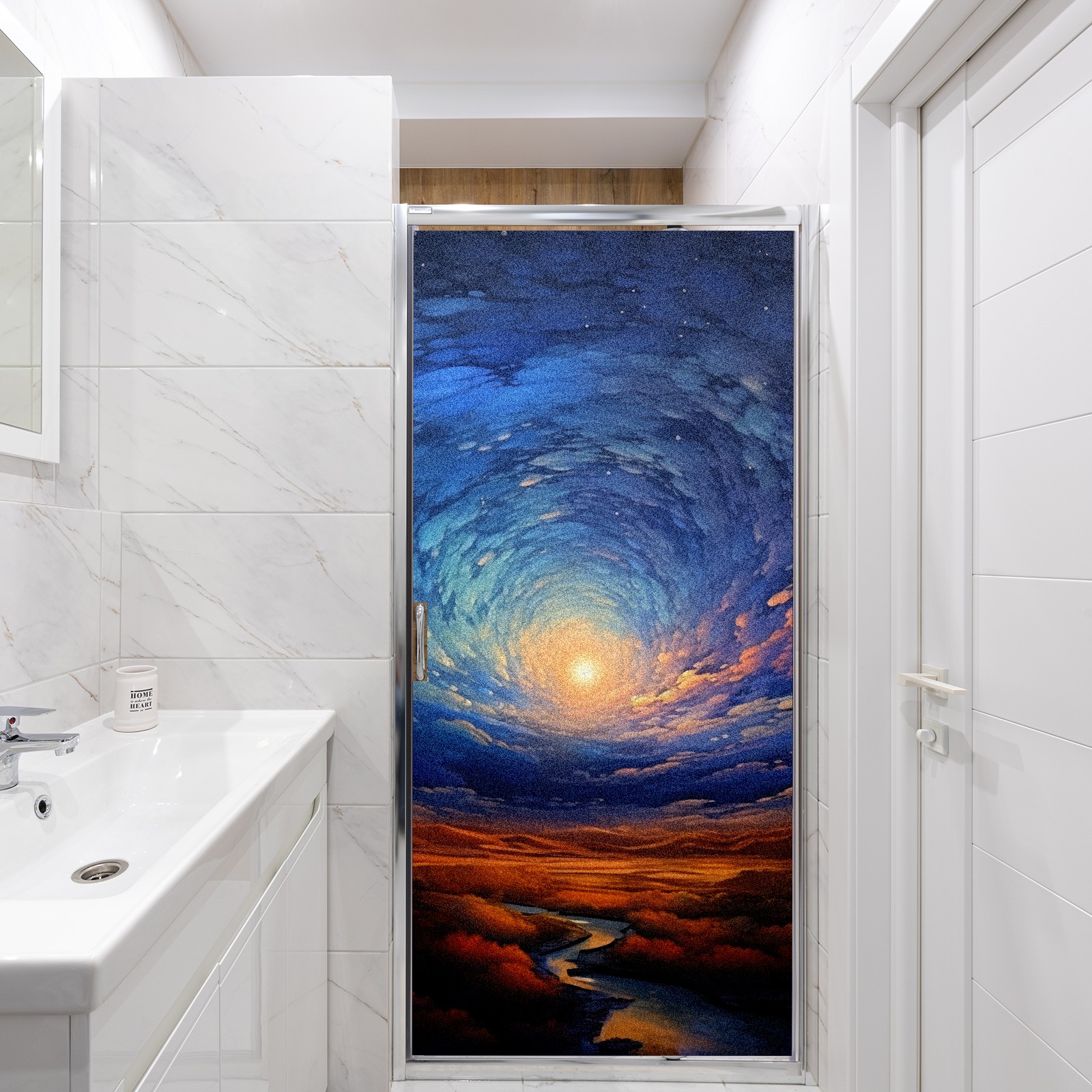 Static Cling Decorative Window Film Frosted Privacy Film Window Clings for Glass Windows No Glue Window Sticker for Bathroom Bedroom Office A Fantastical Sky 3