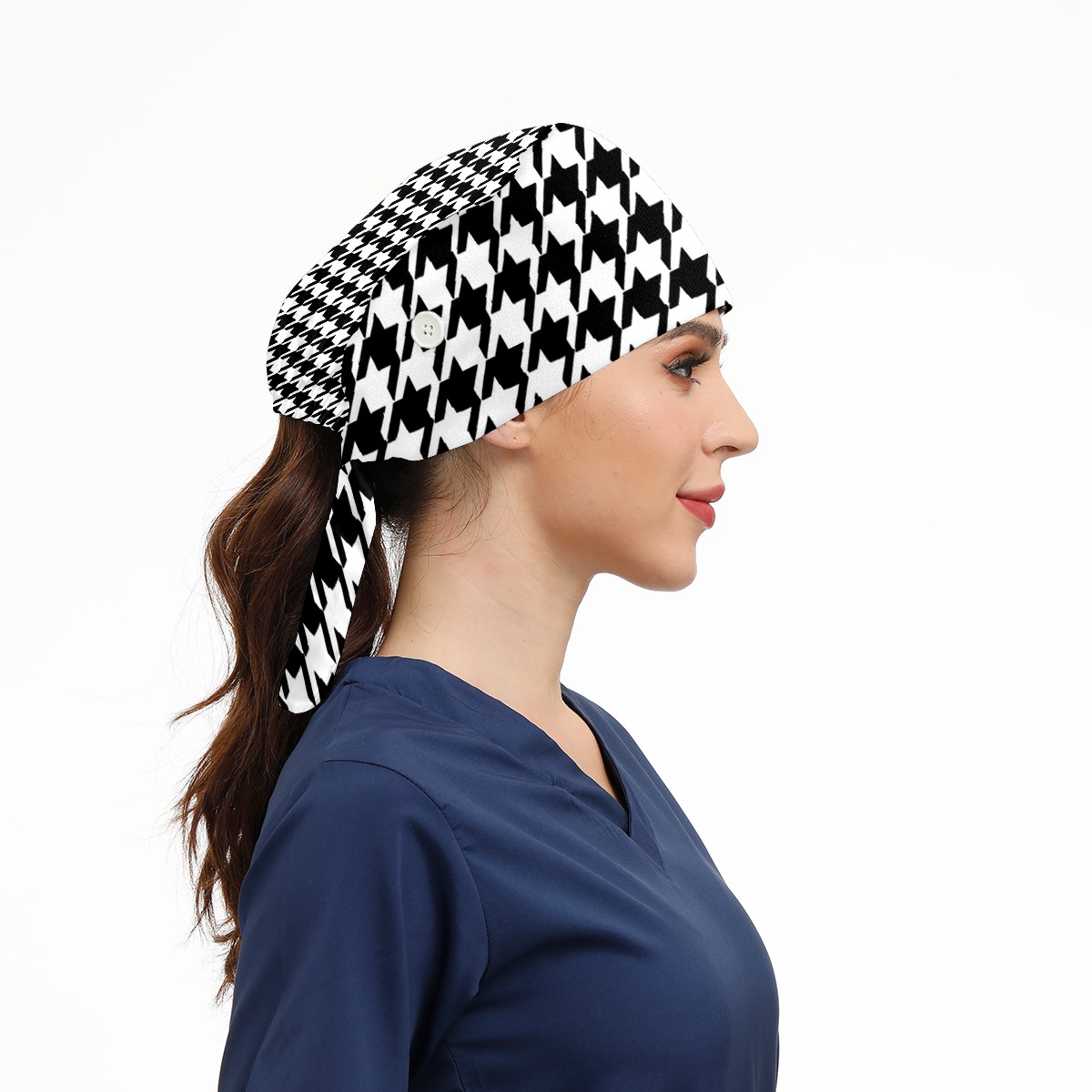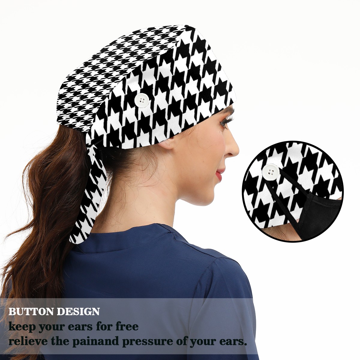 Working Caps with Button & Sweatband Satin Lined Cotton Adjustable Nurse Hats Elastic Band Scrub Cap Surgeon Hat Black White Lattice