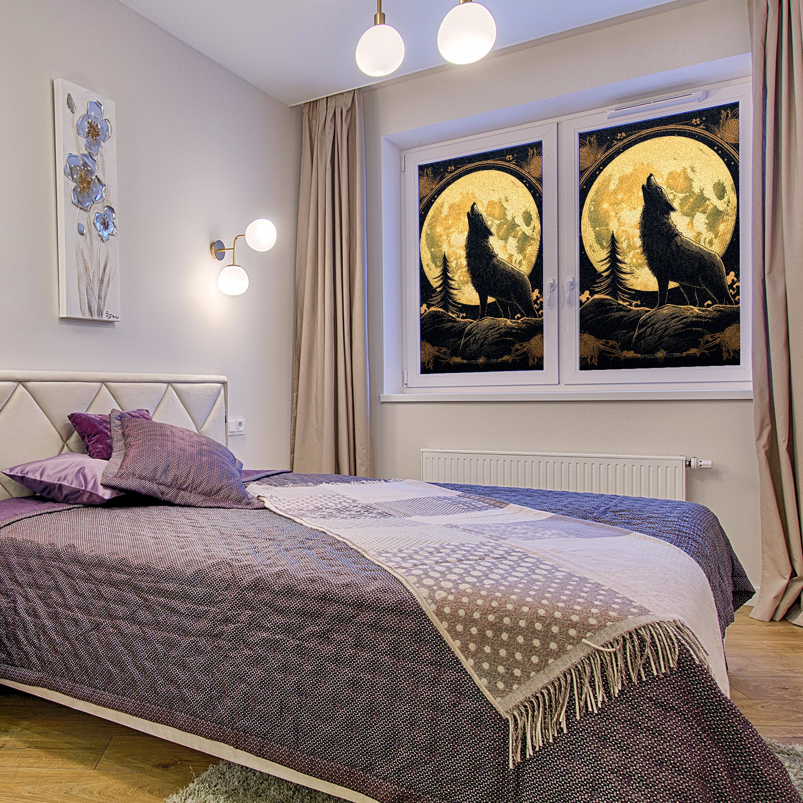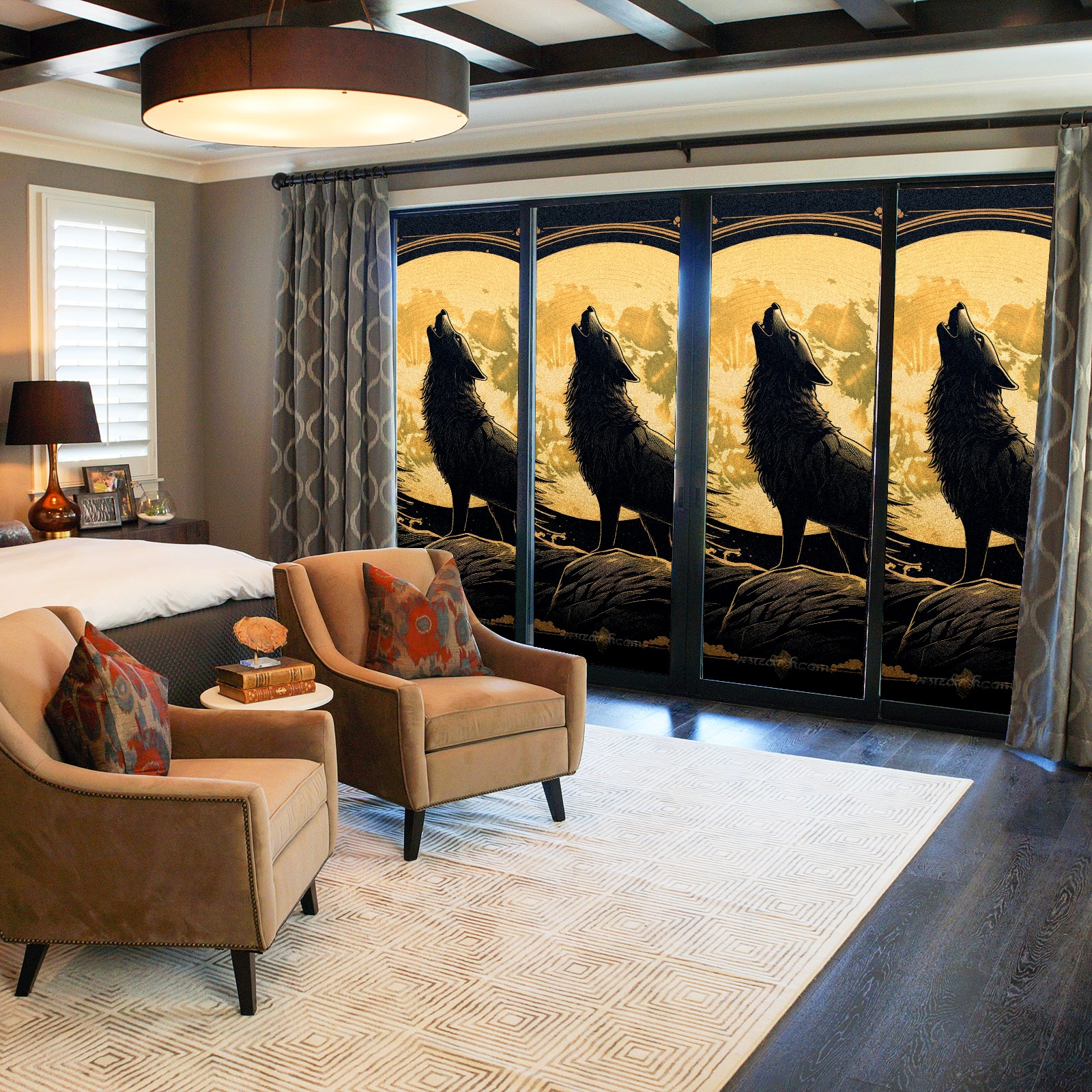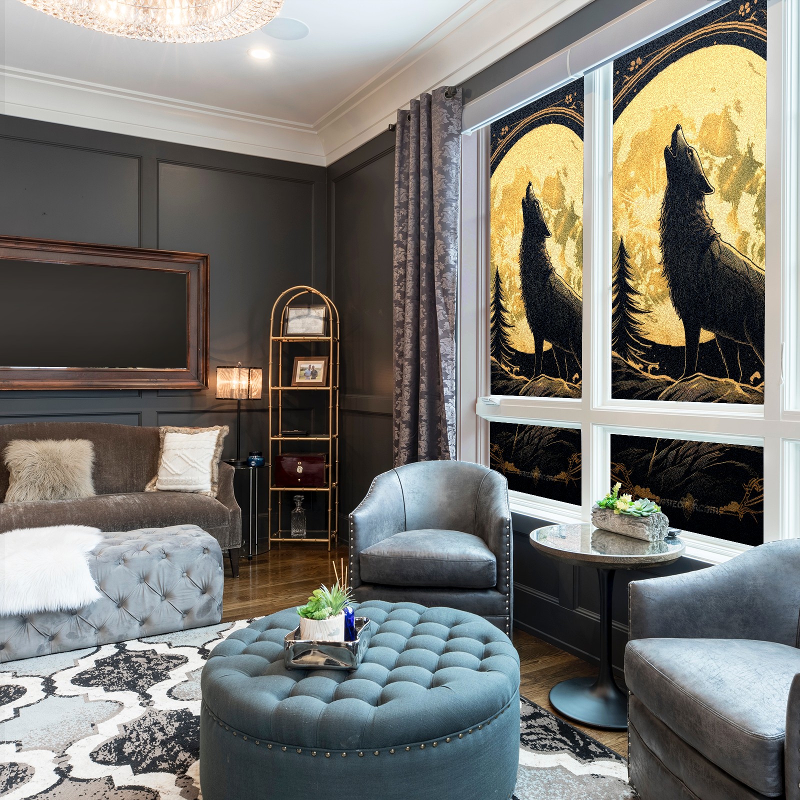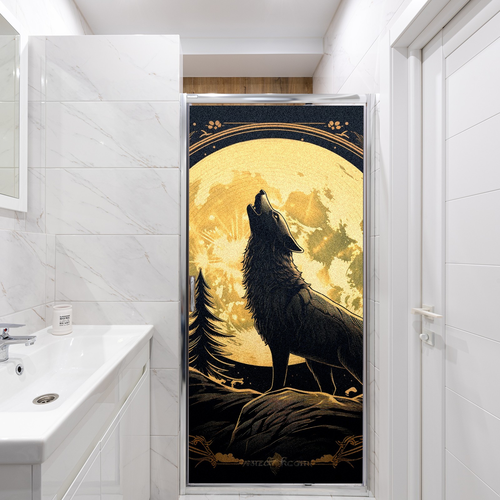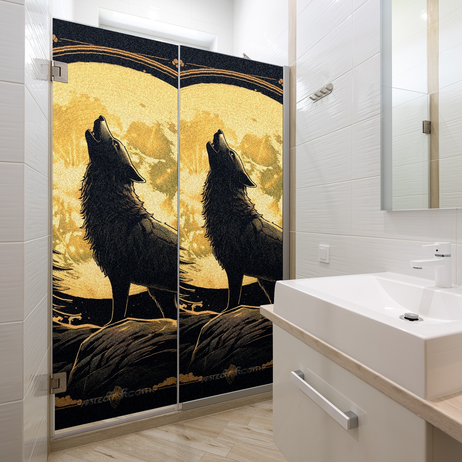 Static Cling Decorative Window Film Frosted Privacy Film Window Clings for Glass Windows No Glue Window Sticker for Bathroom Bedroom Office Wolf