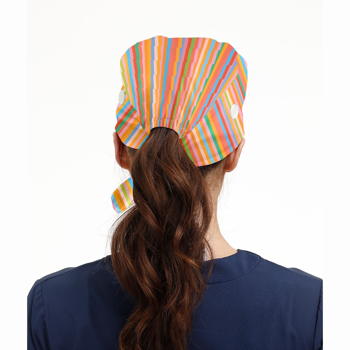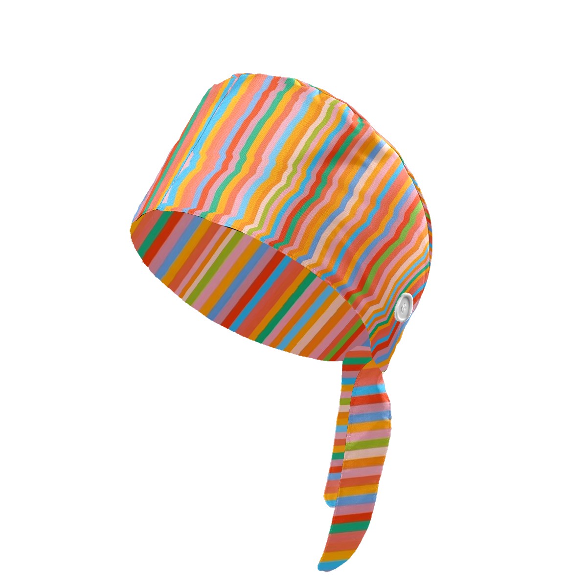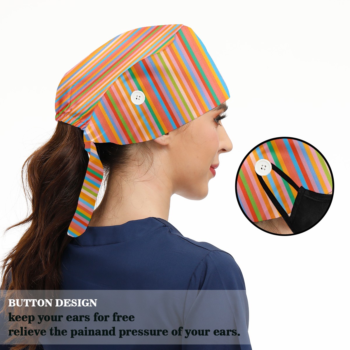 Working Caps with Button & Sweatband Satin Lined Cotton Adjustable Nurse Hats Elastic Band Scrub Cap Surgeon Hat Colored Lines