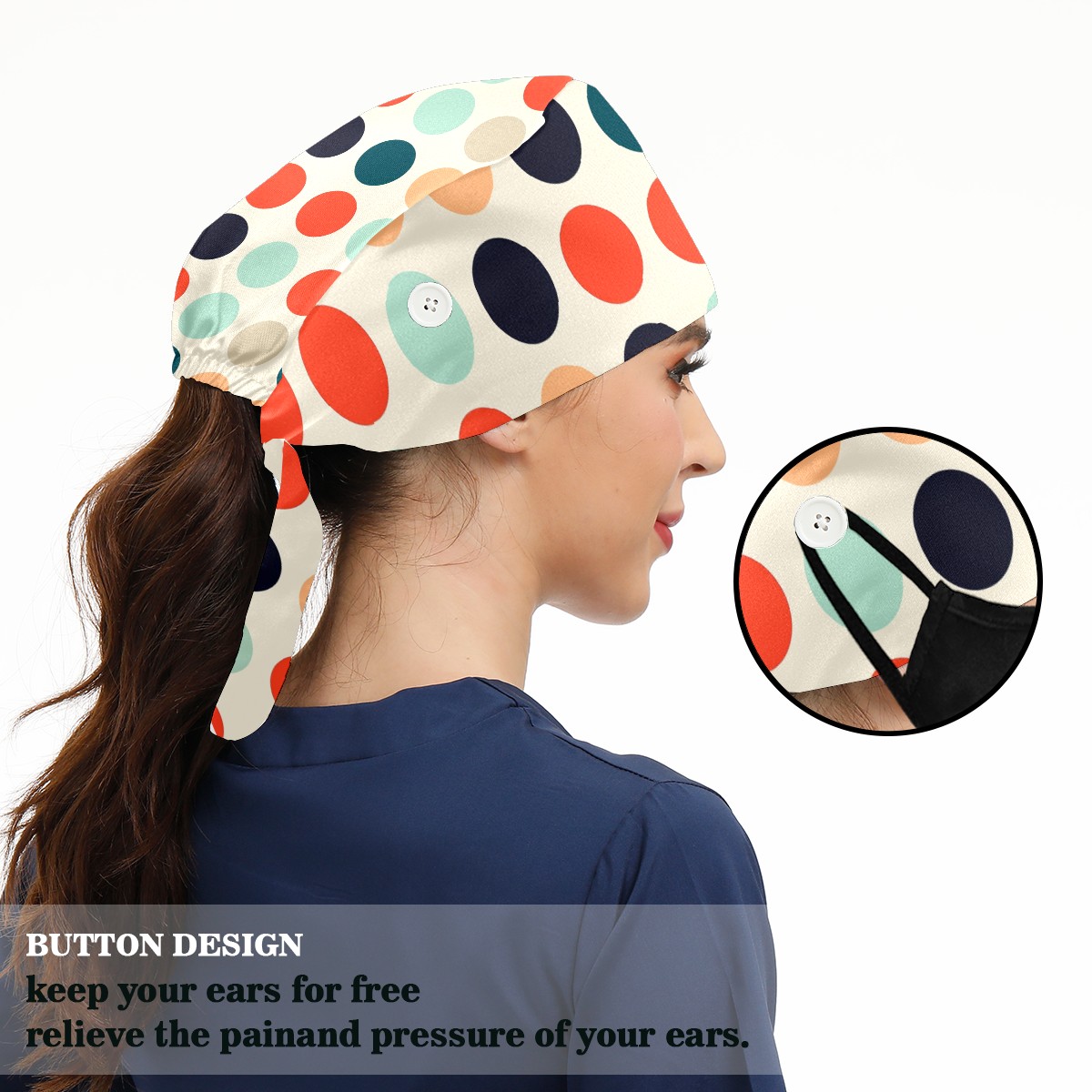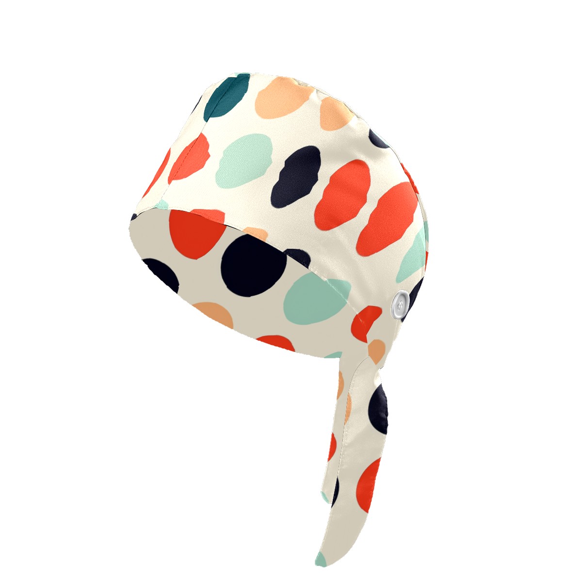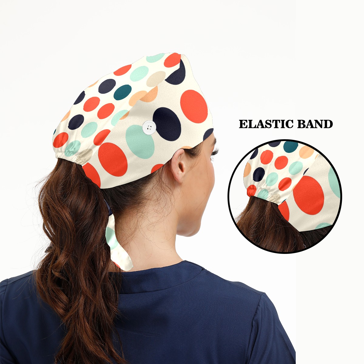 Working Caps with Button & Sweatband Satin Lined Cotton Adjustable Nurse Hats Elastic Band Scrub Cap Surgeon Hat Multicolored Dots