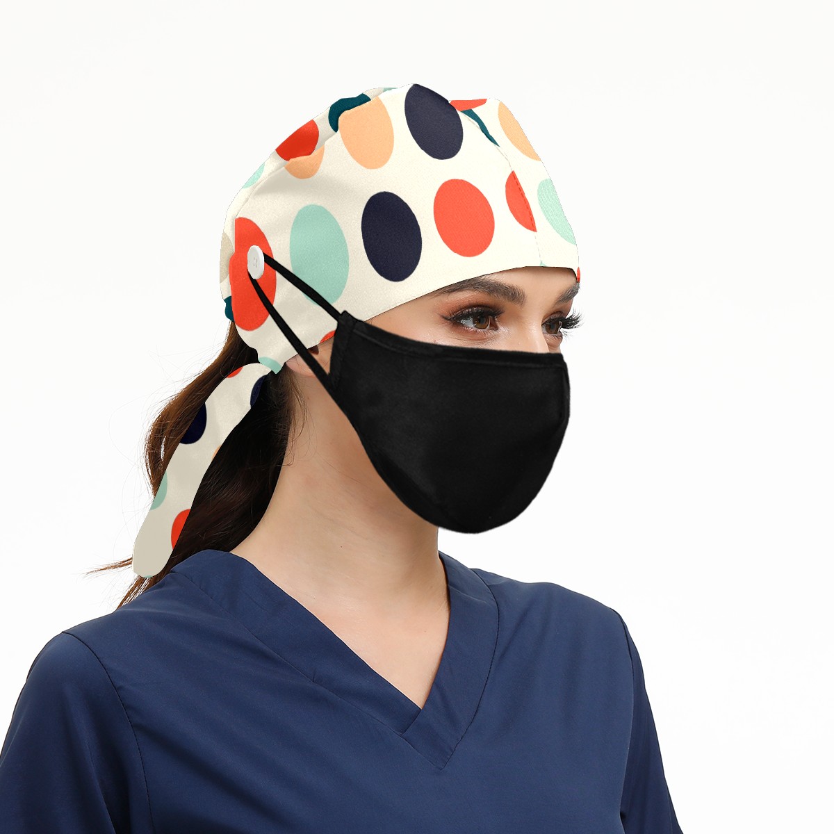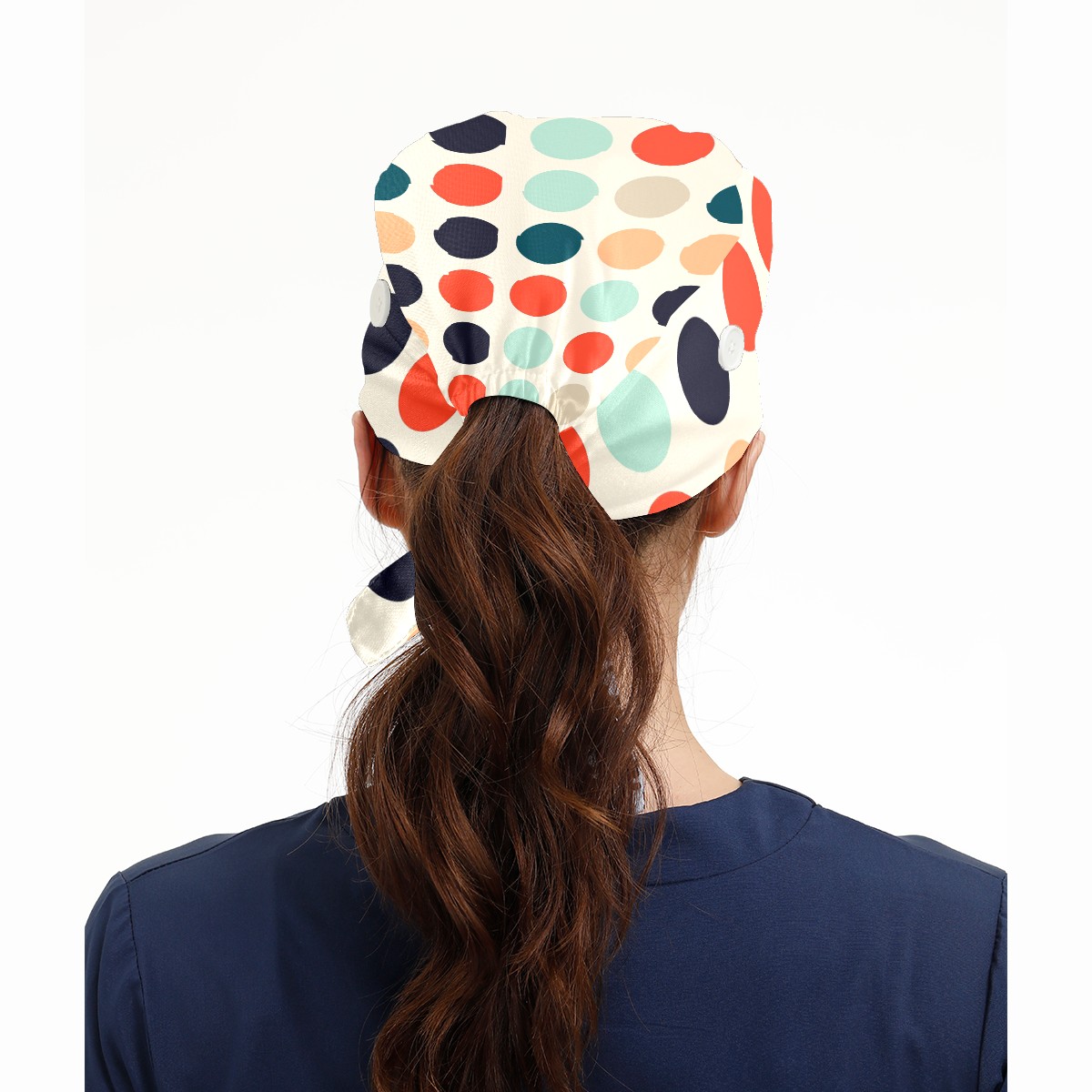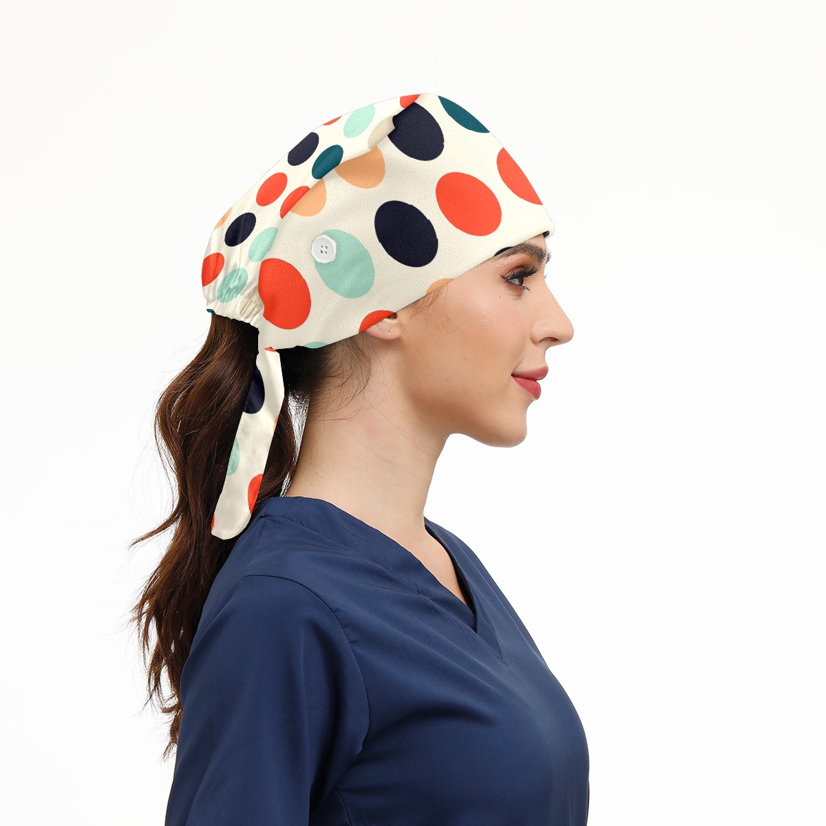 Working Caps with Button & Sweatband Satin Lined Cotton Adjustable Nurse Hats Elastic Band Scrub Cap Surgeon Hat Multicolored Dots