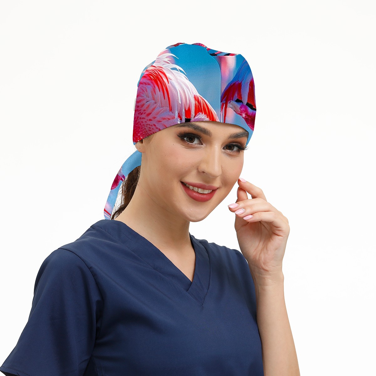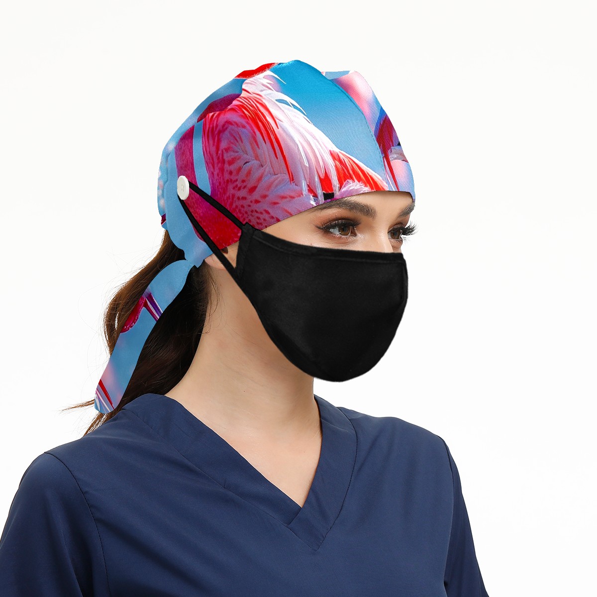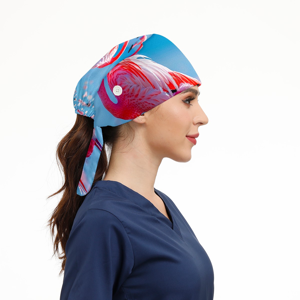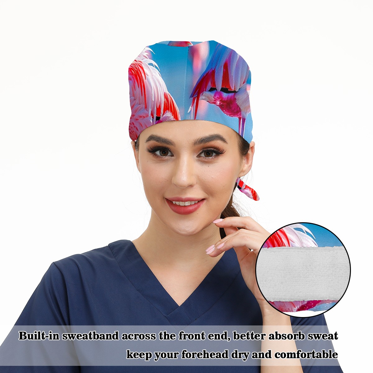 Working Caps with Button & Sweatband Satin Lined Cotton Adjustable Nurse Hats Elastic Band Scrub Cap Surgeon Hat Water Bird (3)