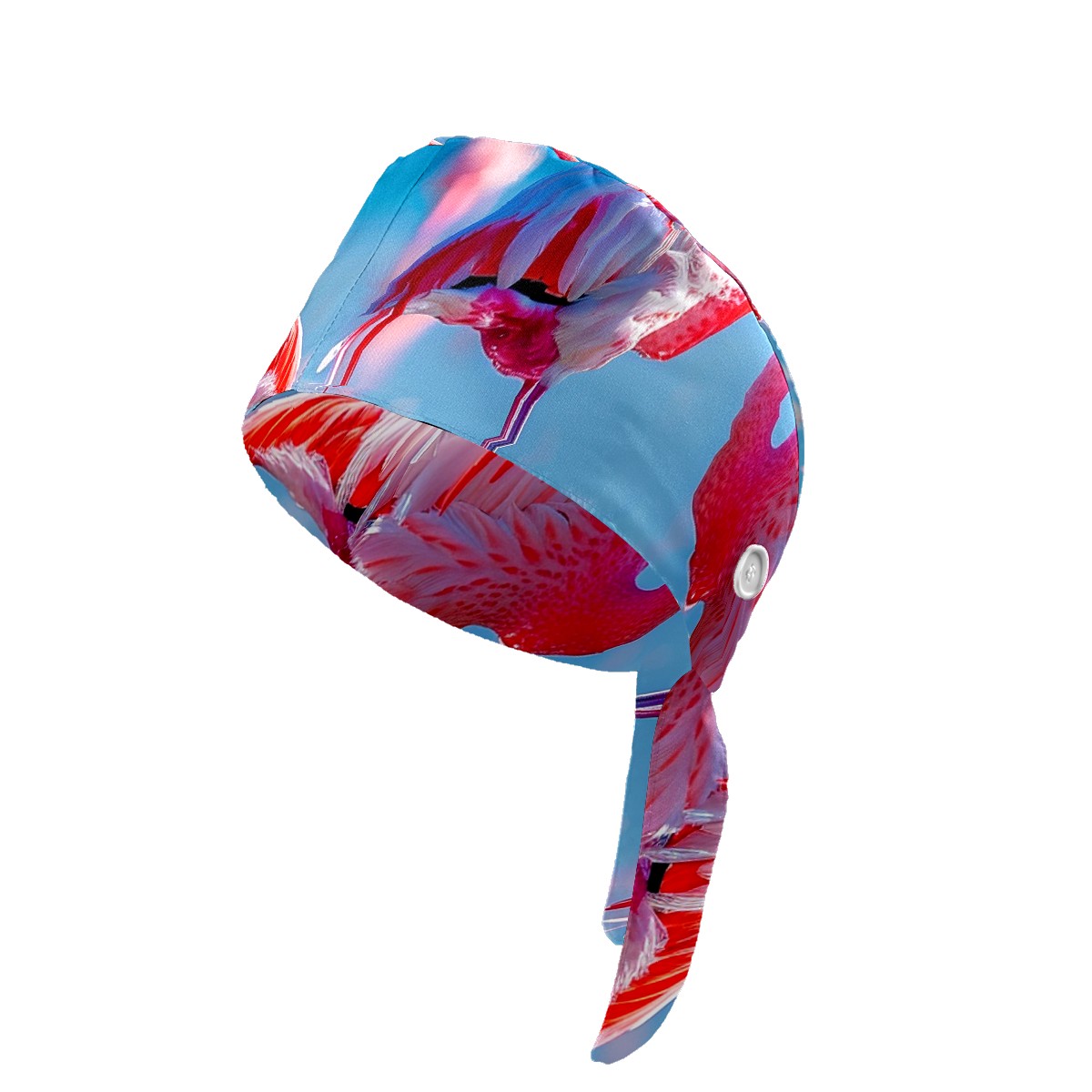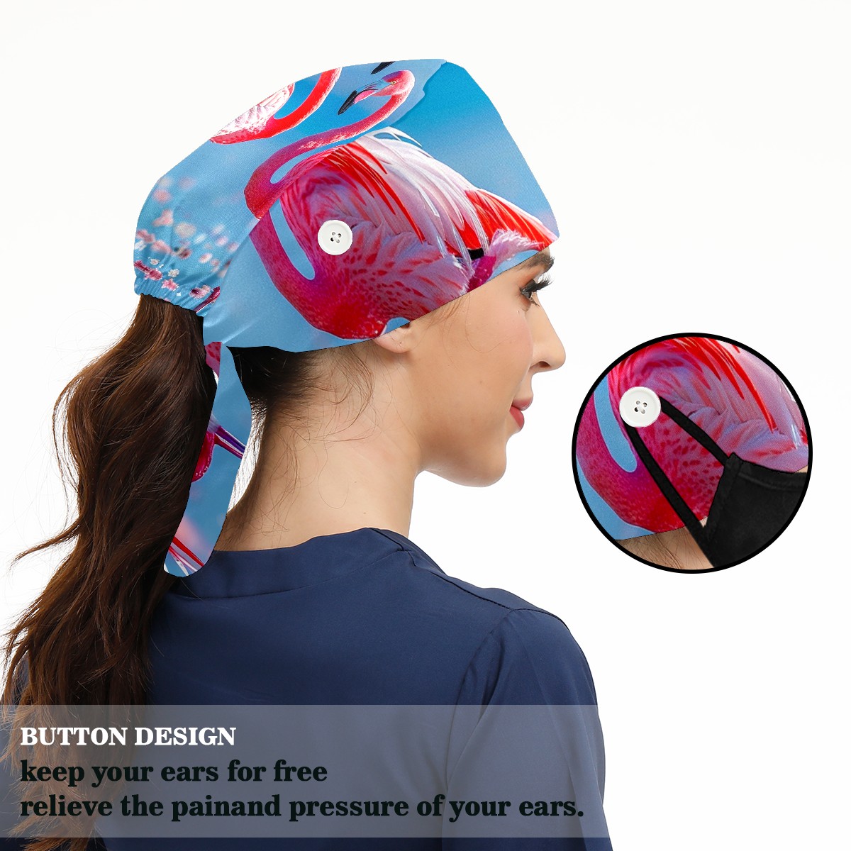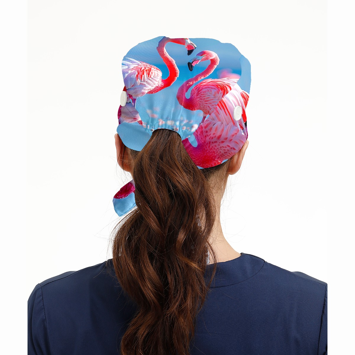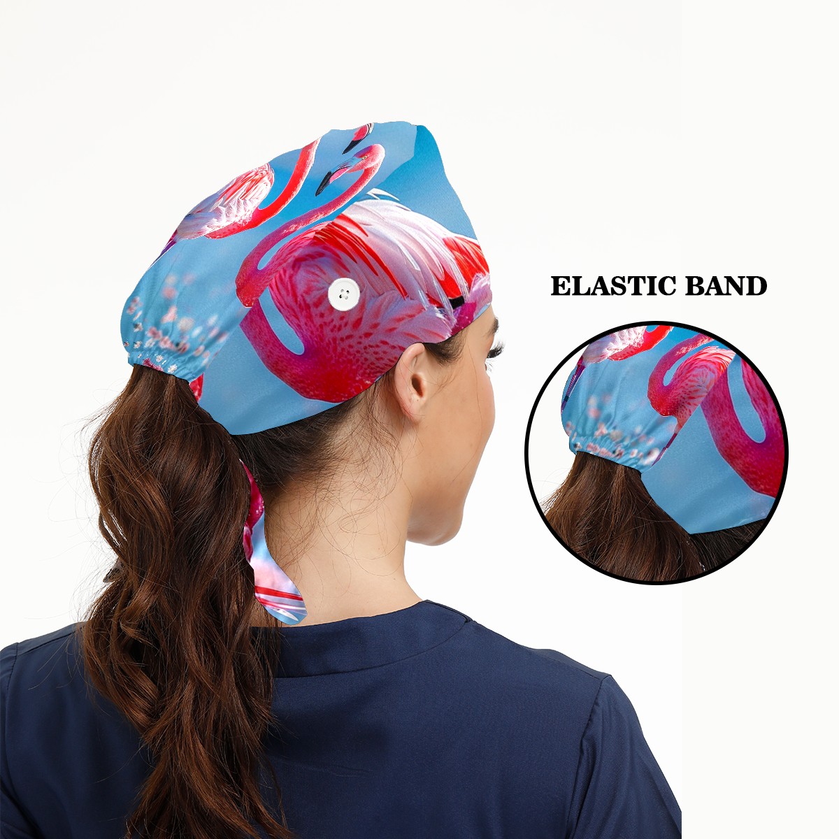 Working Caps with Button & Sweatband Satin Lined Cotton Adjustable Nurse Hats Elastic Band Scrub Cap Surgeon Hat Water Bird (3)