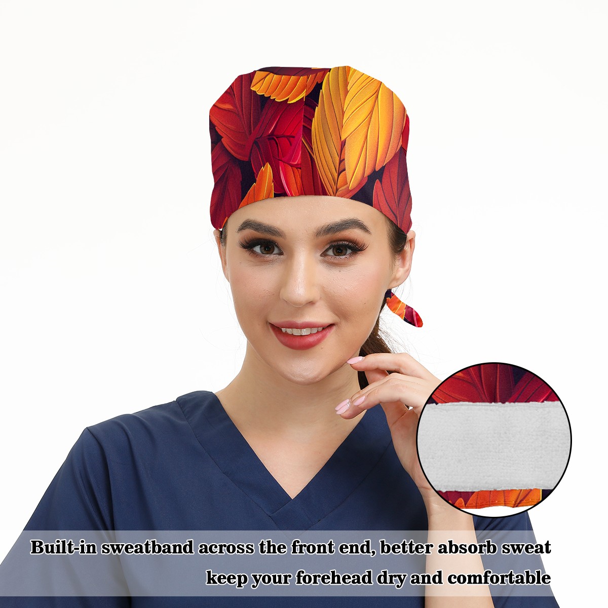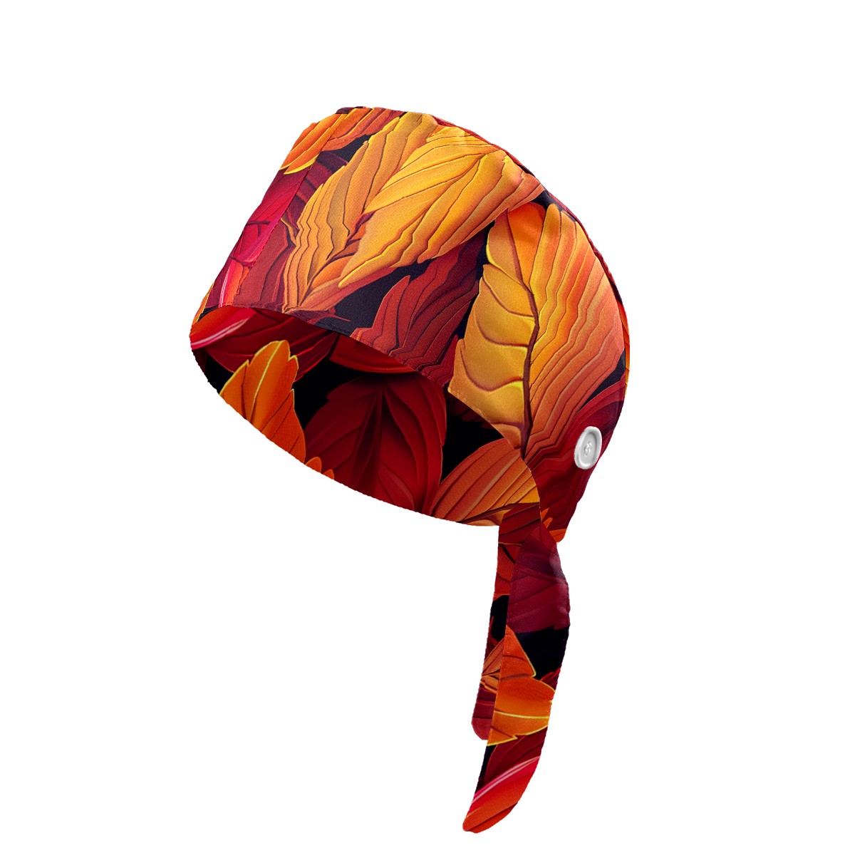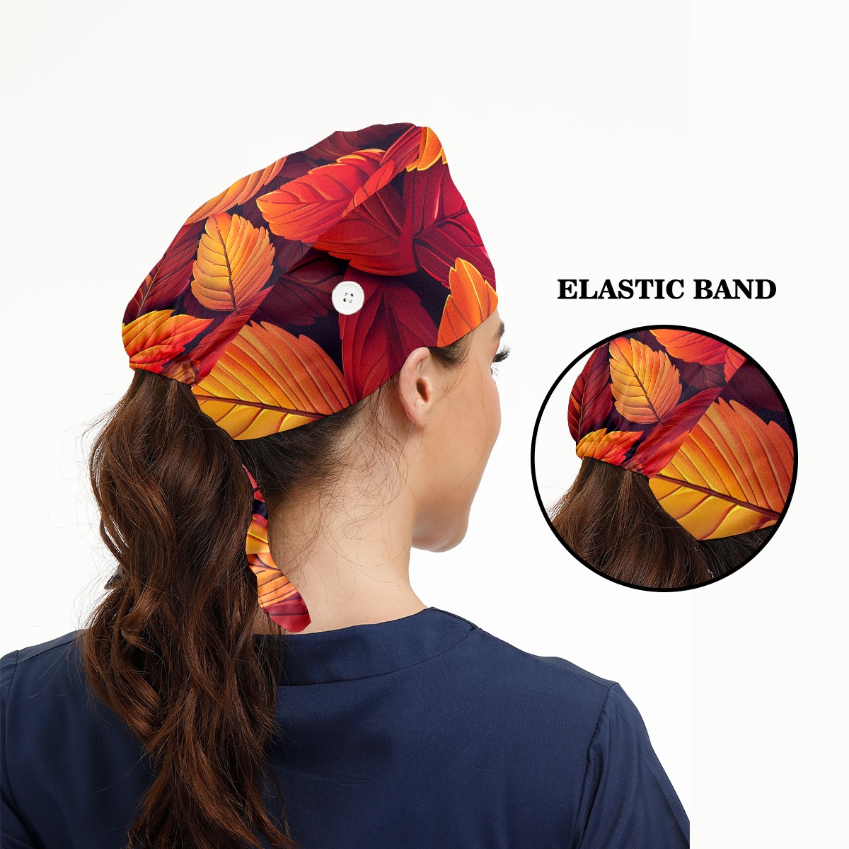 Working Caps with Button & Sweatband Satin Lined Cotton Adjustable Nurse Hats Elastic Band Scrub Cap Surgeon Hat AutumnLeaves