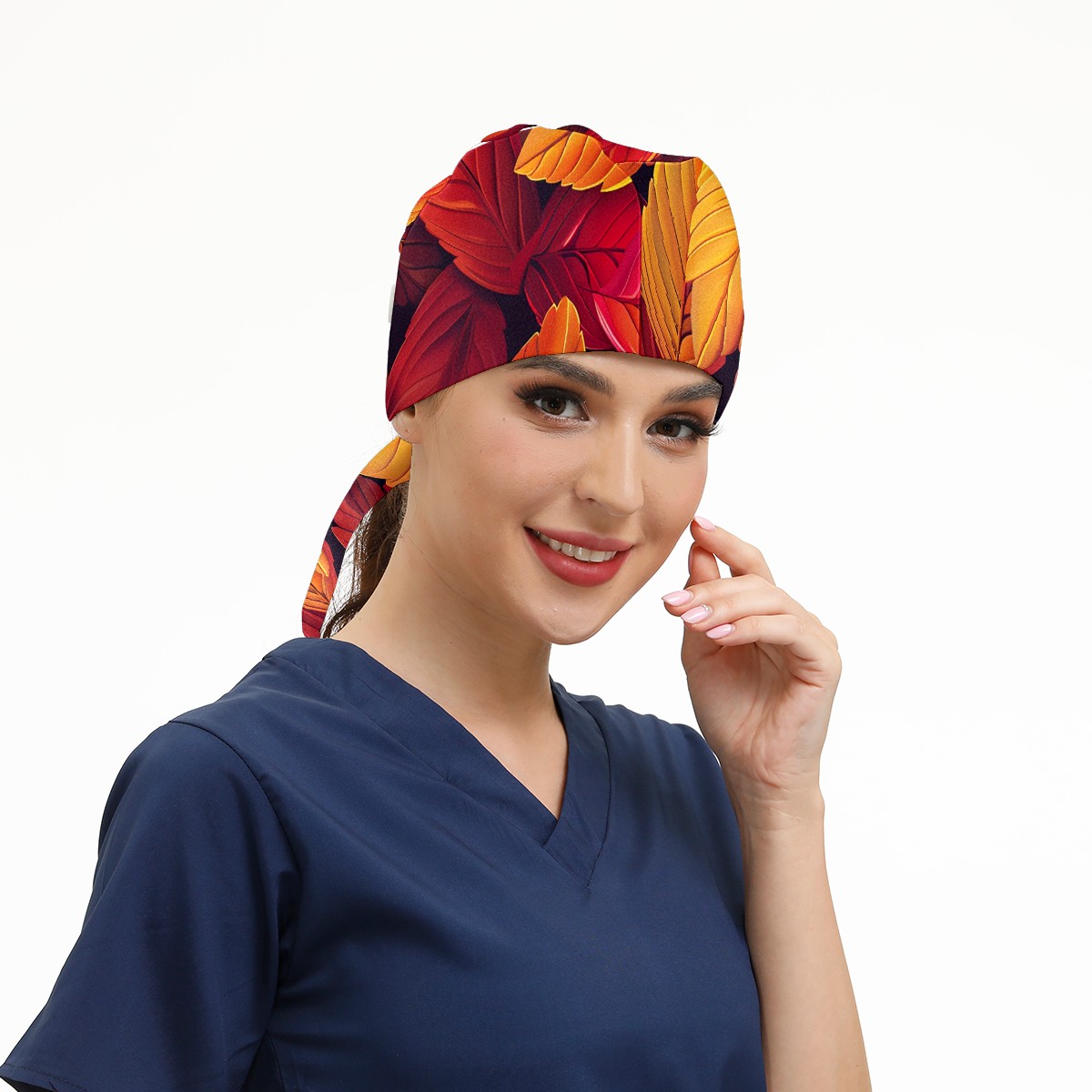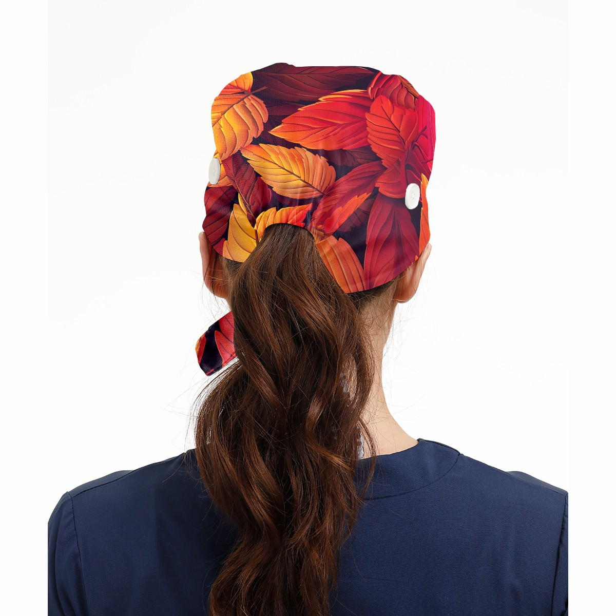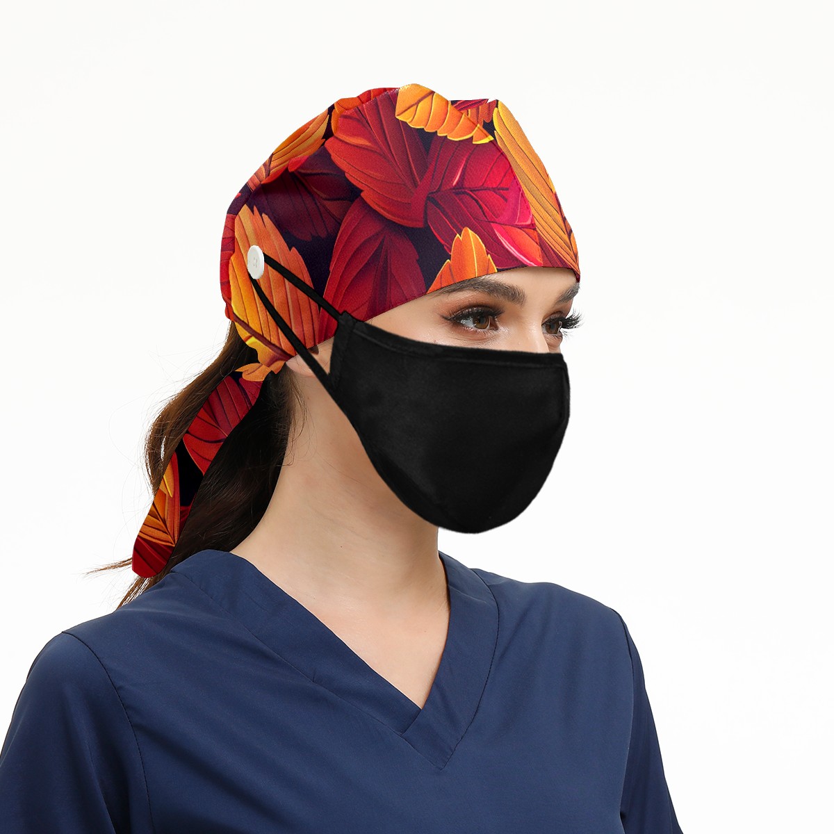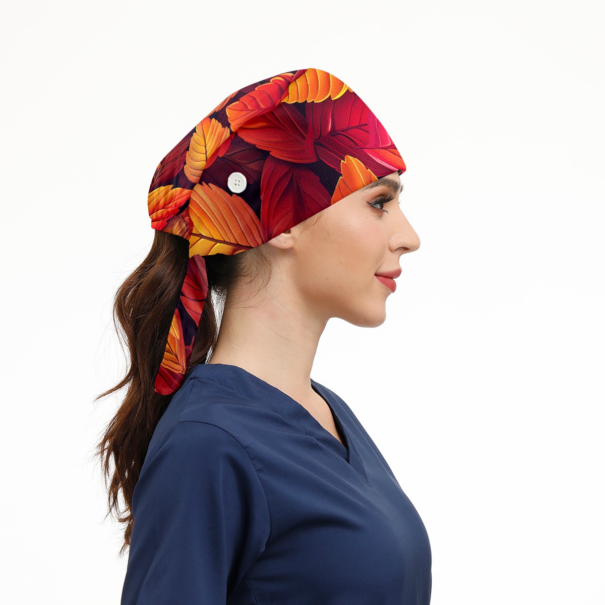 Working Caps with Button & Sweatband Satin Lined Cotton Adjustable Nurse Hats Elastic Band Scrub Cap Surgeon Hat AutumnLeaves