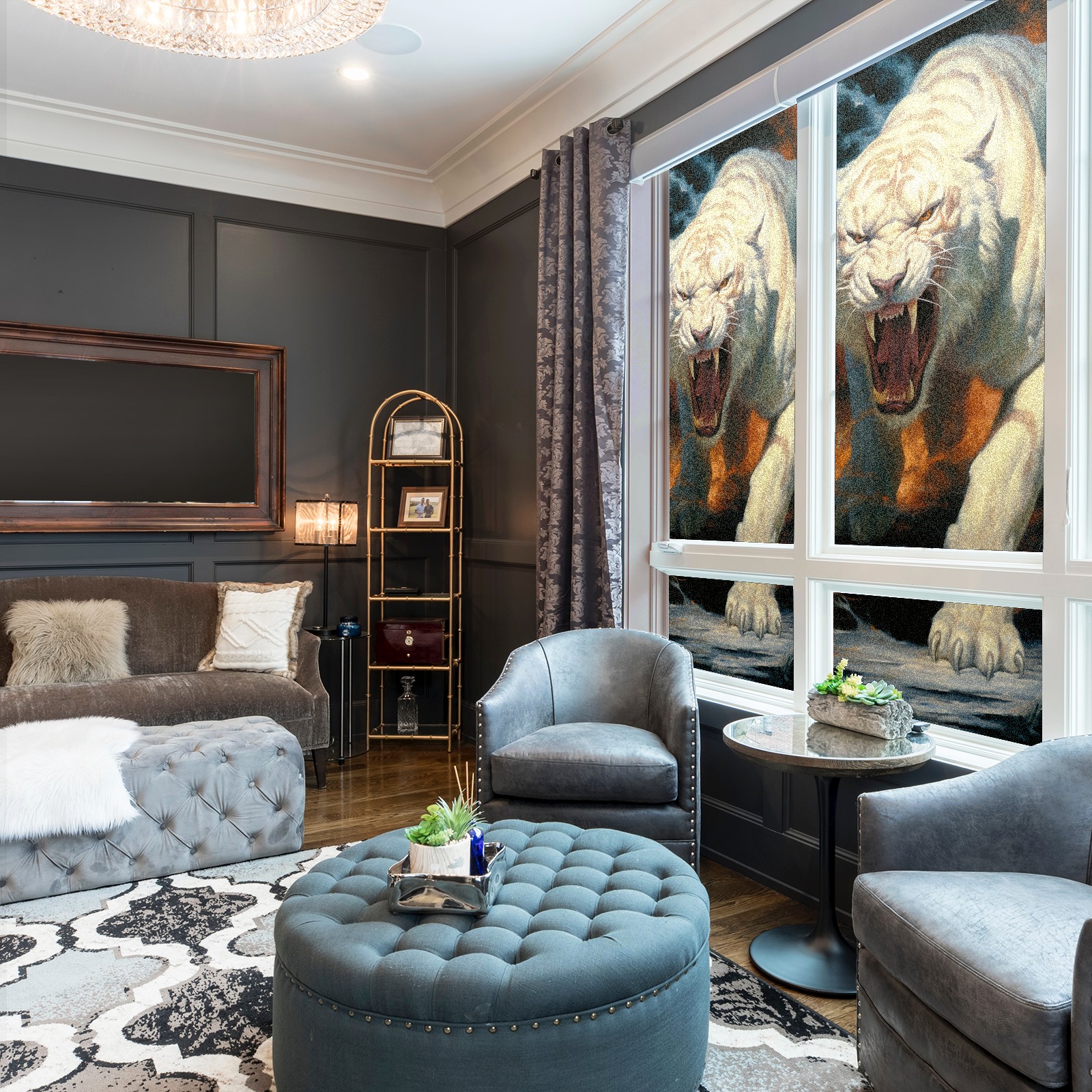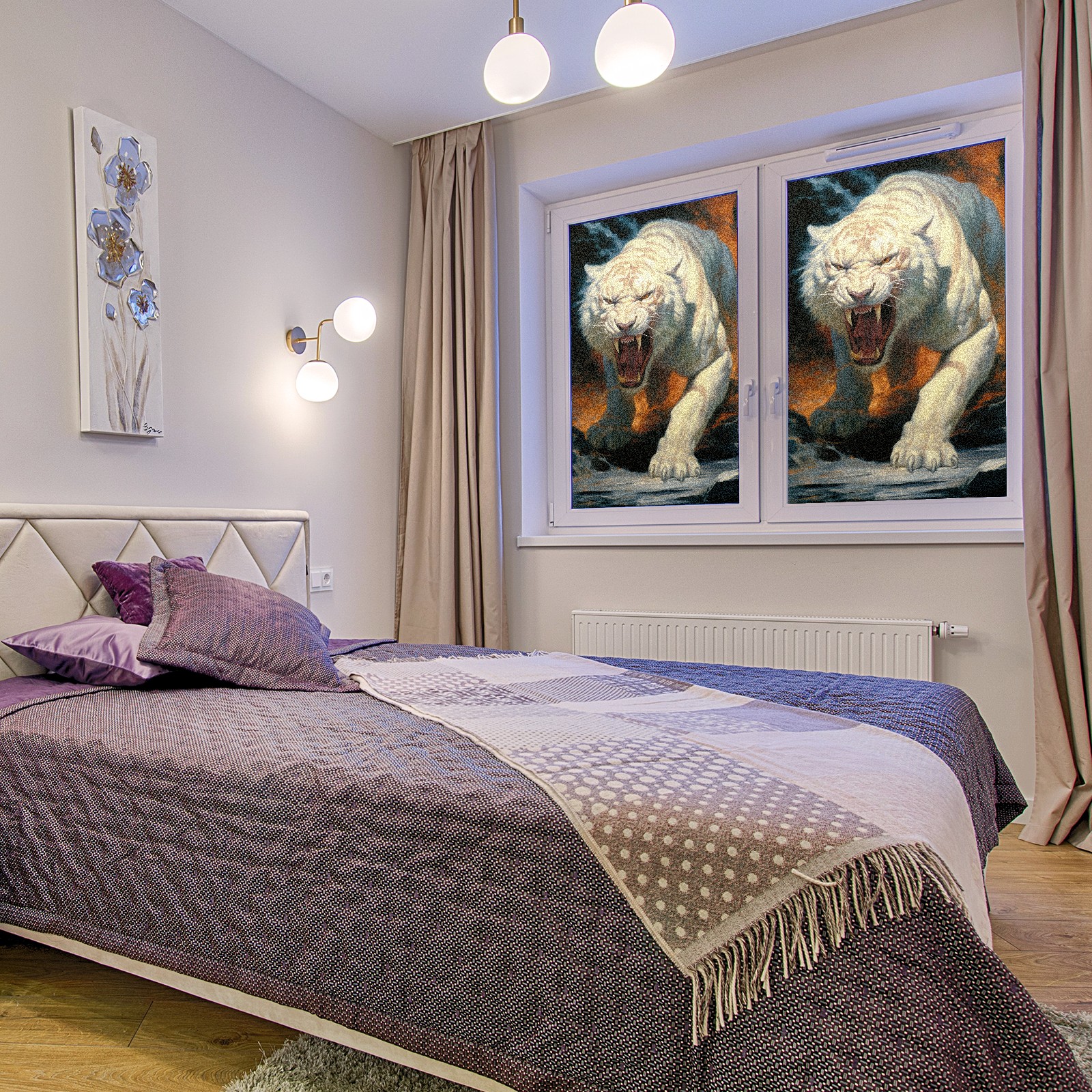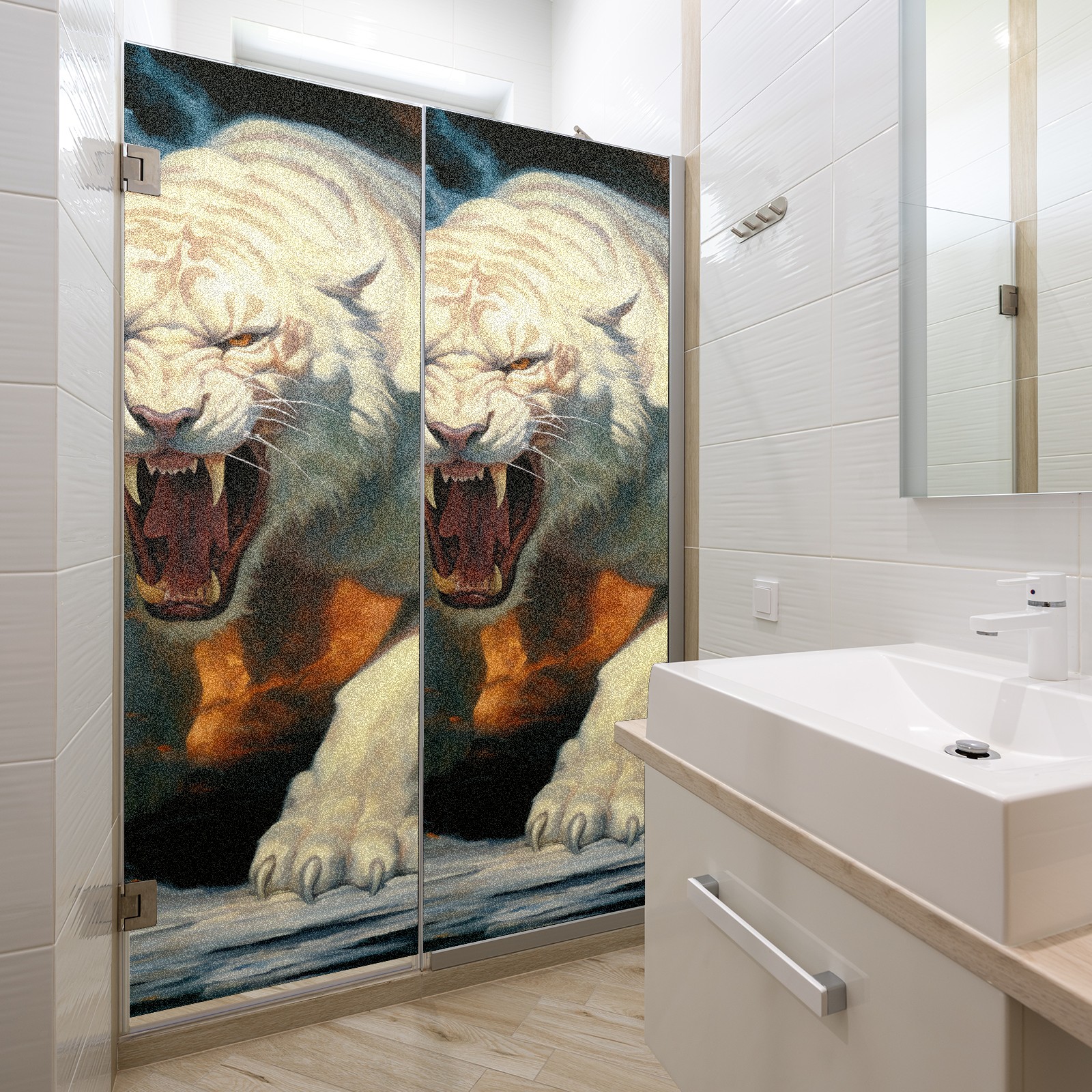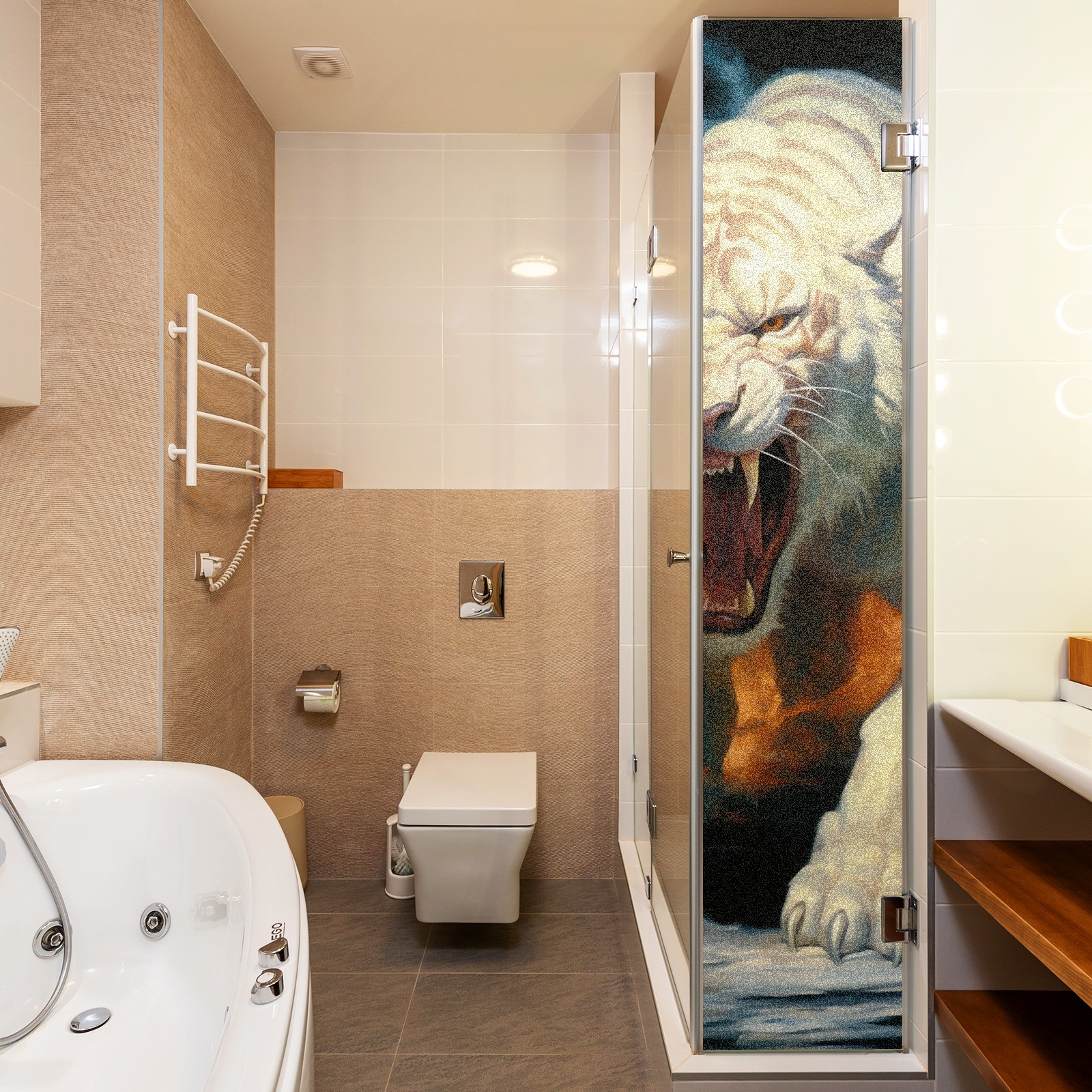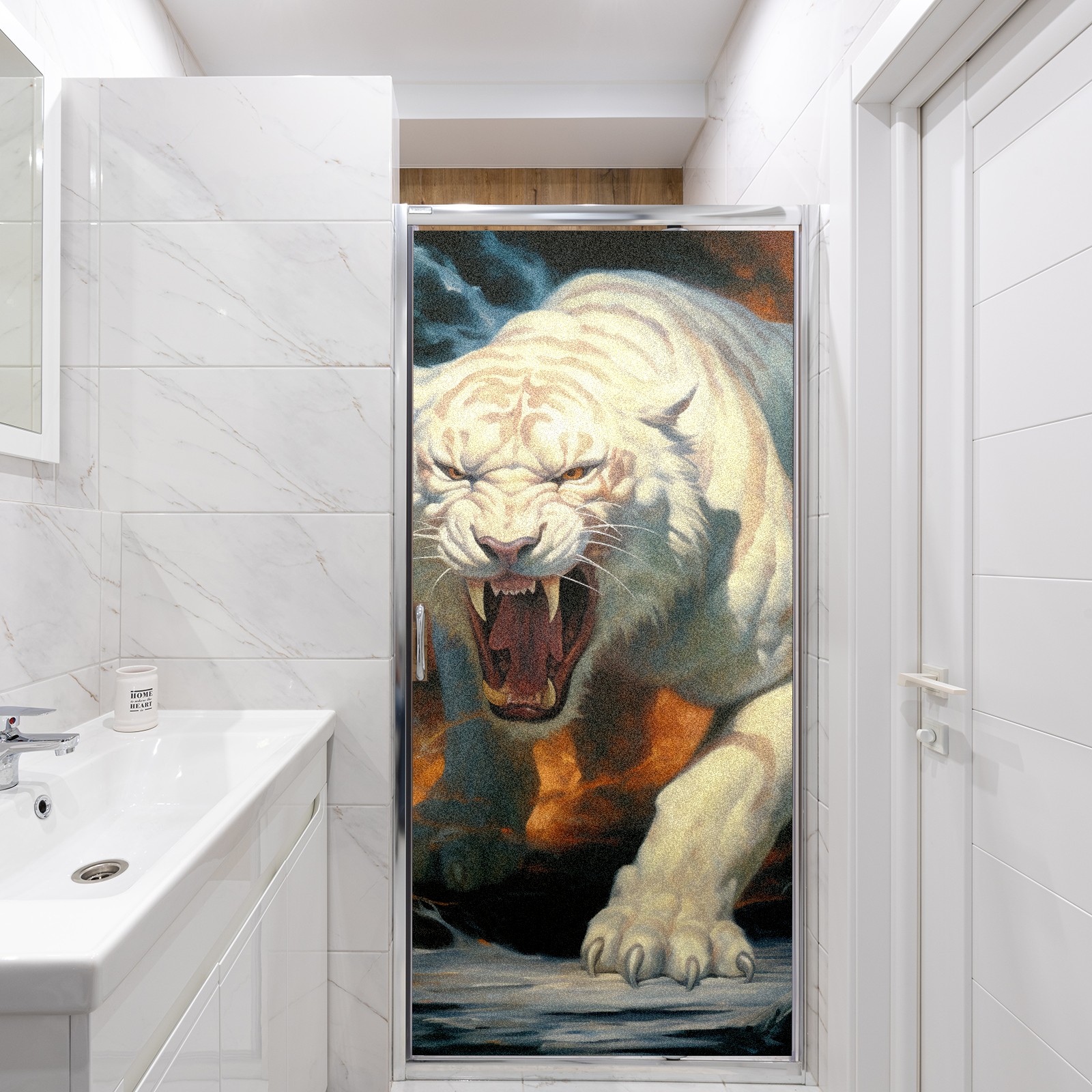 Static Cling Decorative Window Film Frosted Privacy Film Window Clings for Glass Windows No Glue Window Sticker for Bathroom Bedroom Office Tiger