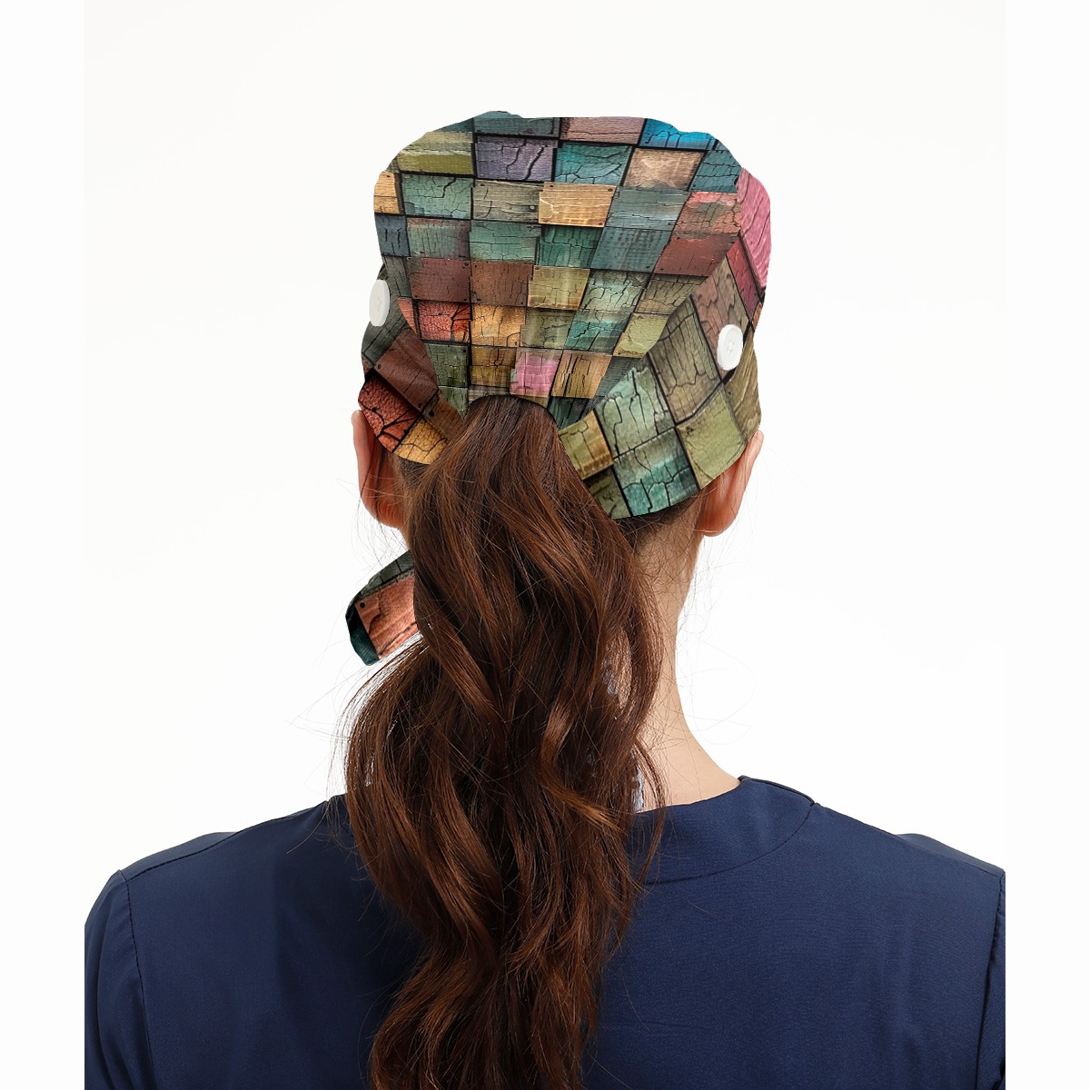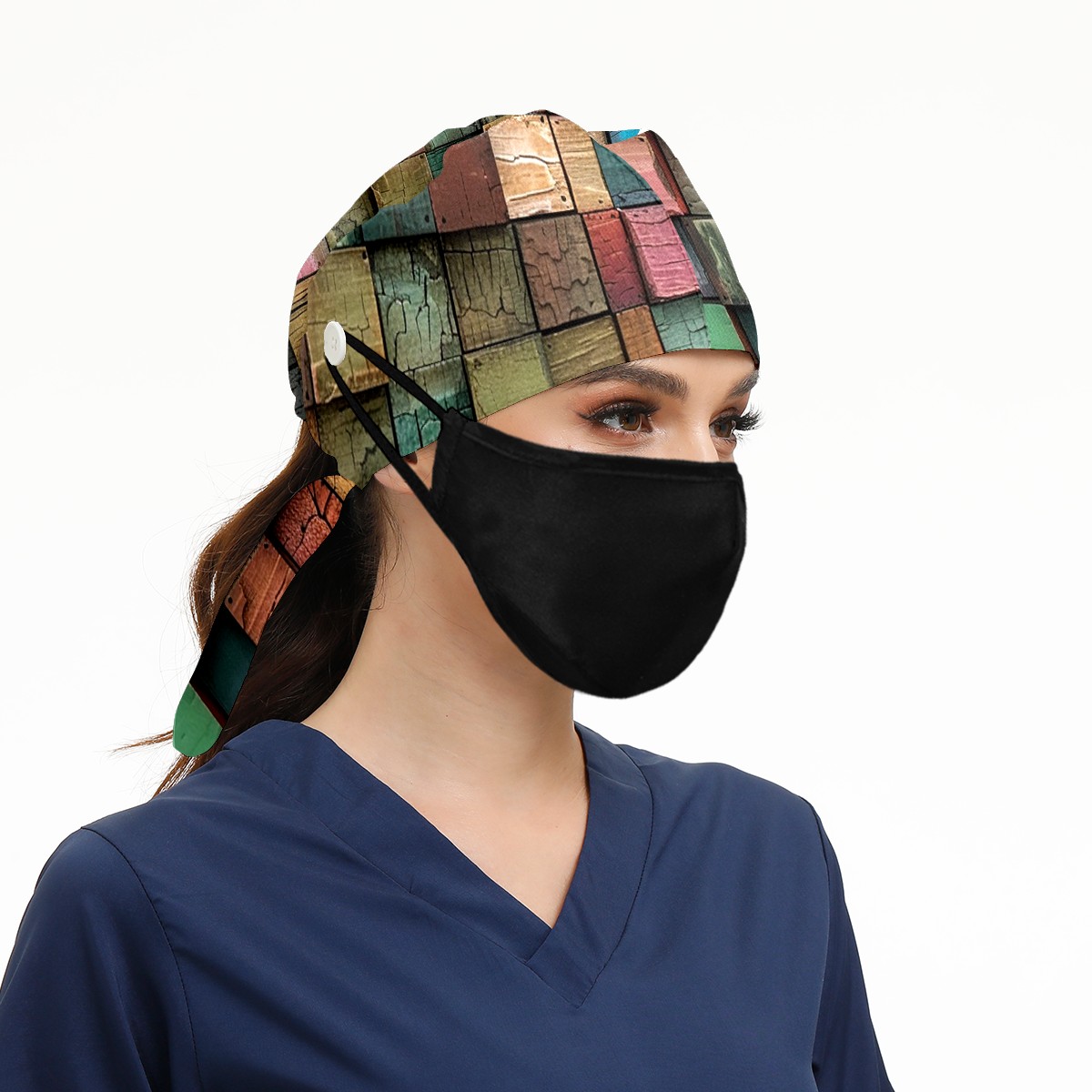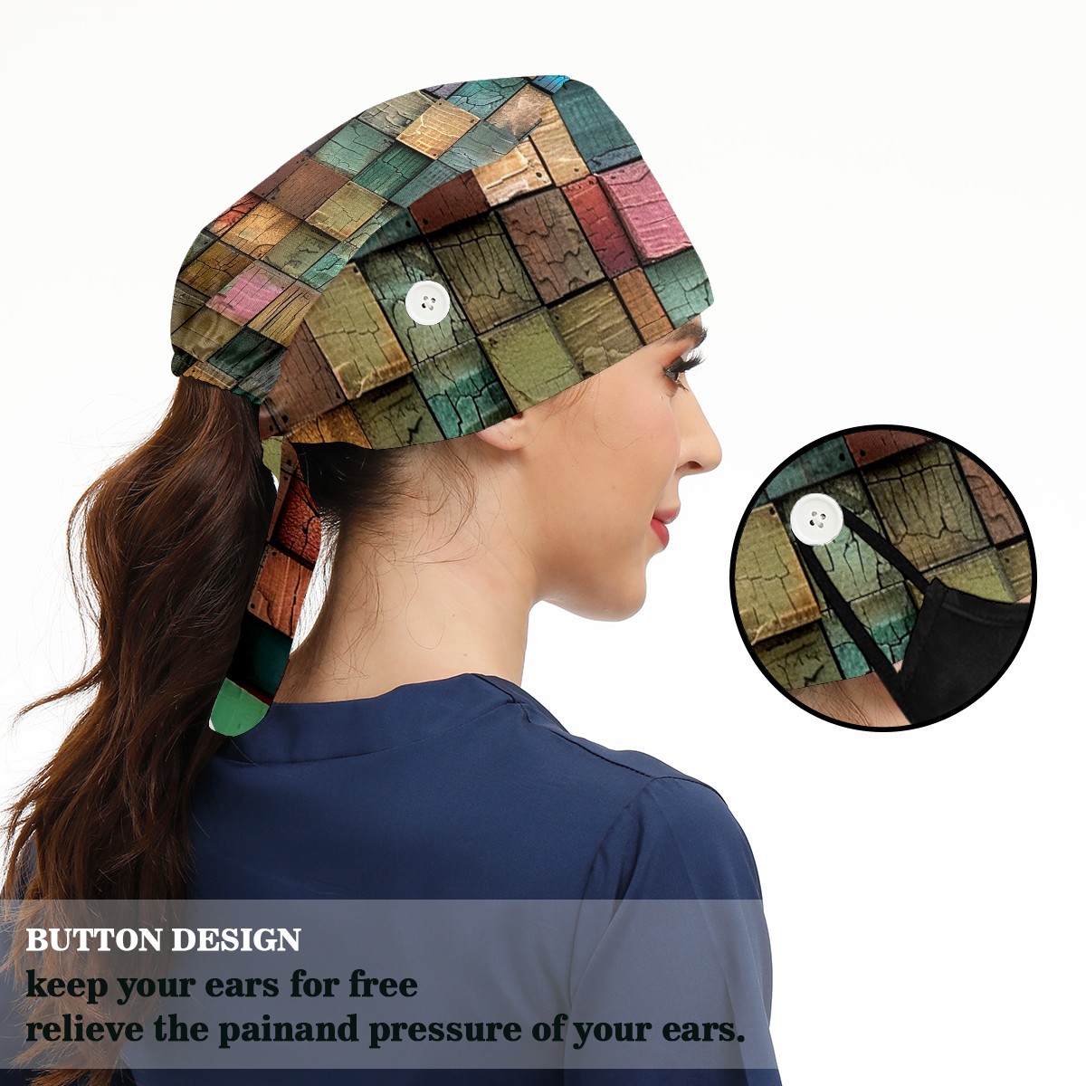 Working Caps with Button & Sweatband Satin Lined Cotton Adjustable Nurse Hats Elastic Band Scrub Cap Surgeon Hat Multicolored Square Lattice