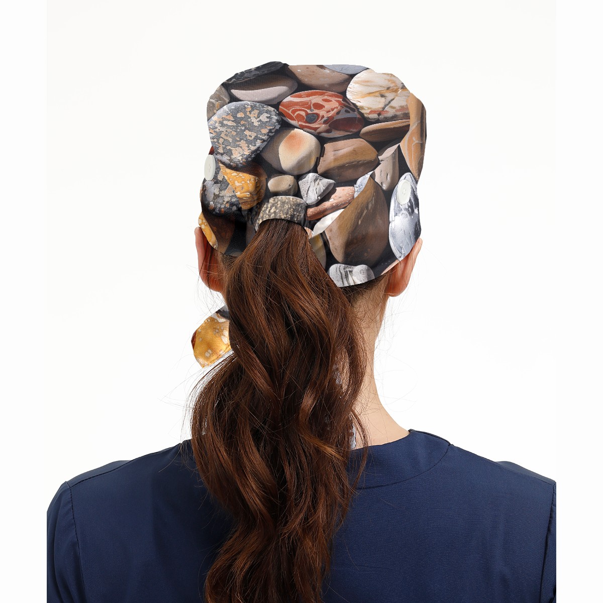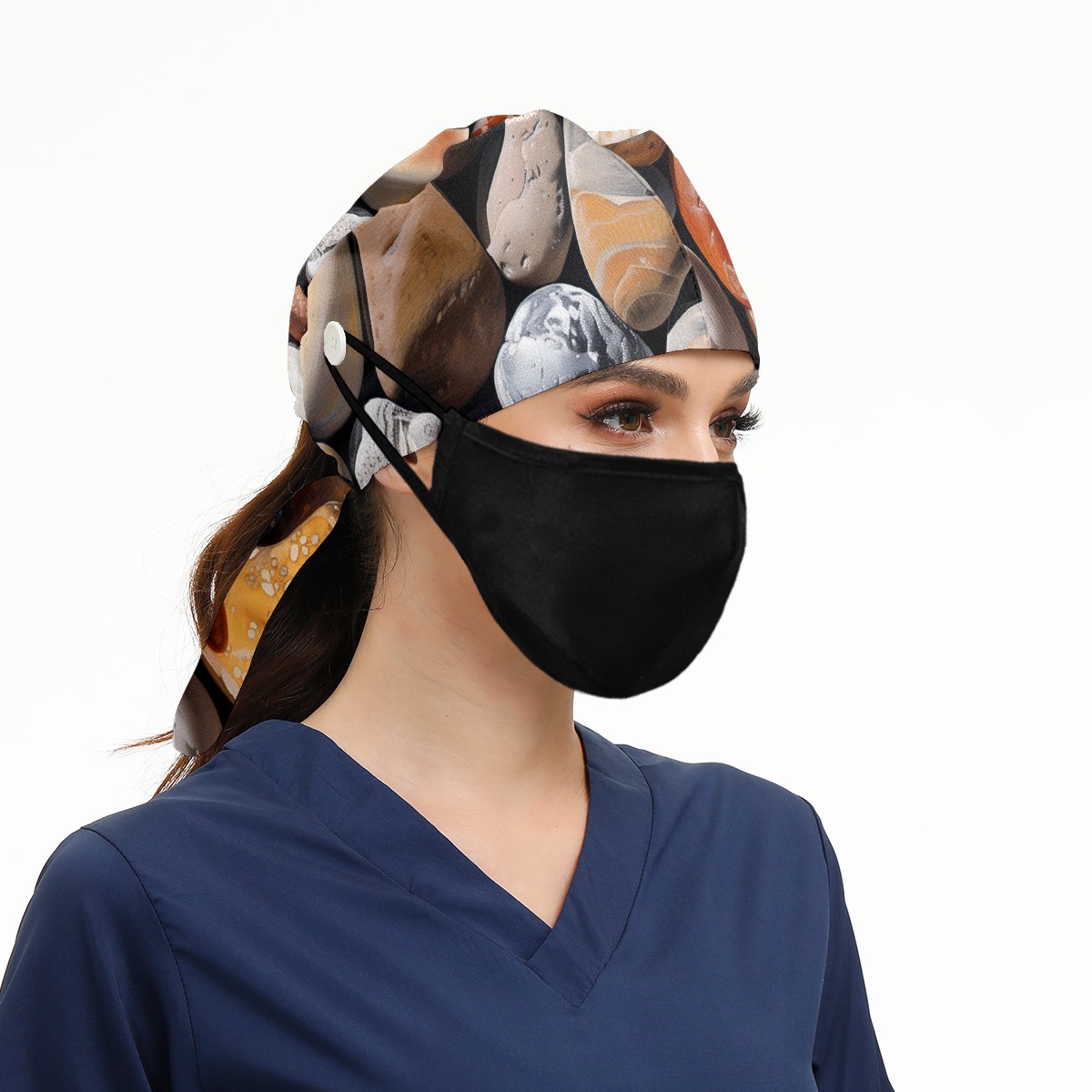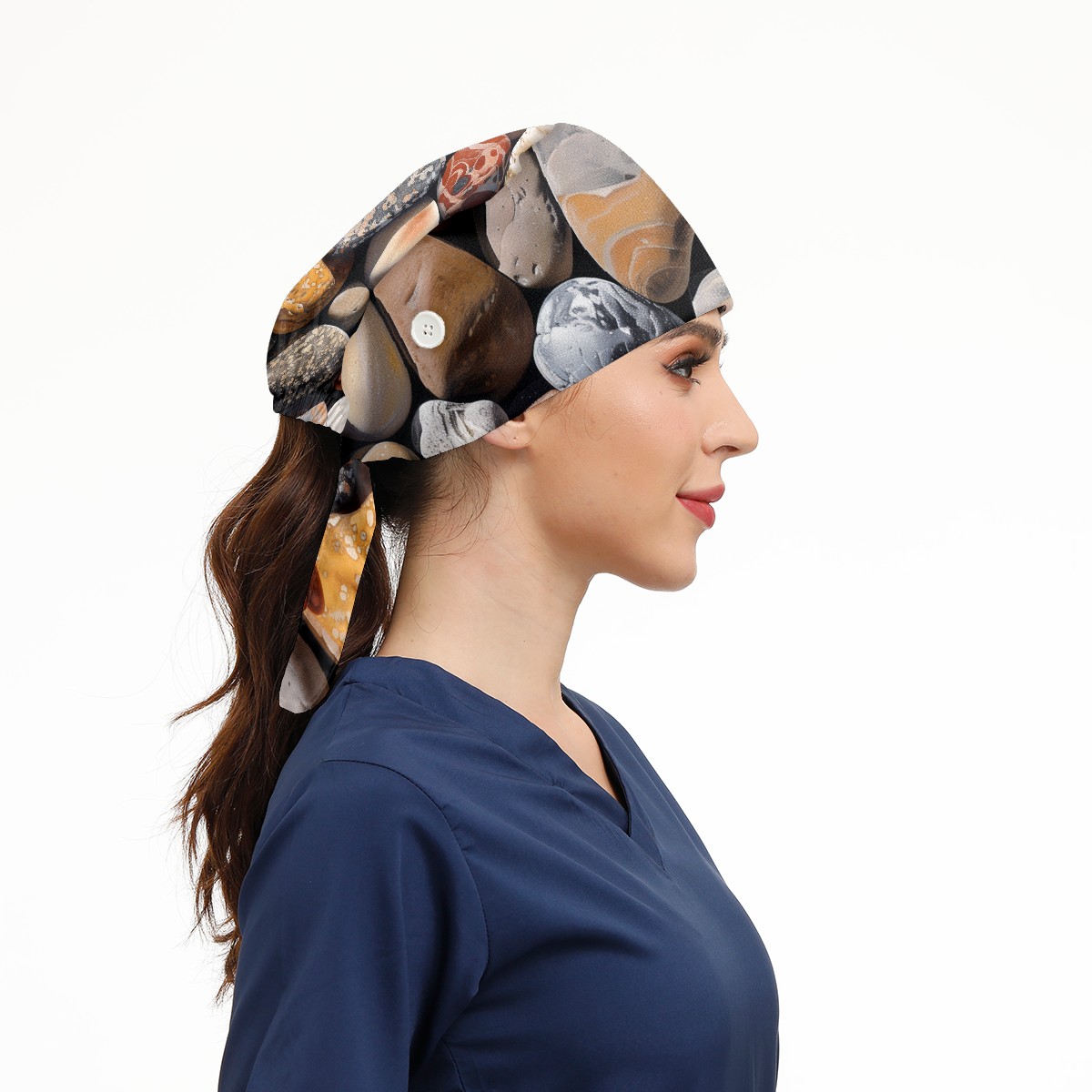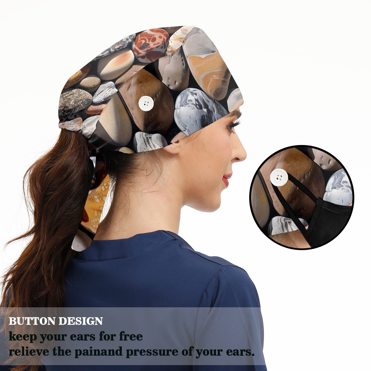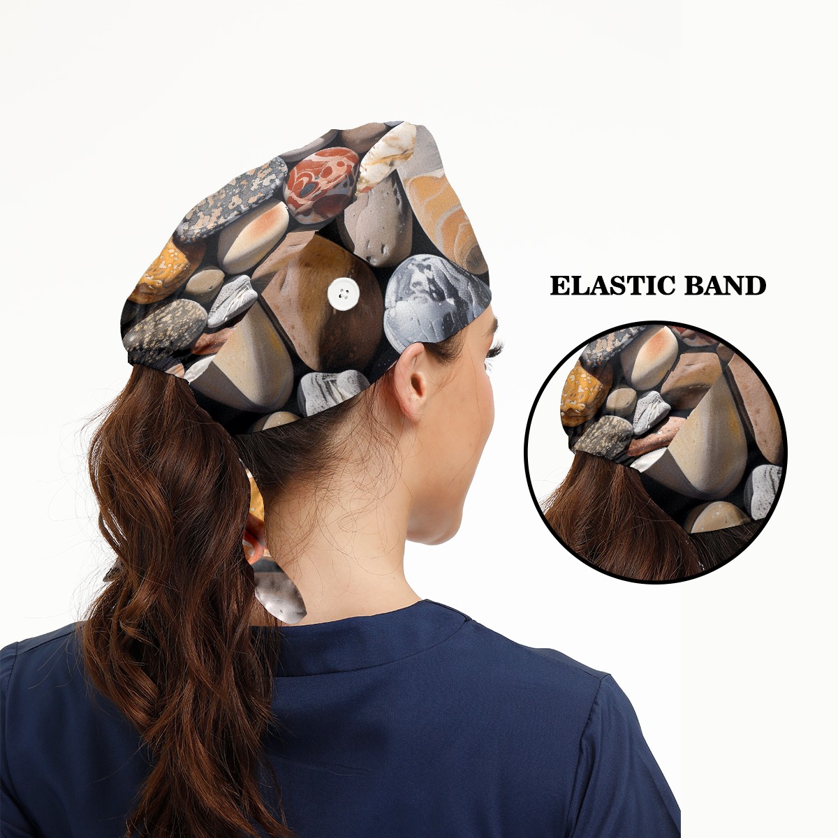 Working Caps with Button & Sweatband Satin Lined Cotton Adjustable Nurse Hats Elastic Band Scrub Cap Surgeon Hat Pebbles